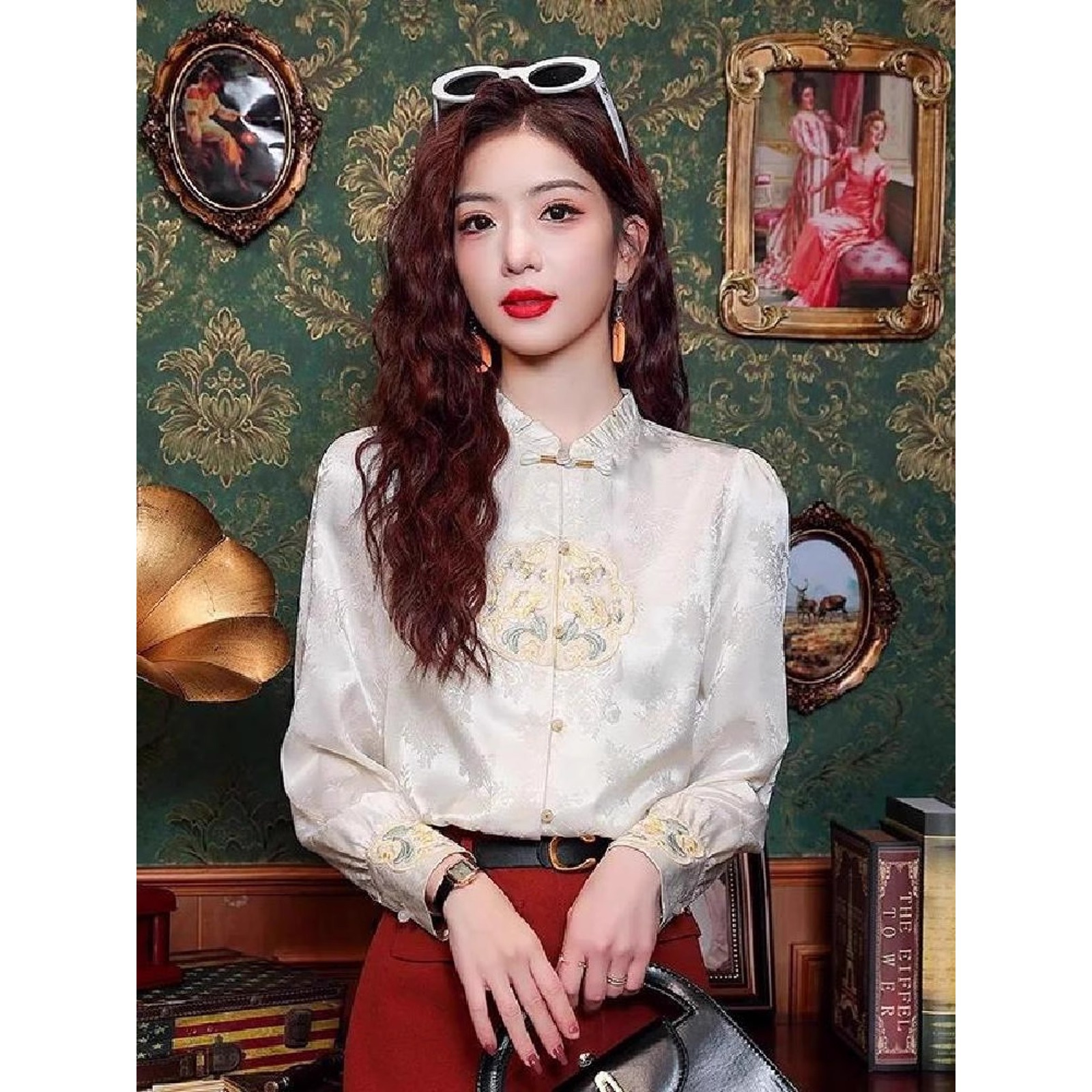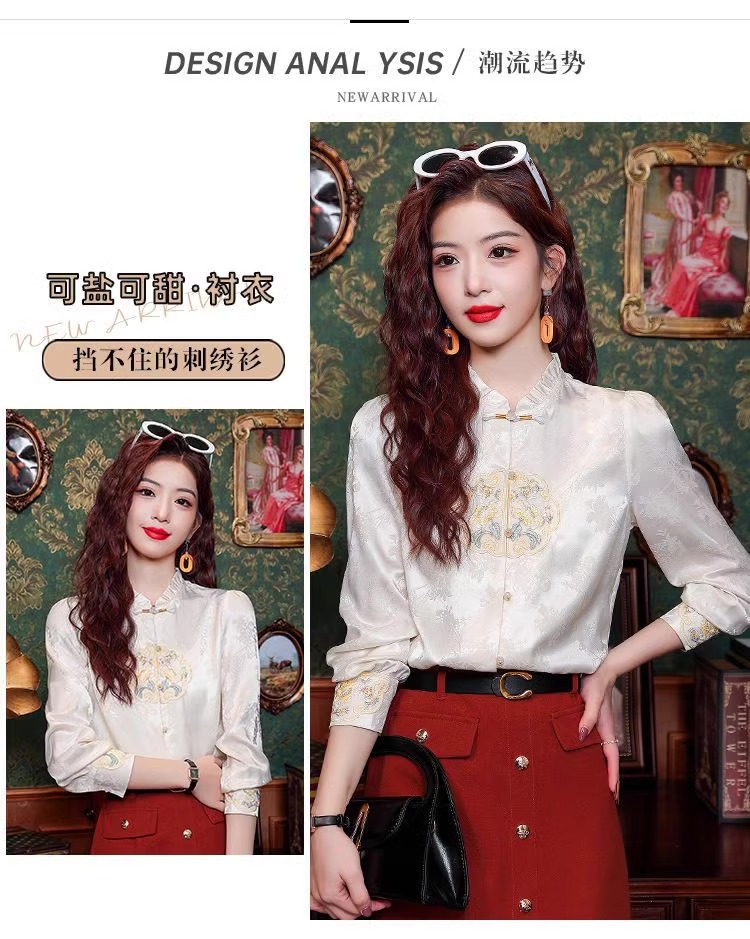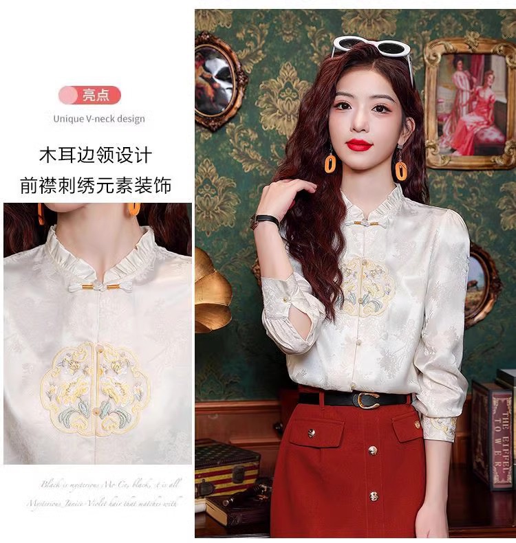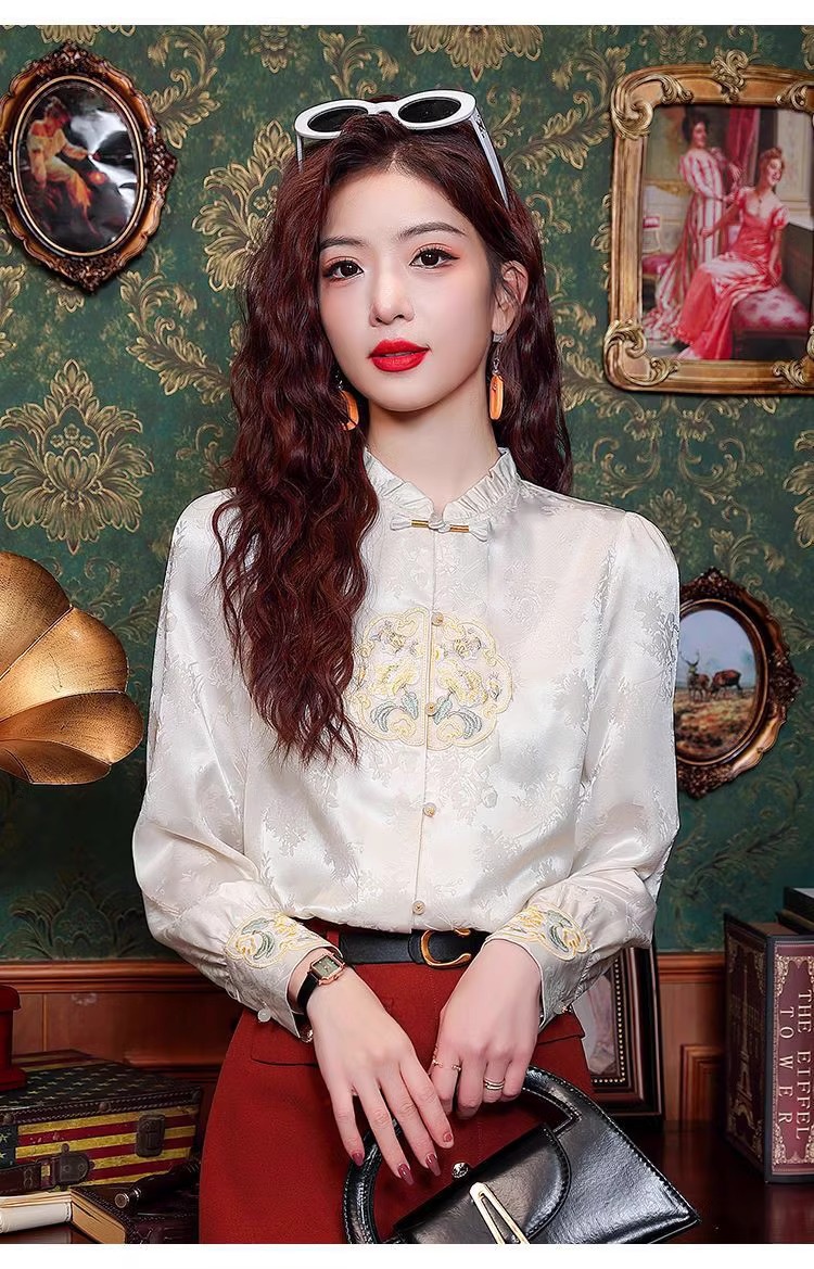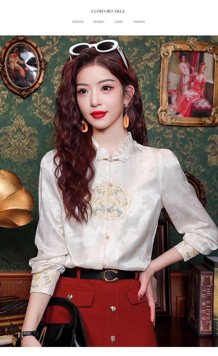 신상 중국풍 셔츠 여성용 가을 신상품 중국풍 레트로 편안하고 통기성 좋은 다용도 나이를 줄여주는 슬림핏 상의 여성용 A3507