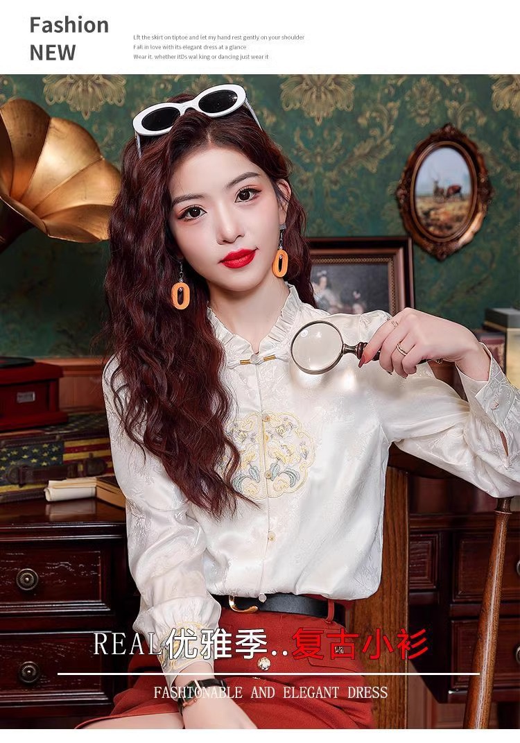 신상 중국풍 셔츠 여성용 가을 신상품 중국풍 레트로 편안하고 통기성 좋은 다용도 나이를 줄여주는 슬림핏 상의 여성용 A3507스토어 가기