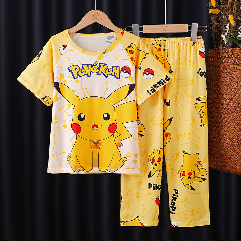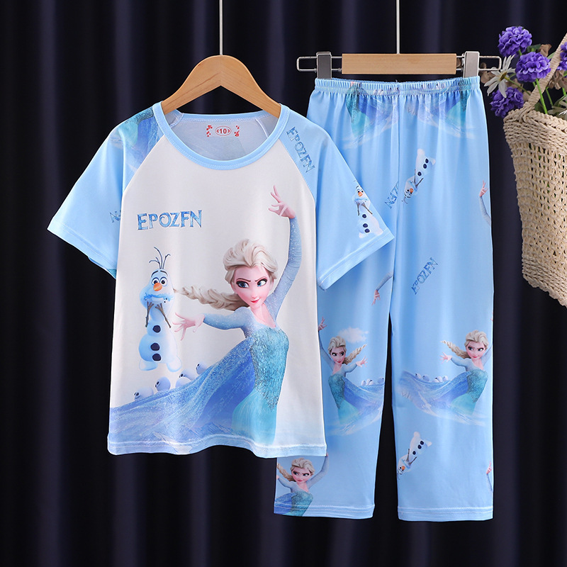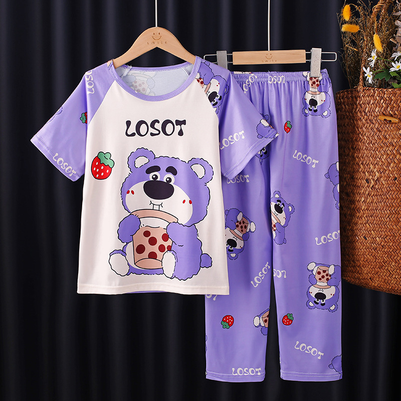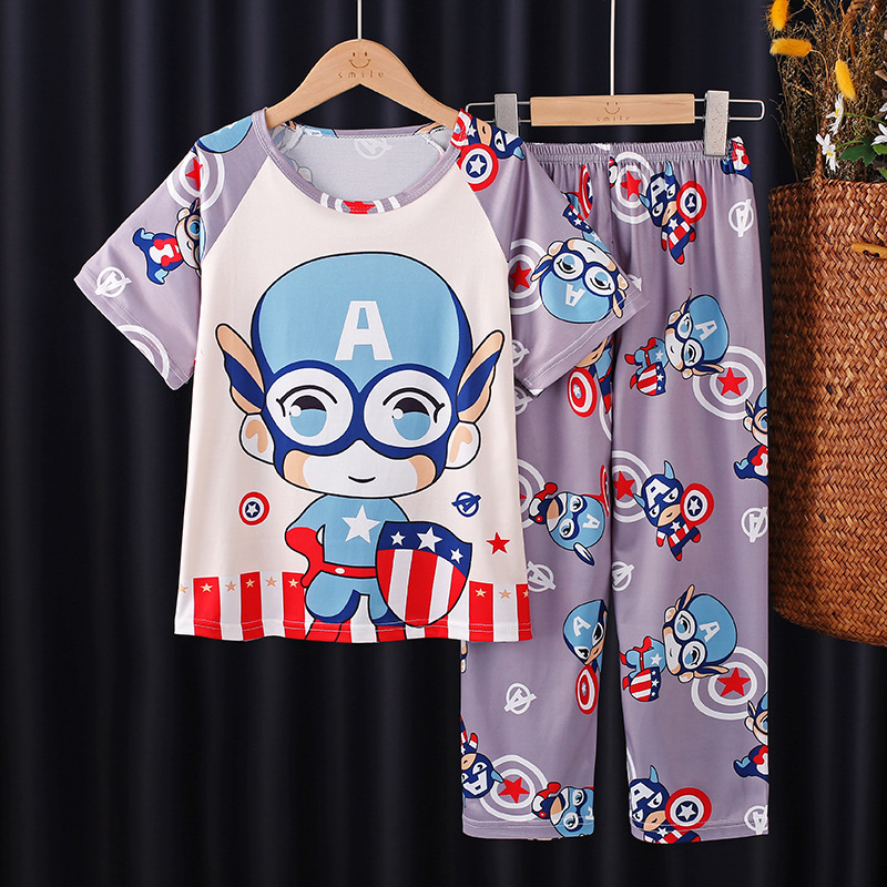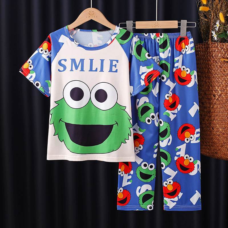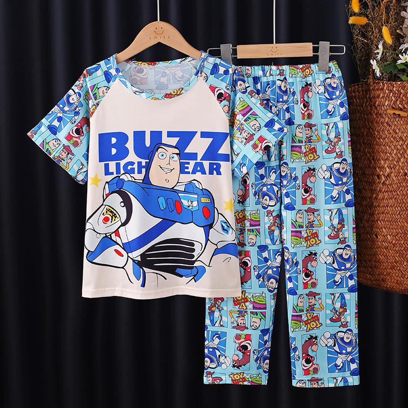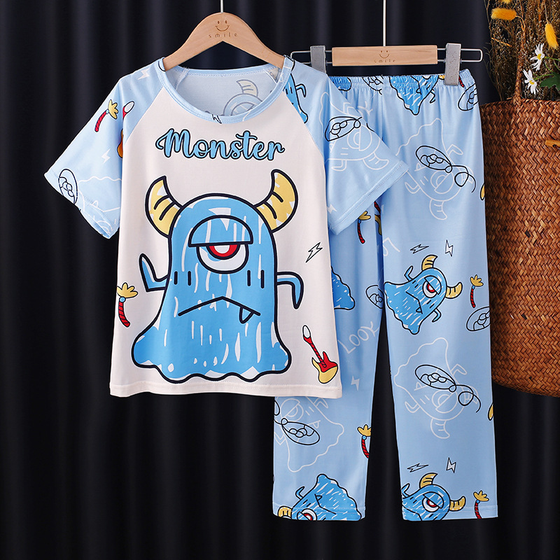 2025 새로운 소년 잠옷 여름 반팔 바지 어린이 소년 봄 가을 여름 청소년 및 어린이 가정 의류