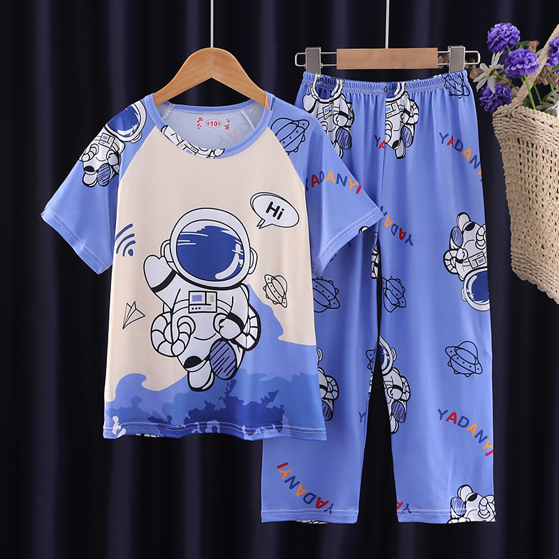 2025 새로운 소년 잠옷 여름 반팔 바지 어린이 소년 봄 가을 여름 청소년 및 어린이 가정 의류스토어 가기