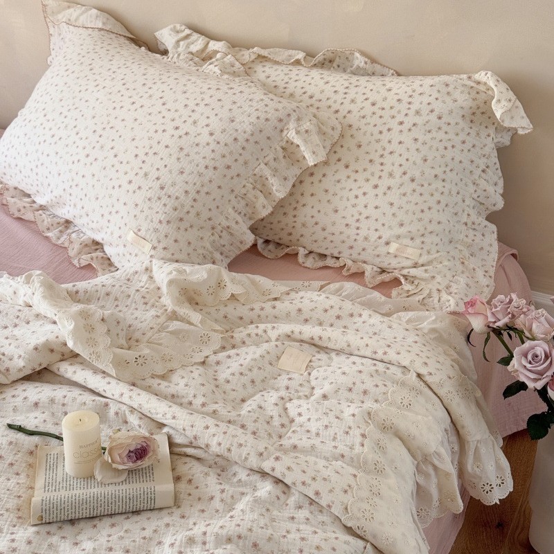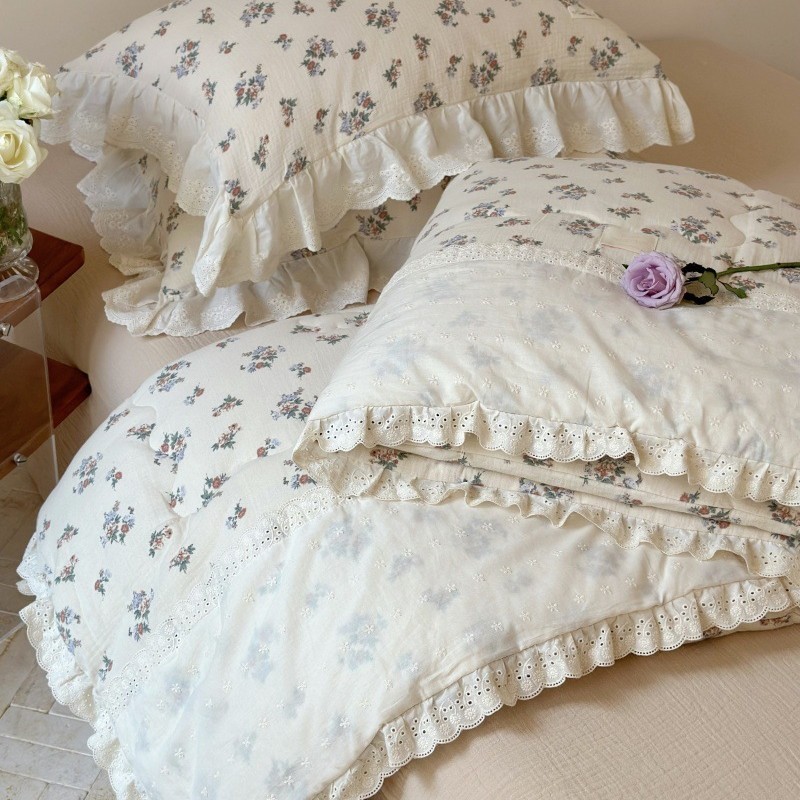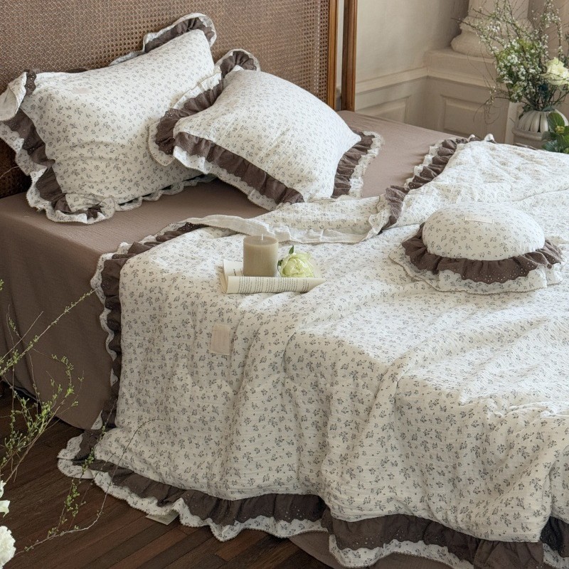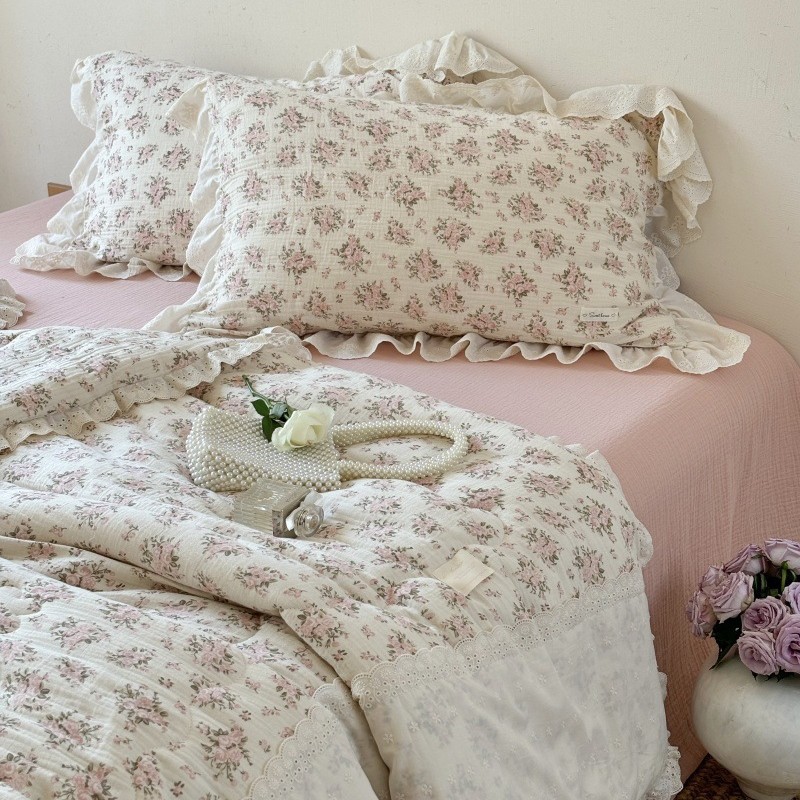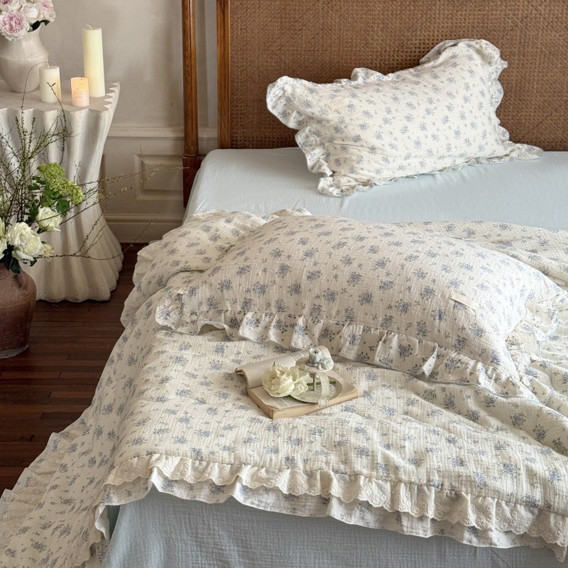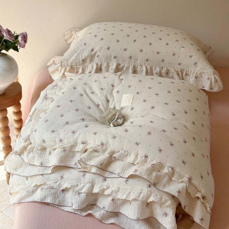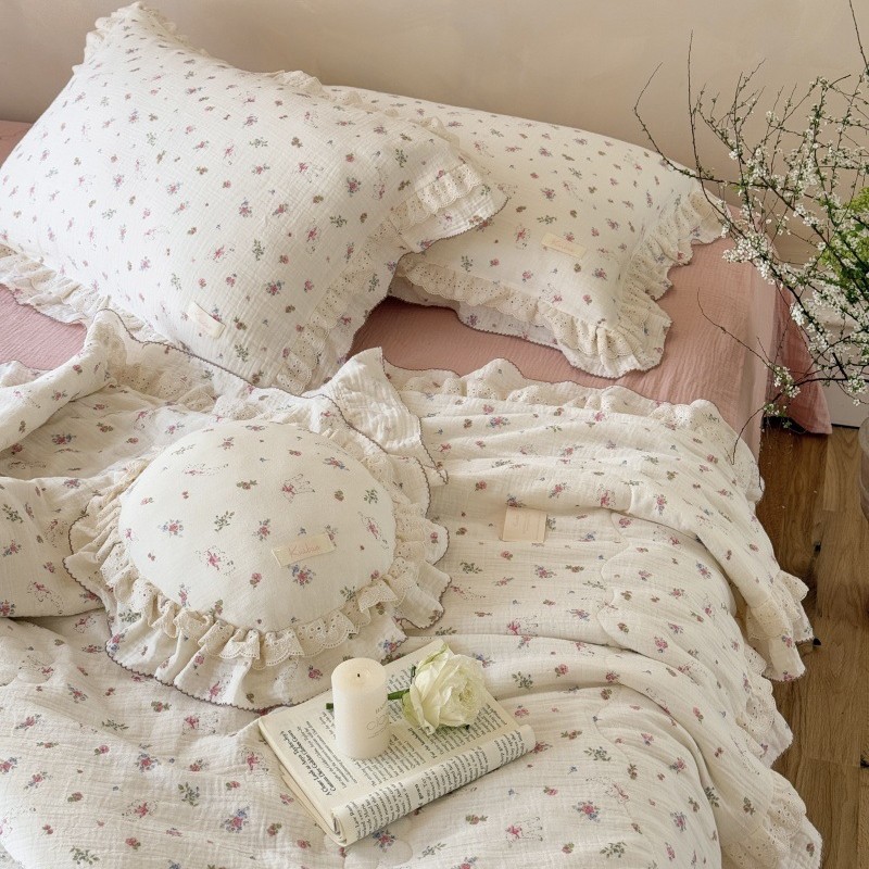 한국 스타일 순면 주름 거즈 꽃무늬 러플 농가풍 A급 유아용 에어컨 이불 봄가을 이불스토어 가기