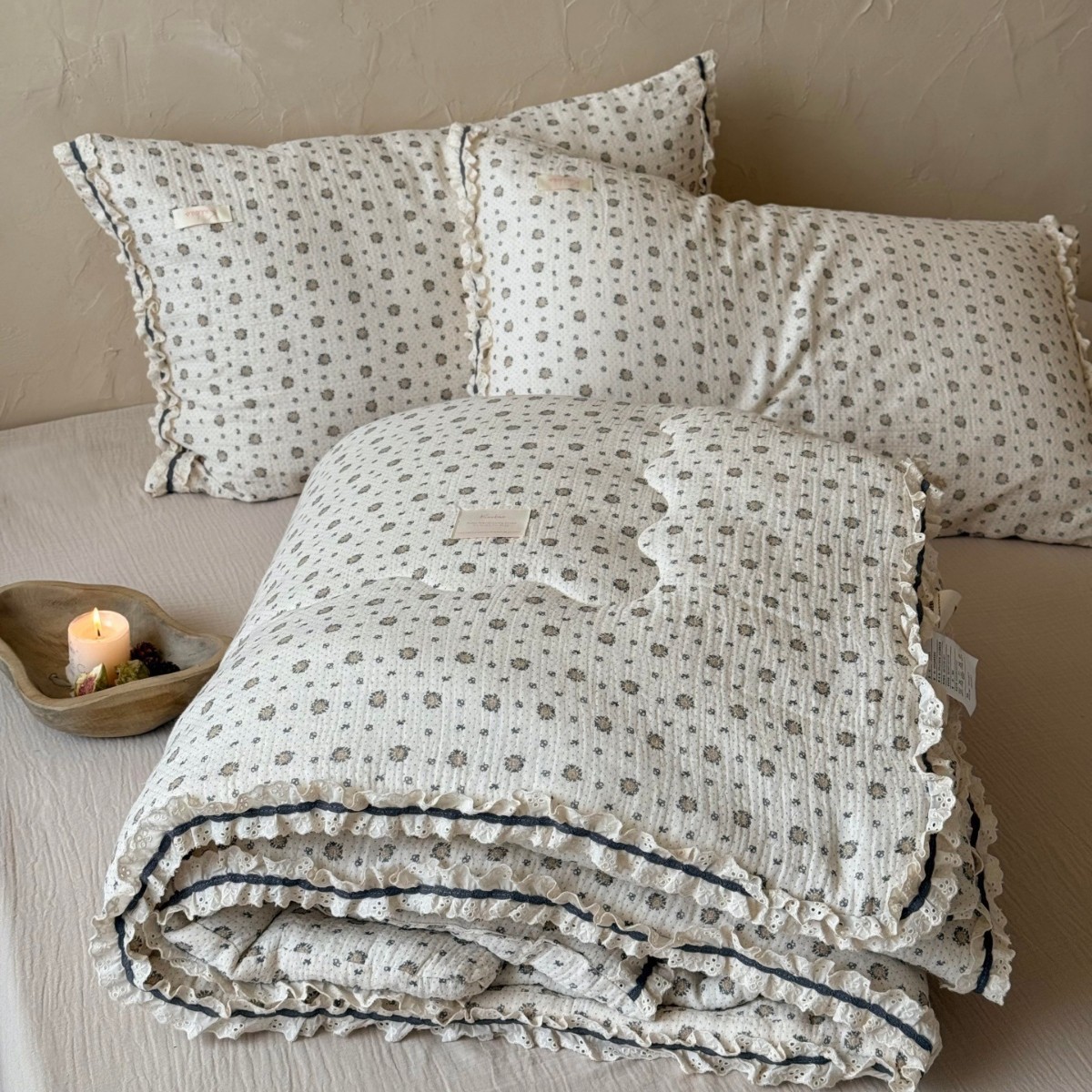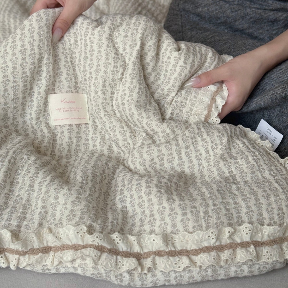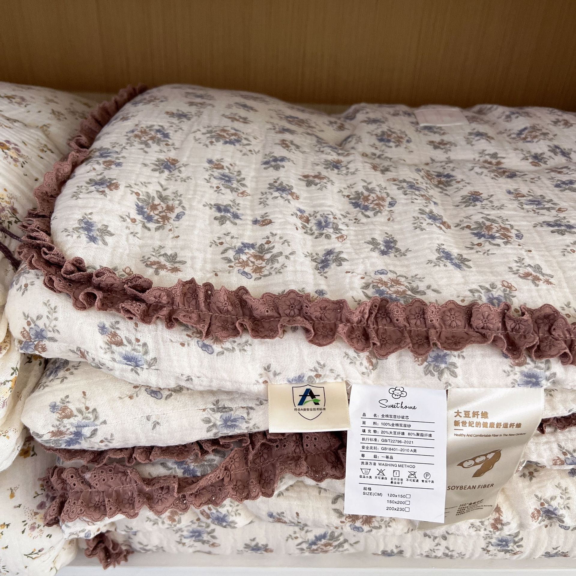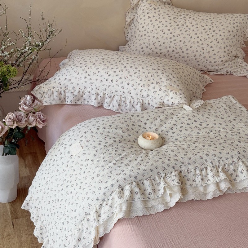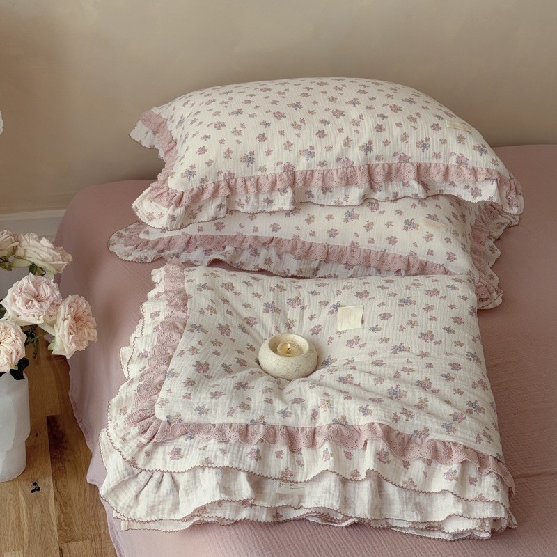 한국 스타일 순면 주름 거즈 꽃무늬 러플 농가풍 A급 유아용 에어컨 이불 봄가을 이불스토어 가기
