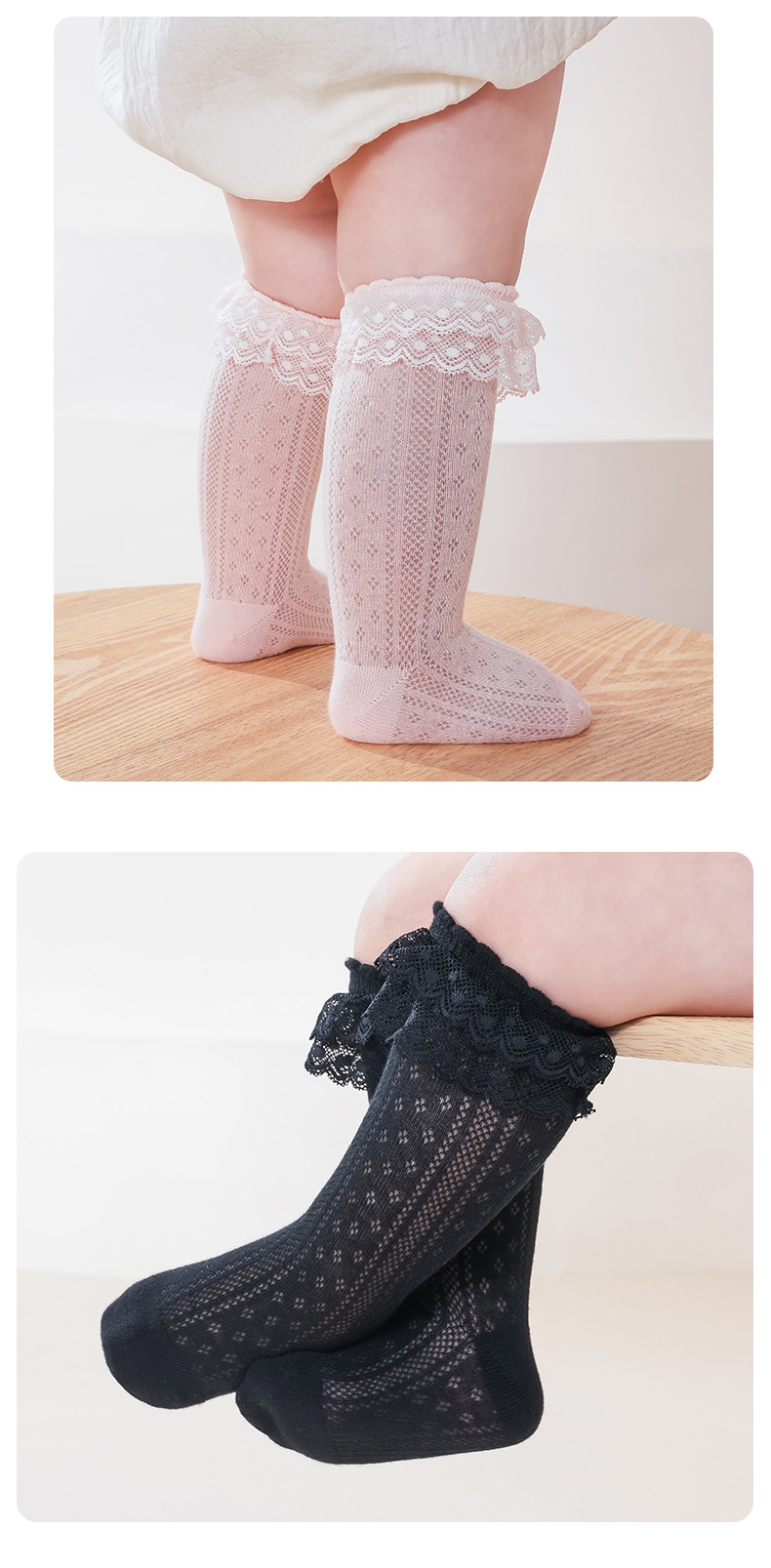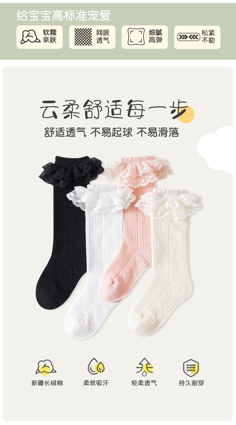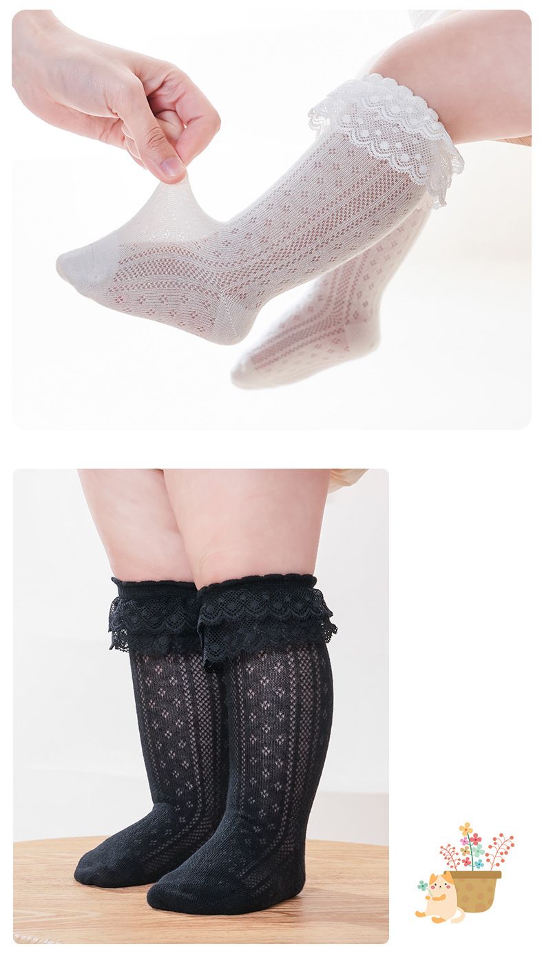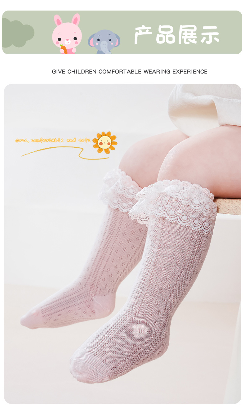 아기 양말 봄과 여름 얇은 통기성 아기 여름 레이스 한국 스타일 공주 양말 소녀 높은면 양말