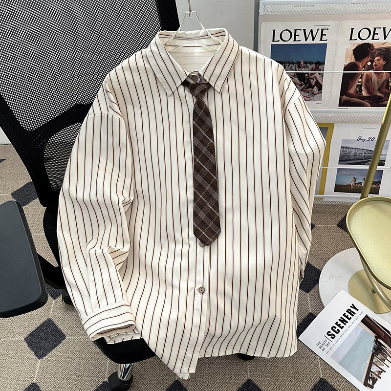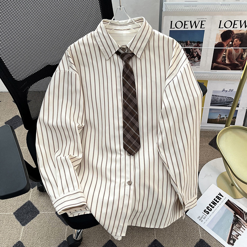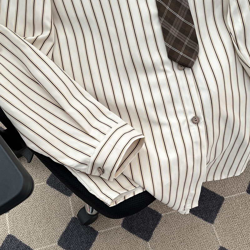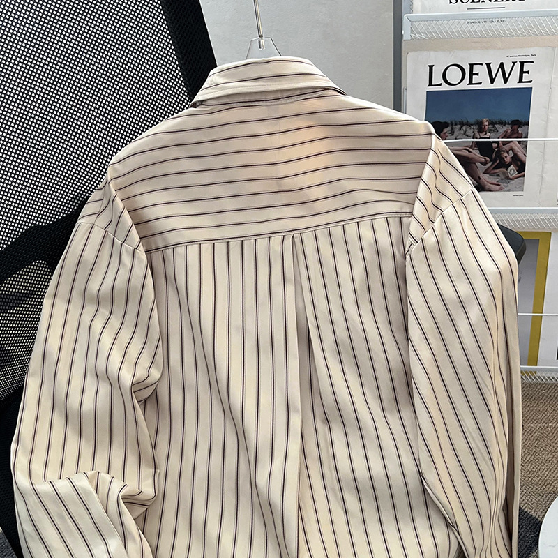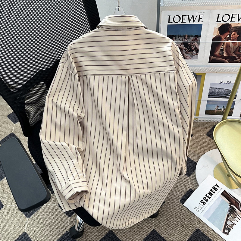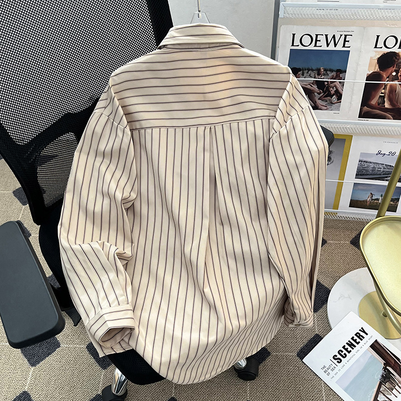 남성과 여성을 위한 일본 줄무늬 긴팔 타이 셔츠 새로운 홍콩 스타일 루즈 캐주얼 자외선 차단 셔츠 고급 드레이프 재킷스토어 가기