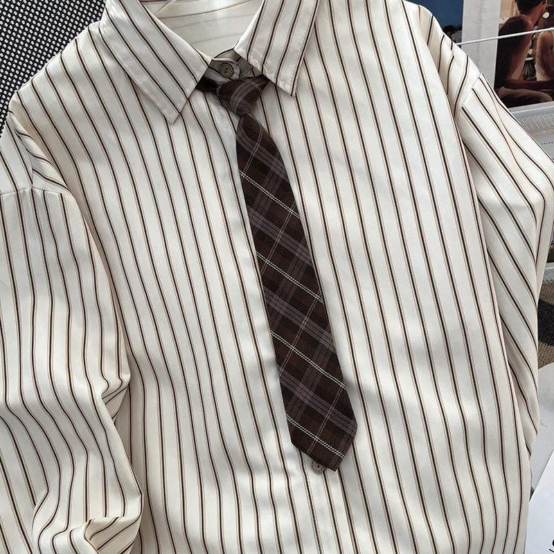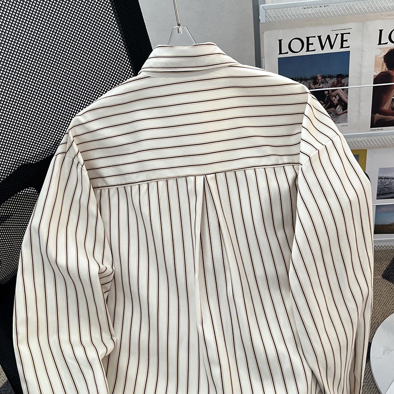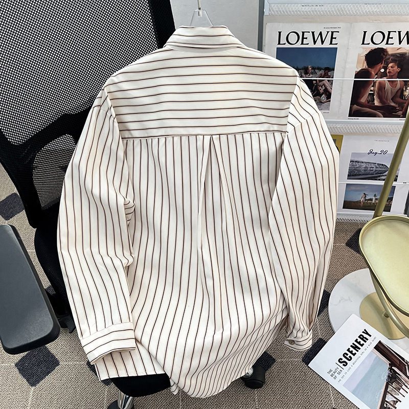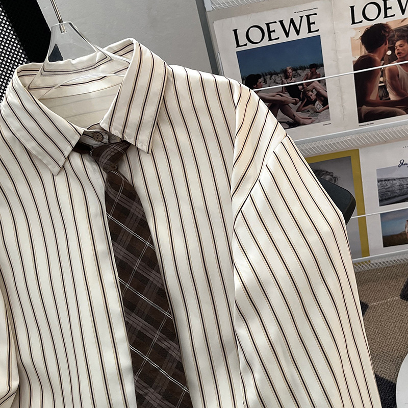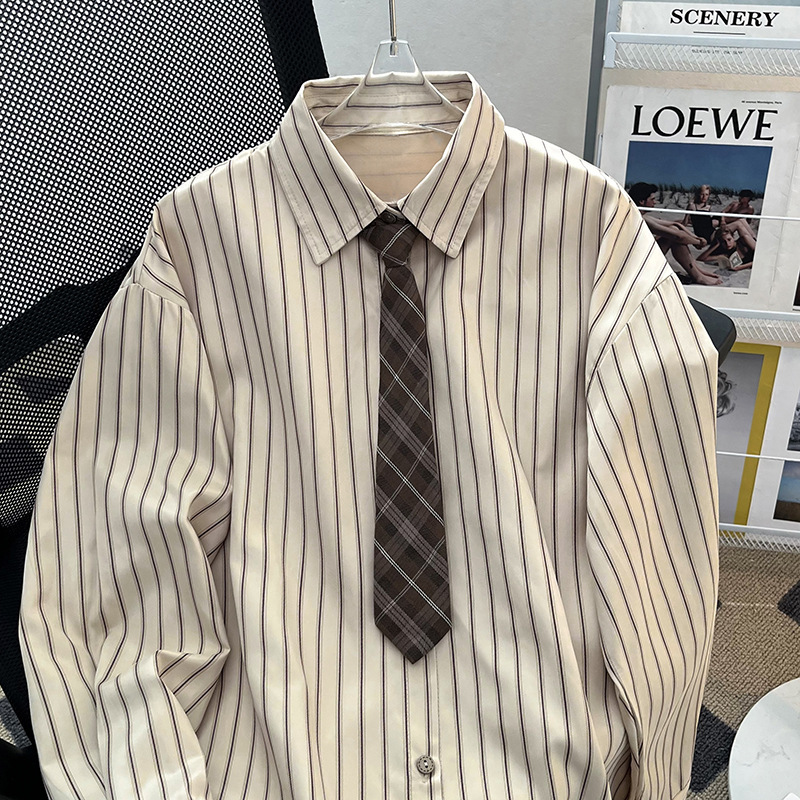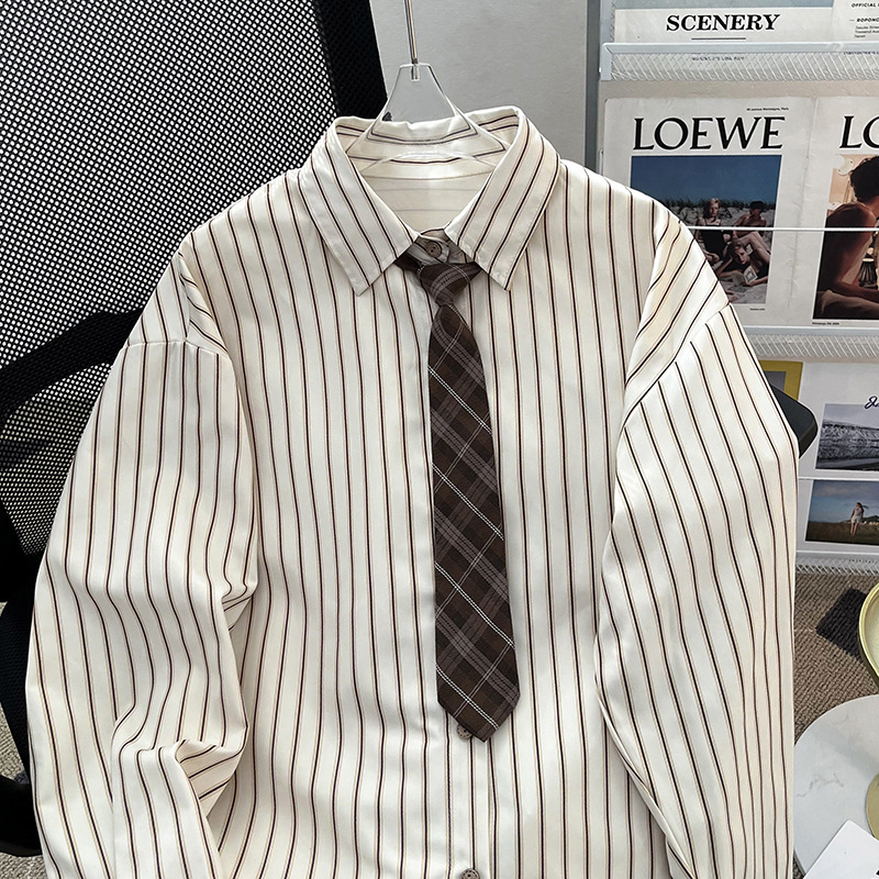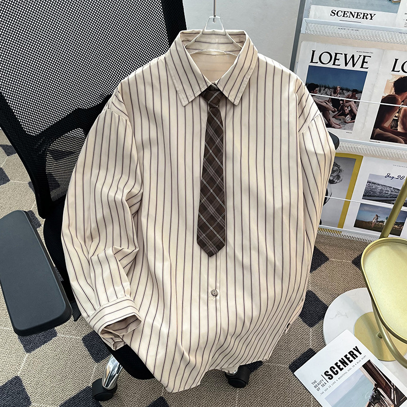남성과 여성을 위한 일본 줄무늬 긴팔 타이 셔츠 새로운 홍콩 스타일 루즈 캐주얼 자외선 차단 셔츠 고급 드레이프 재킷스토어 가기