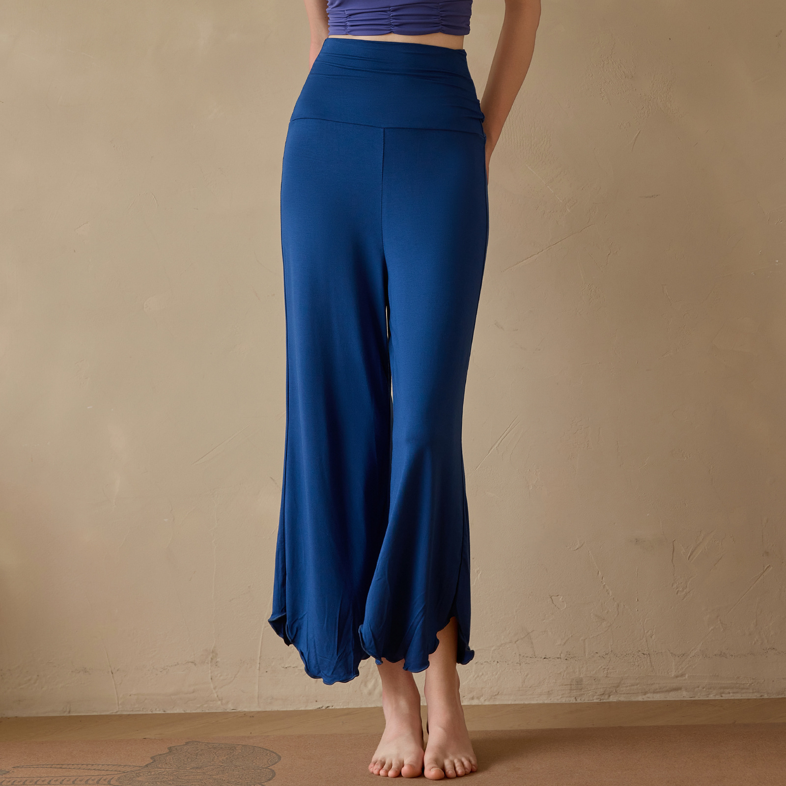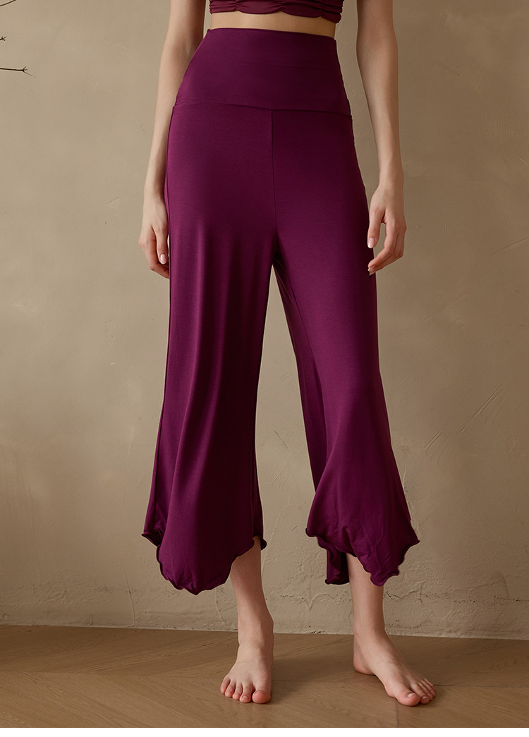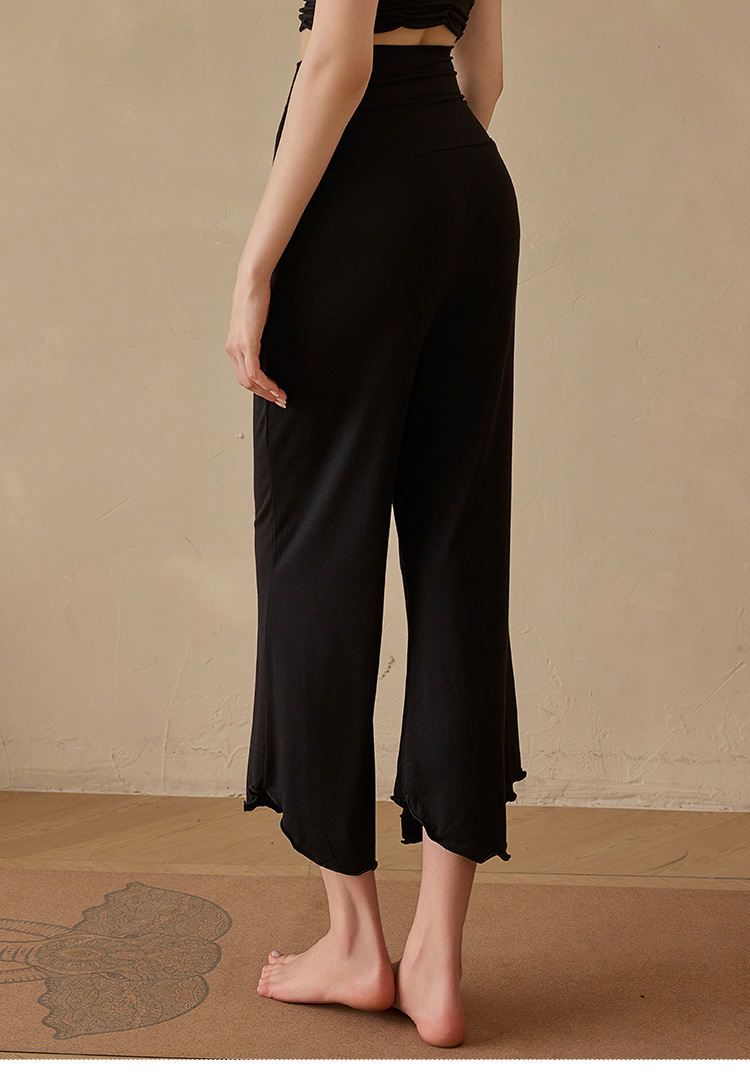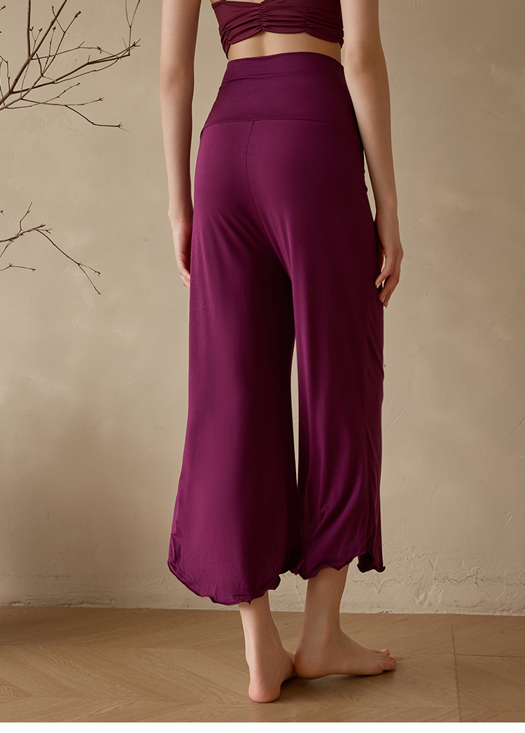 Xian Qi 요가 세트 높은 허리 자른 바지 필라테스 명상 느슨한 넓은 다리 바지 훈련 내부보기 흐름 단색 공기 감각스토어 가기