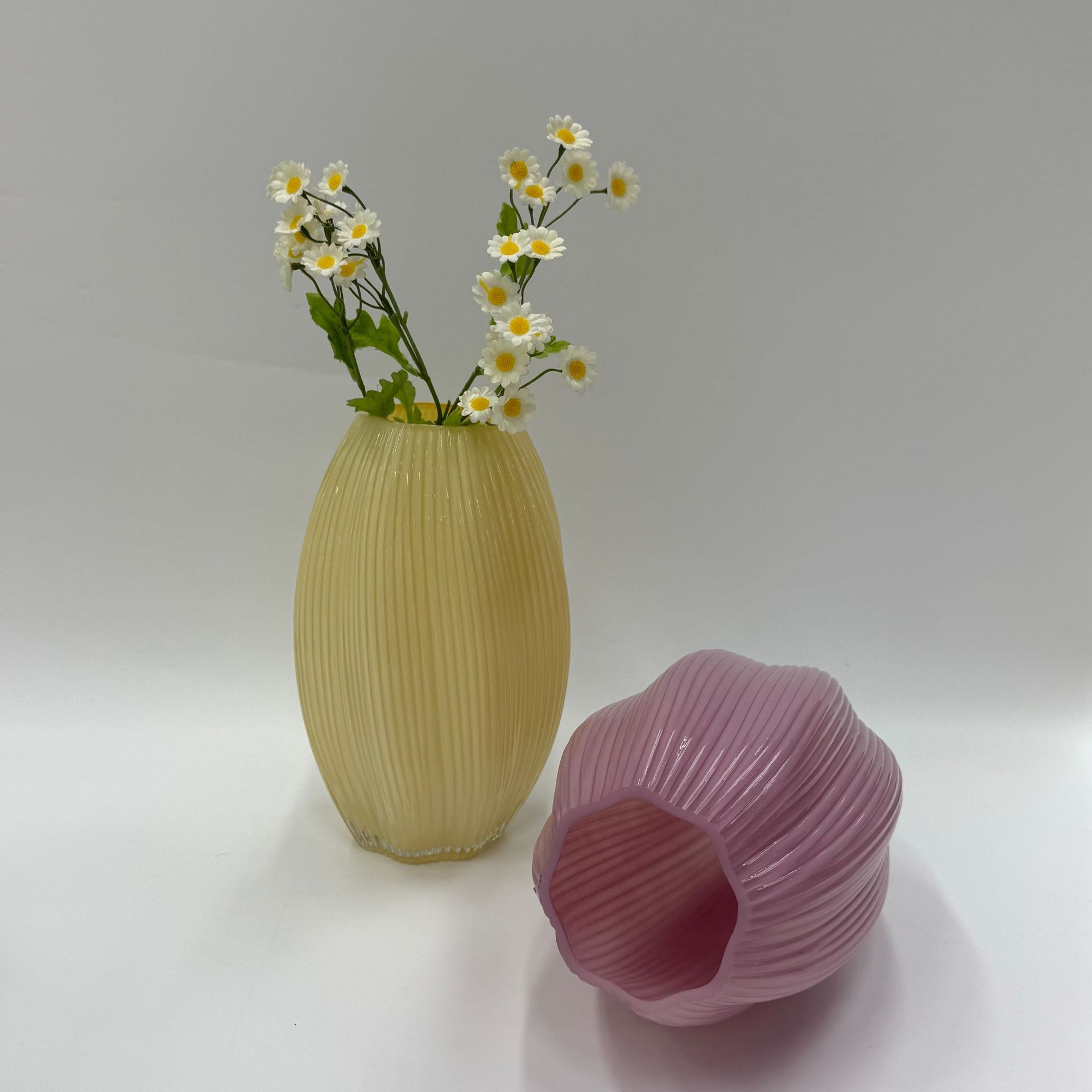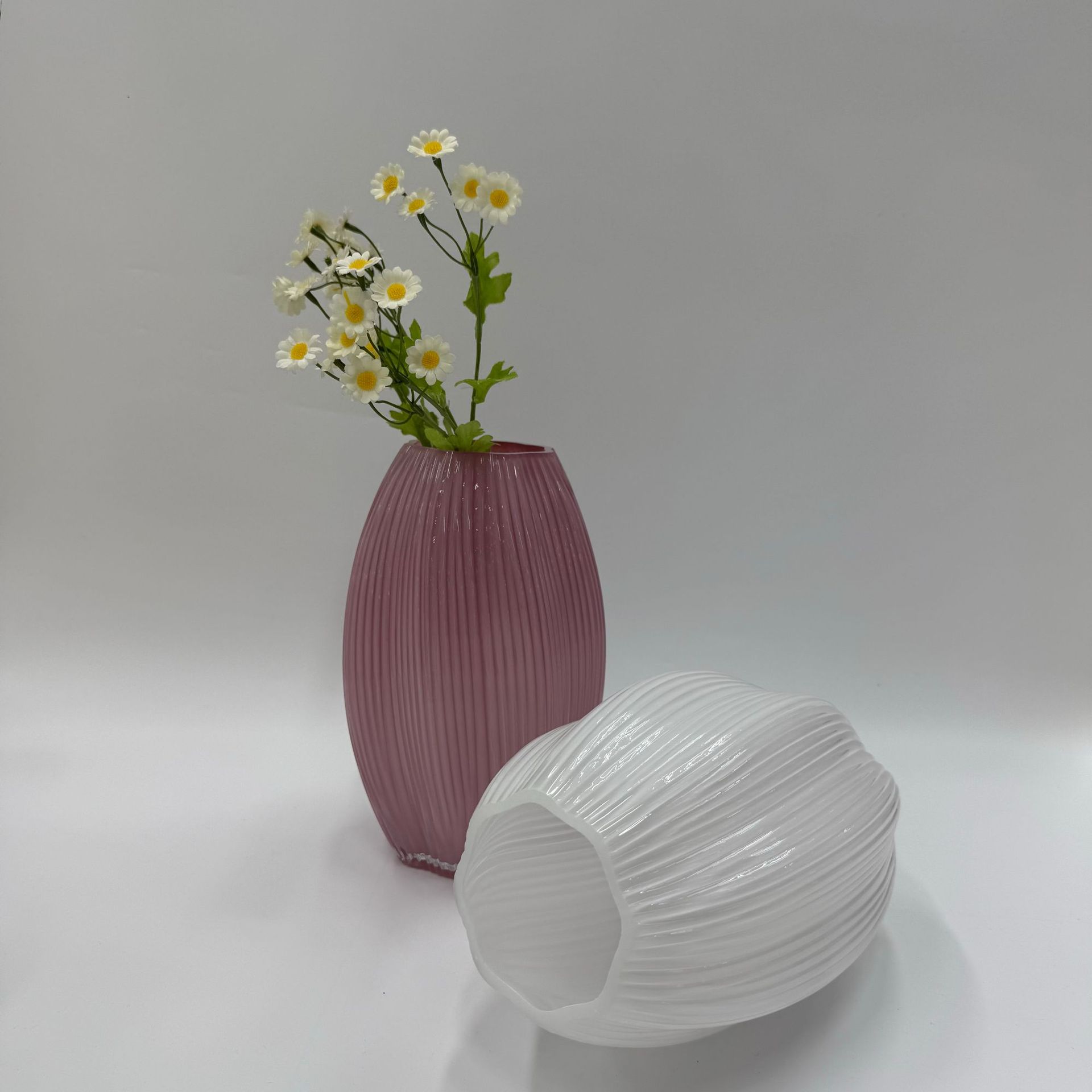 북유럽 꽃병, 핑크색 유리 꽃병, 고급 거실 가정 장식, 수경 꽃꽂이, 식탁 장식품, 꽃 용기