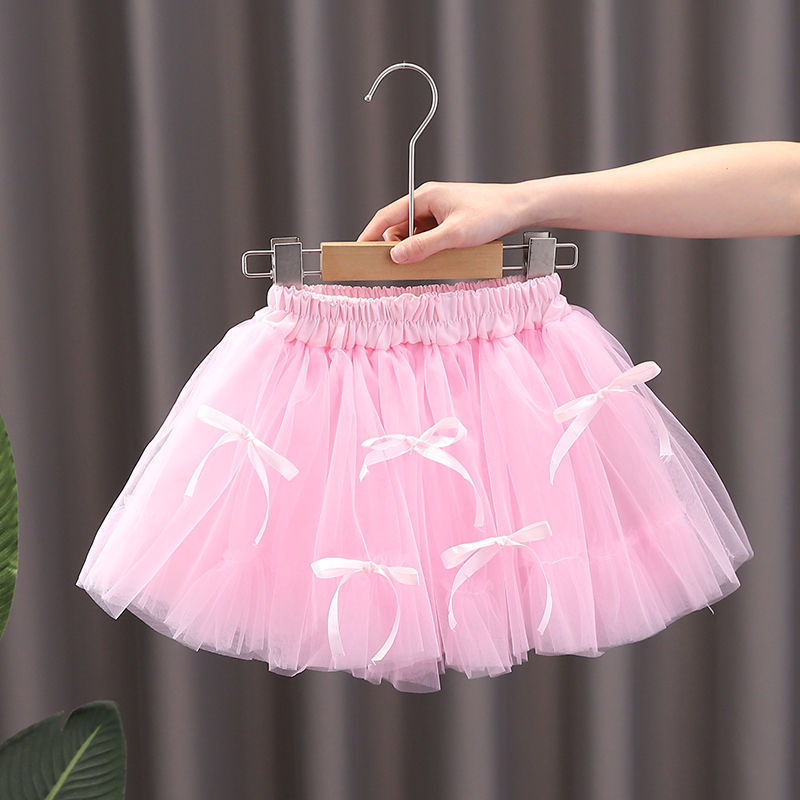 2025년 신작 여아 스커트, 짧은 스커트, 중소형 어린이 거즈 스커트, 여아 패션 한국식 투투 스커트, 리본 스커트