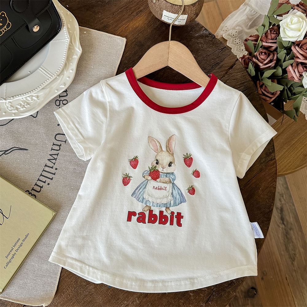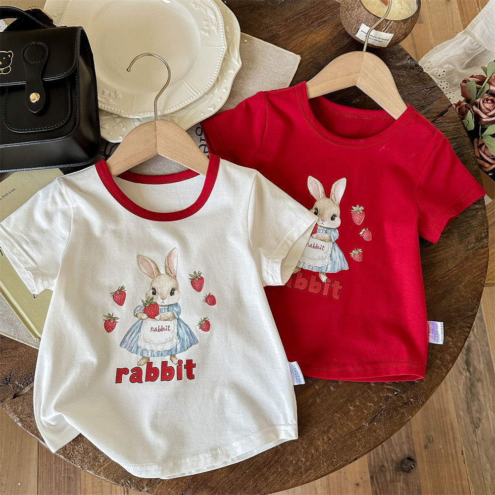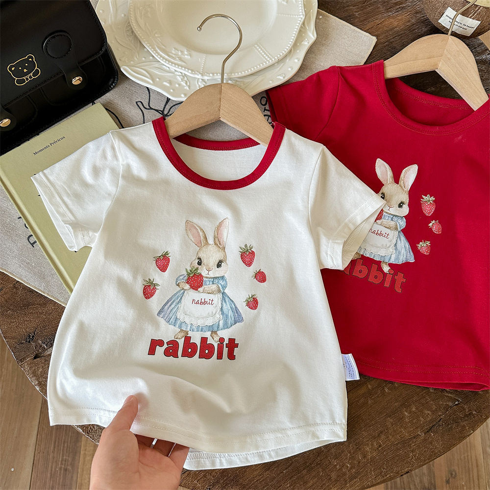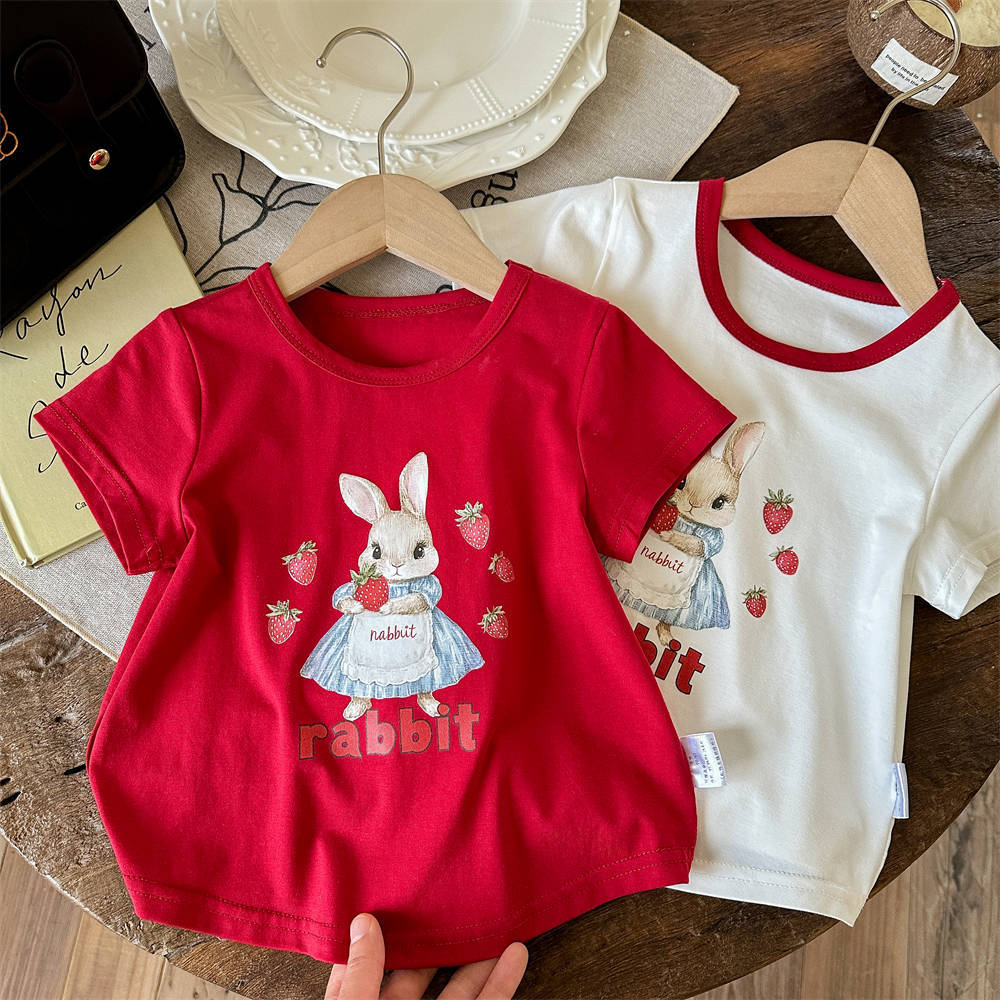 Tong Xingyuan 여름 얇은 반팔 티셔츠 어린이 아기 한국식 탑 걸스 반팔 아웃웨어 탑베이스 셔츠 T