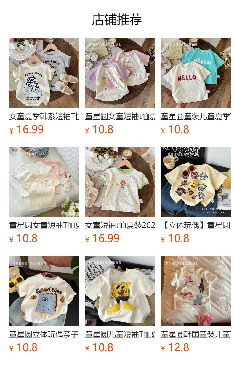 Tong Xingyuan 여름 얇은 반팔 티셔츠 어린이 아기 한국식 탑 걸스 반팔 아웃웨어 탑베이스 셔츠 T스토어 가기