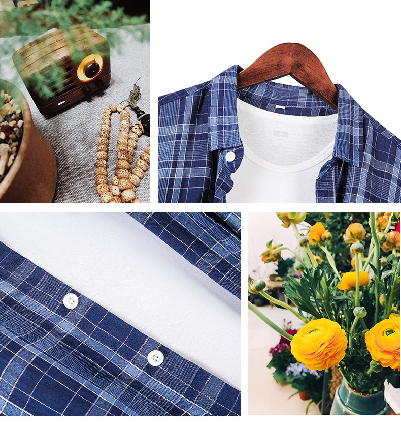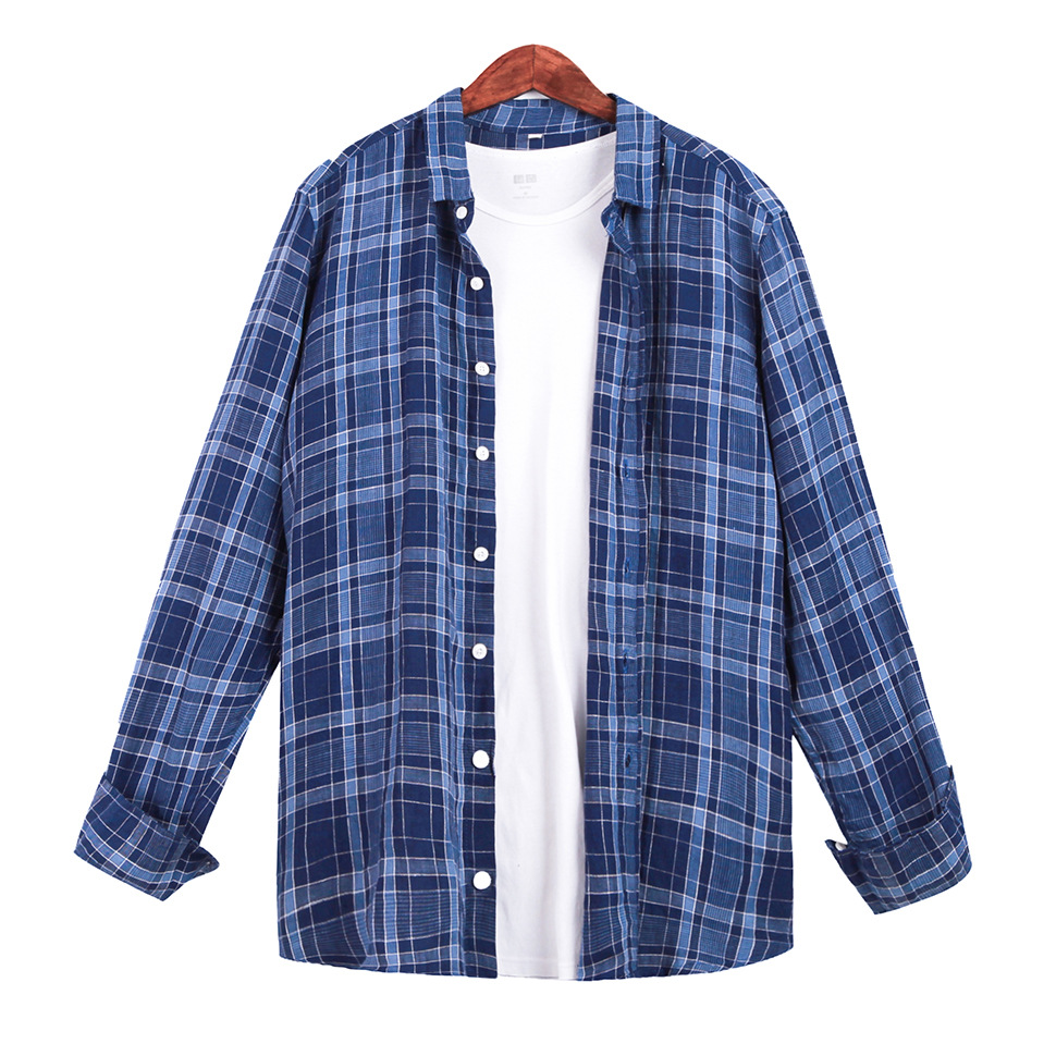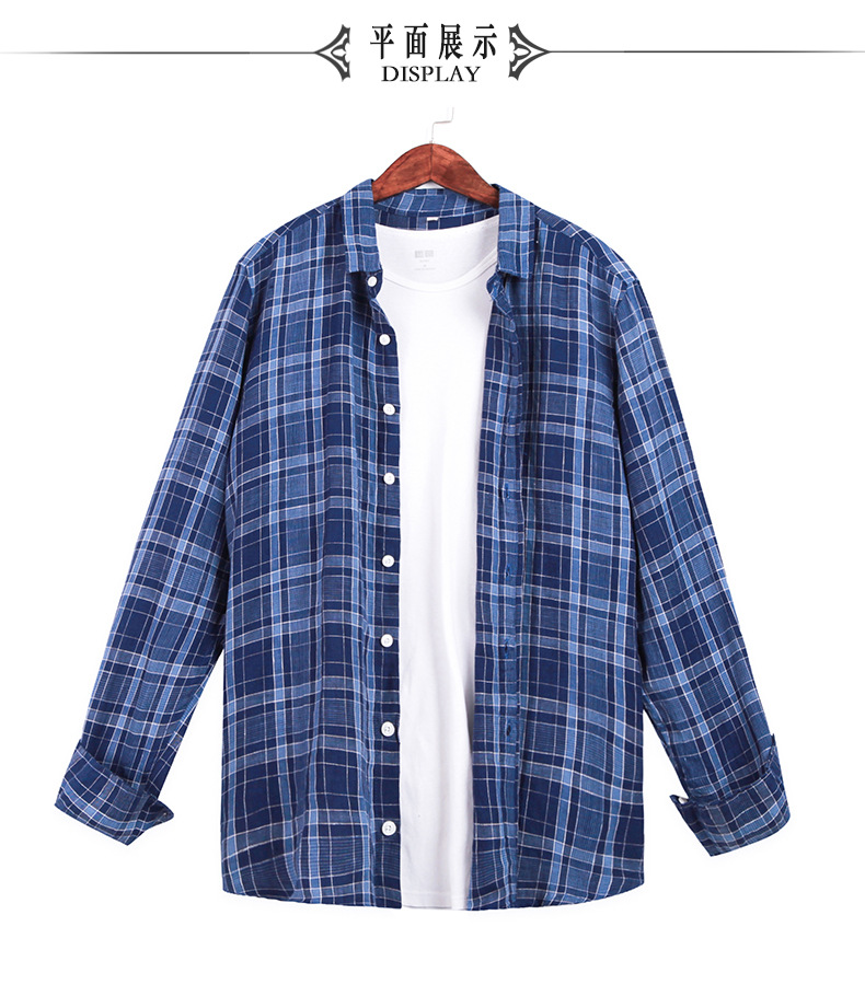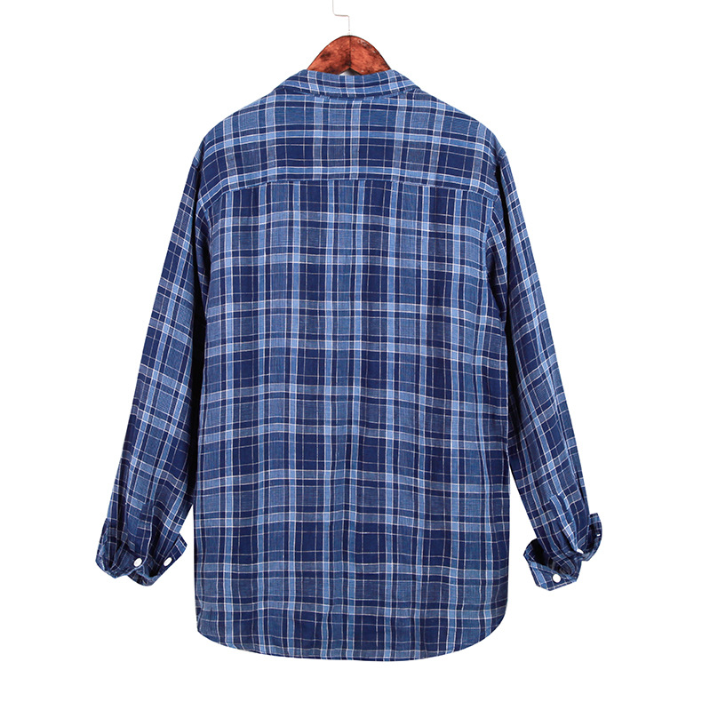 남성 캐주얼 린넨 셔츠 루즈한 린넨 긴팔 체크 무늬 셔츠스토어 가기