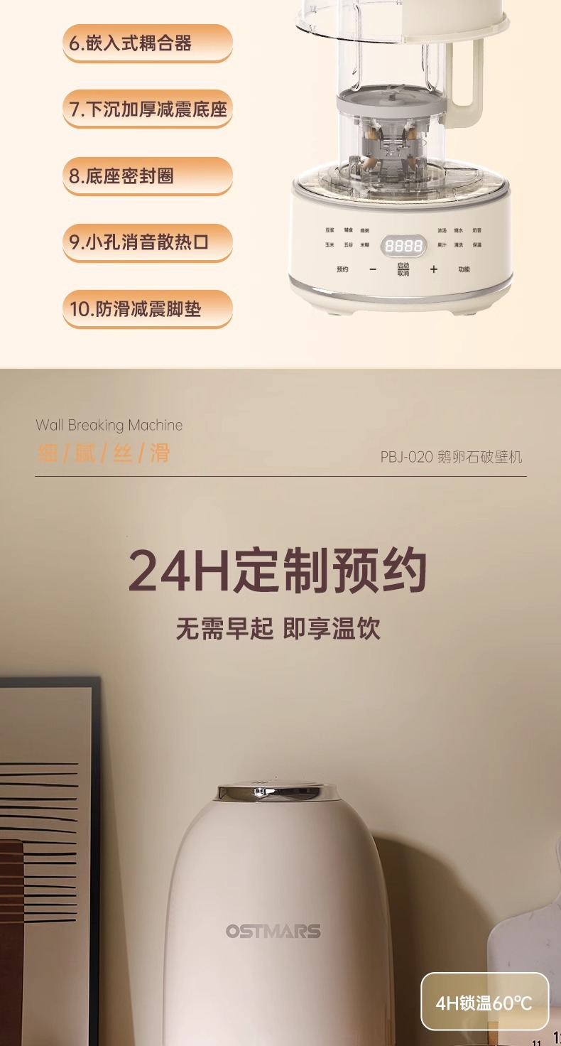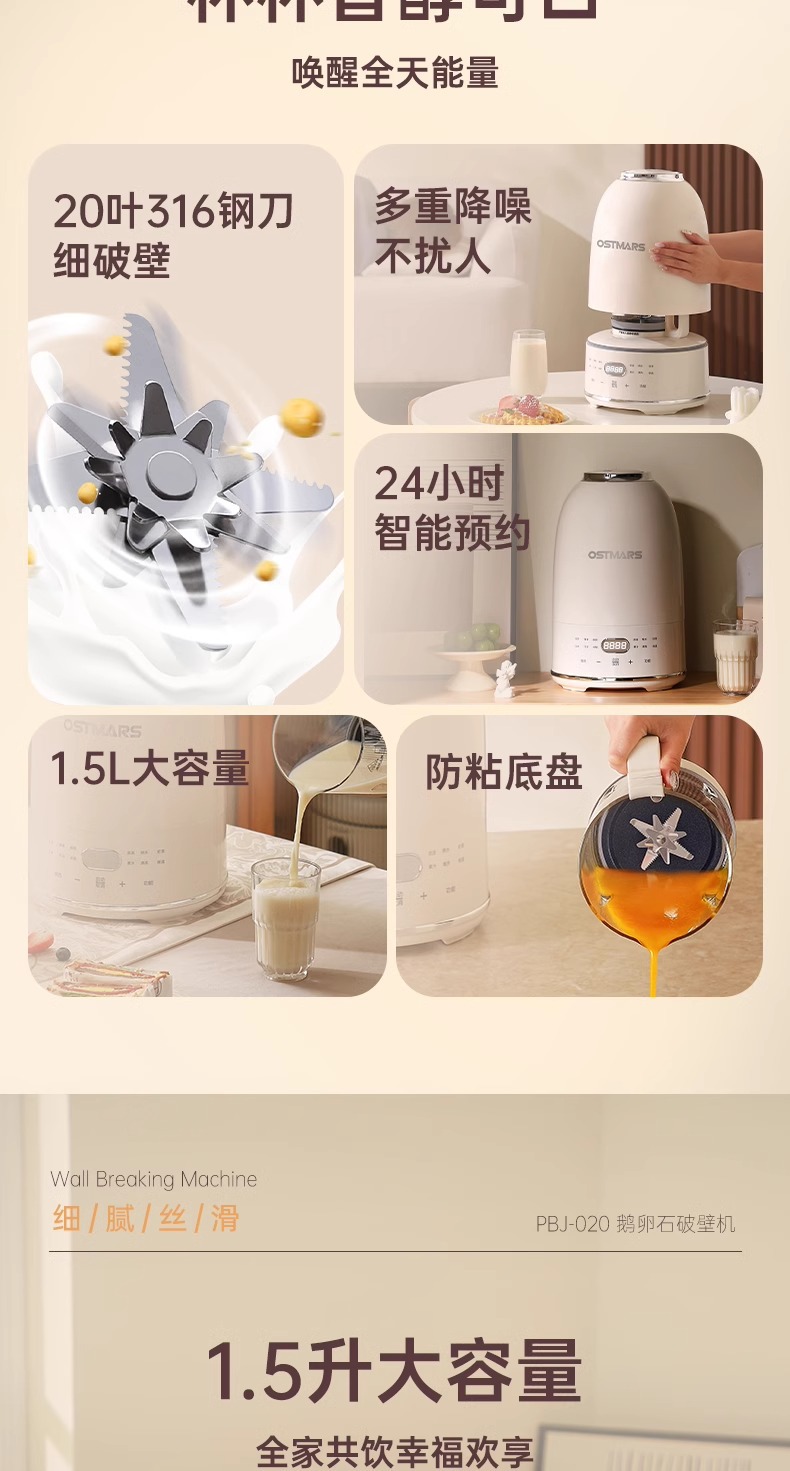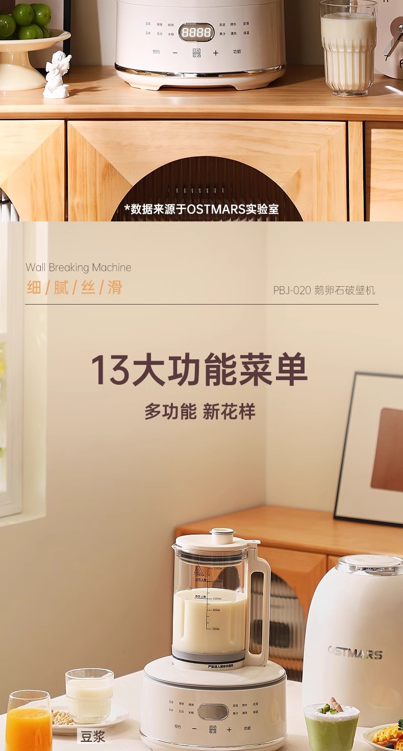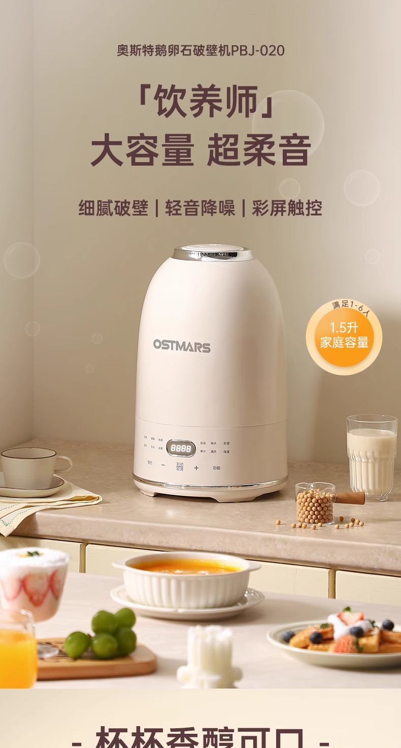 독일 OSTMARS 조약돌 벽 깨는 기계 1.5L 가정용 자동 라이트베이스 다기능 요리 두유 기계스토어 가기