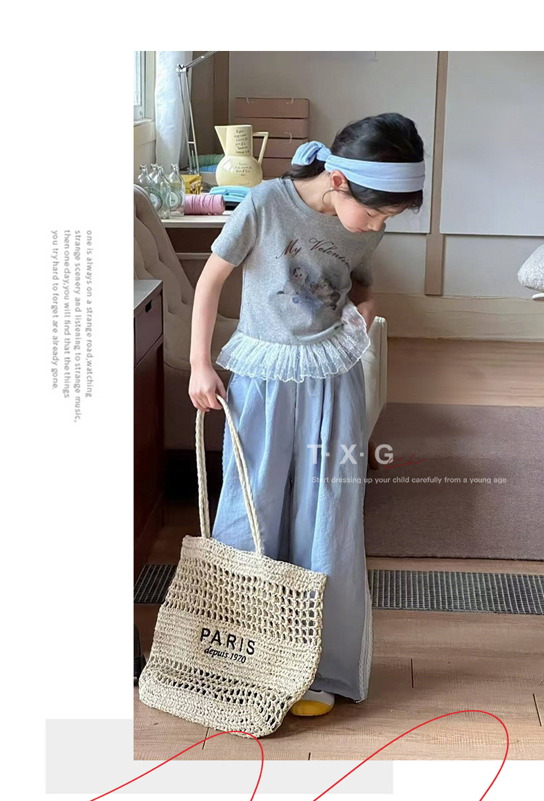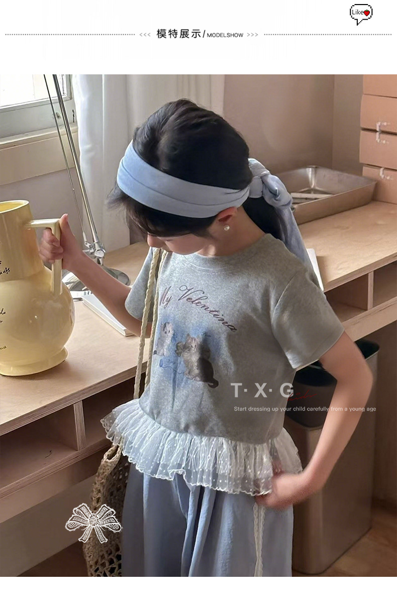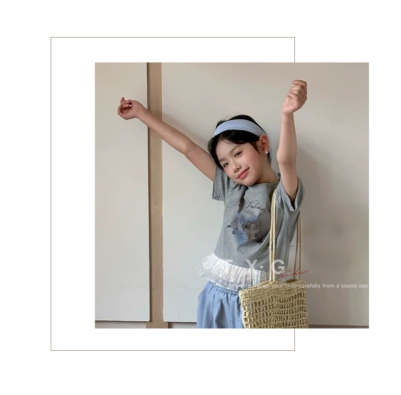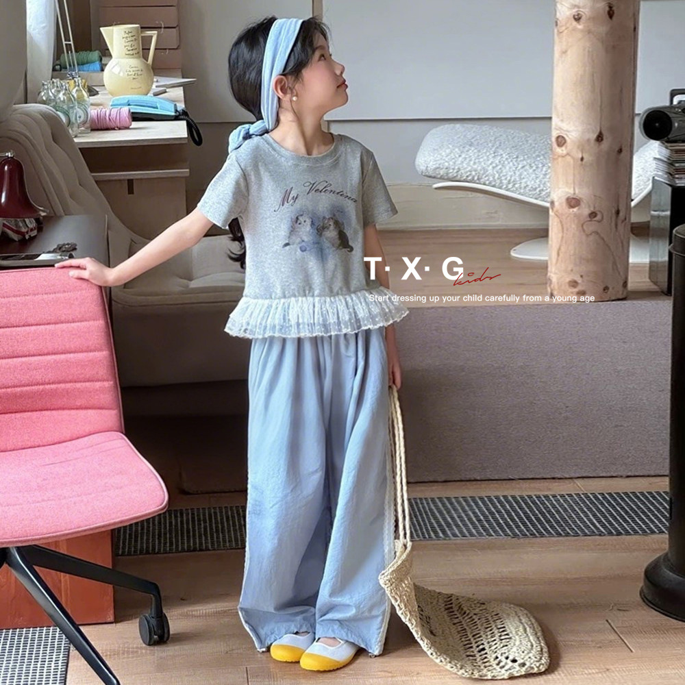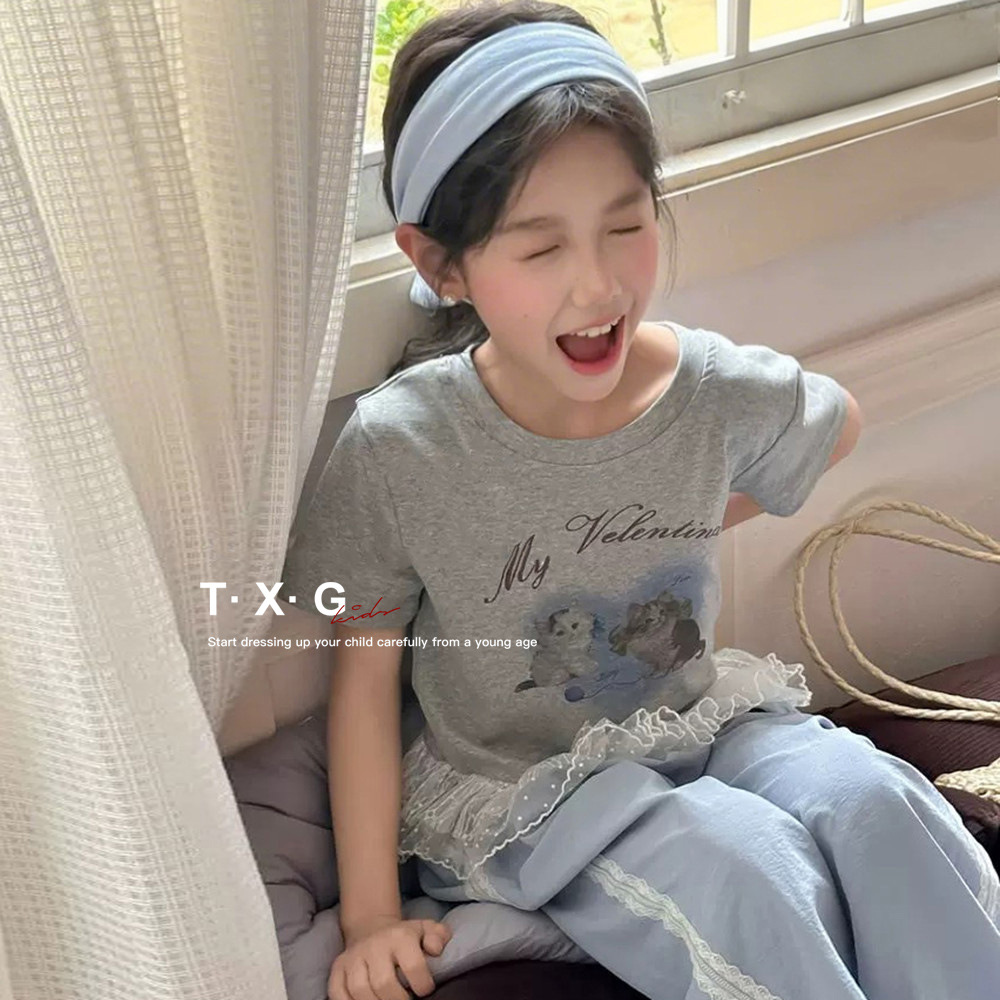 [재고] 한국 아동복 2025 여름 새 여자 레이스 반팔 티셔츠 외국식 레저 조끼