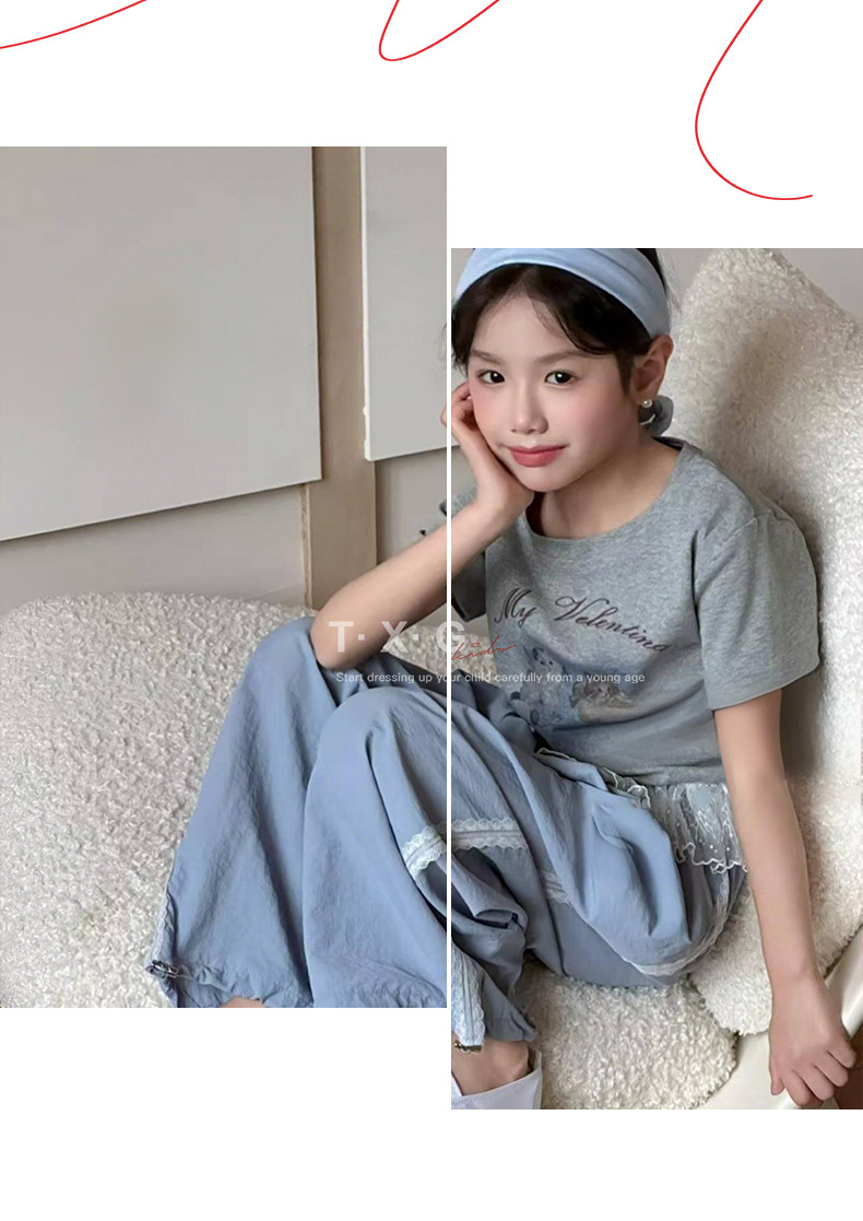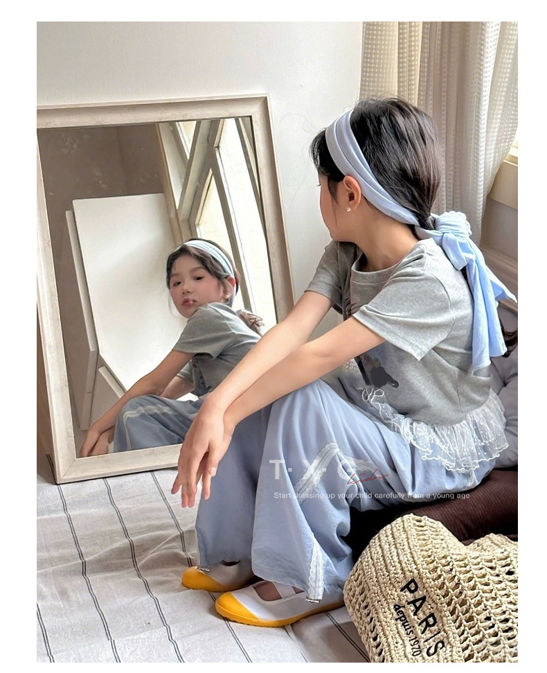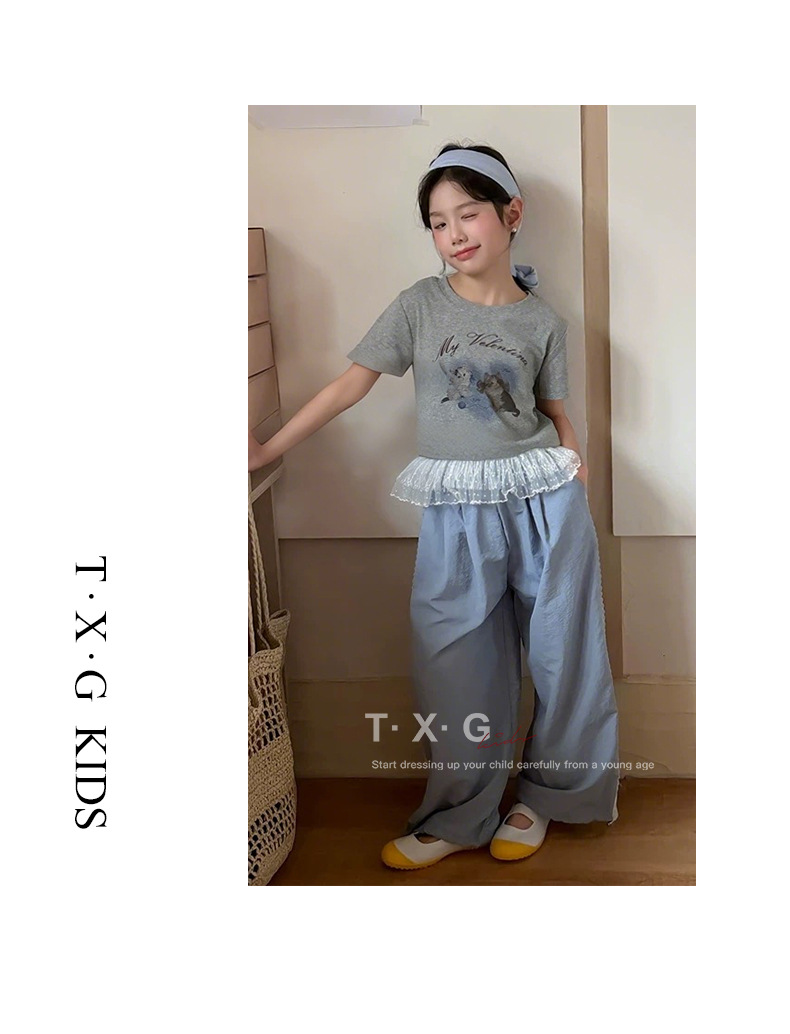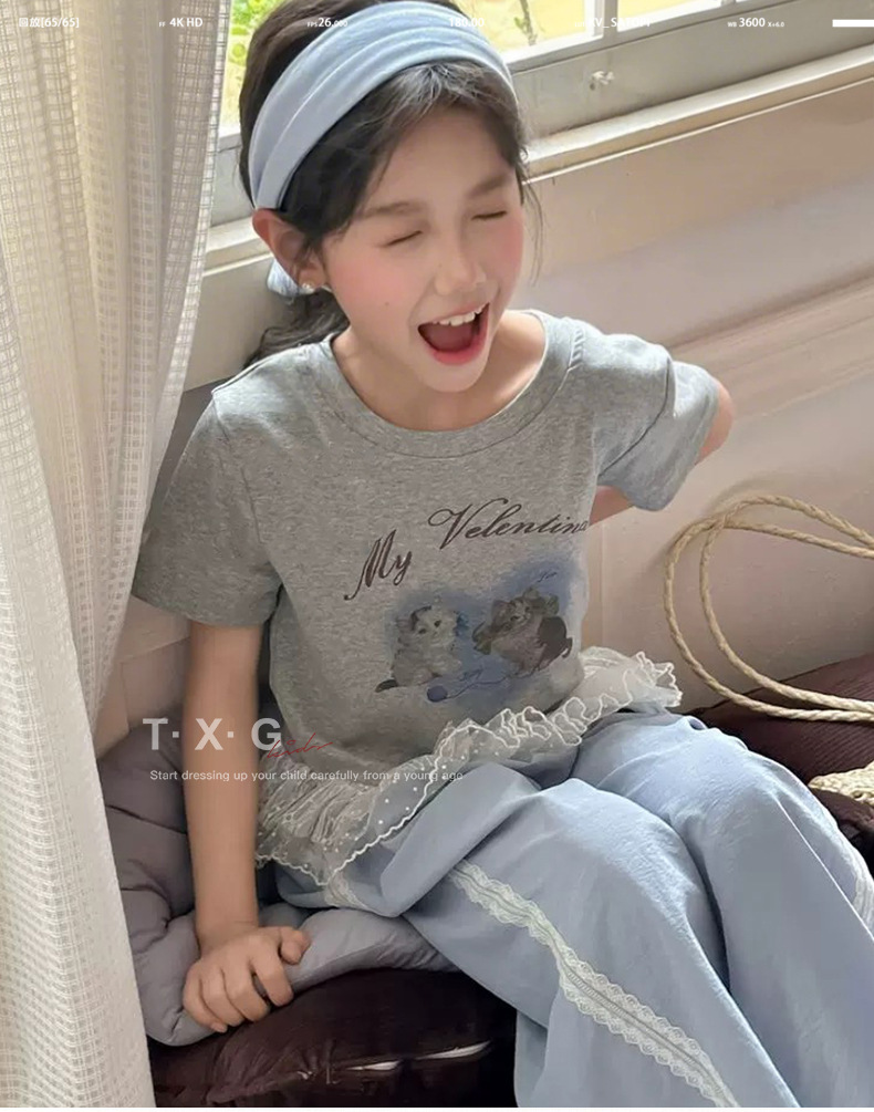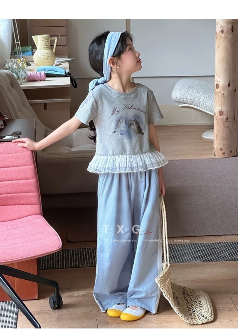 [재고] 한국 아동복 2025 여름 새 여자 레이스 반팔 티셔츠 외국식 레저 조끼