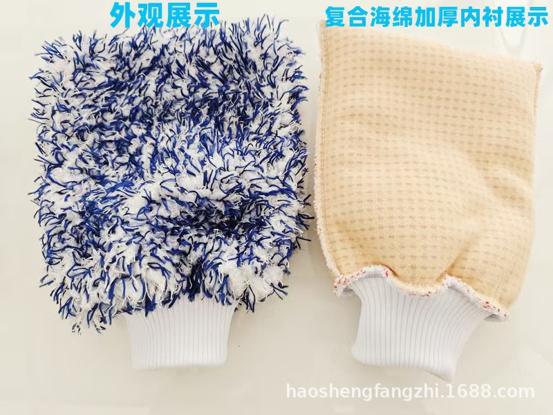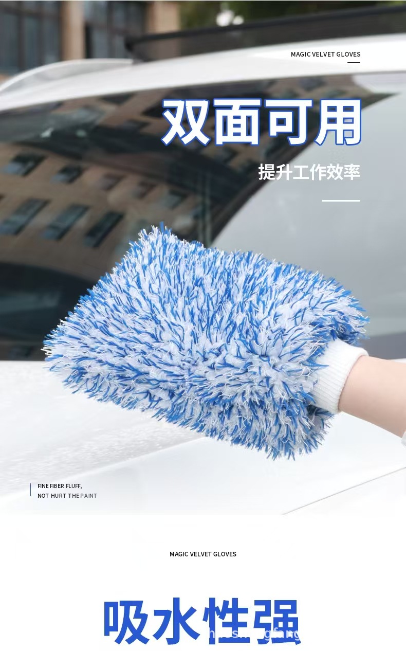 크로스보더 뷰티 벨벳 청소 장갑 초극세사 두꺼운 흡수성 대형 세차 장갑 자동차 미용 용품스토어 가기