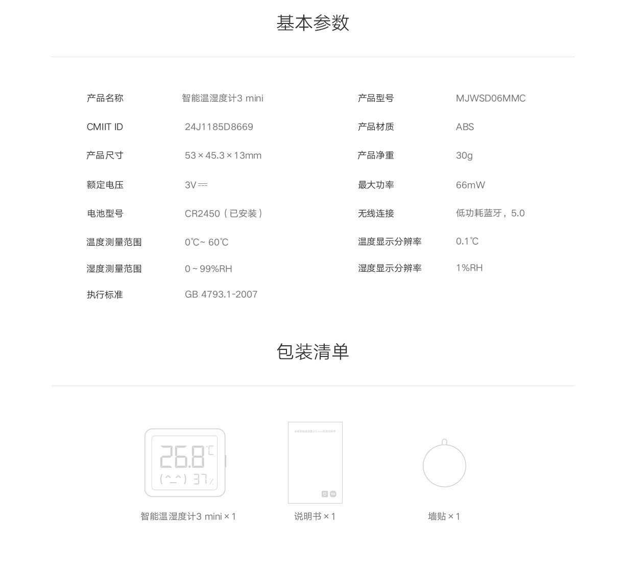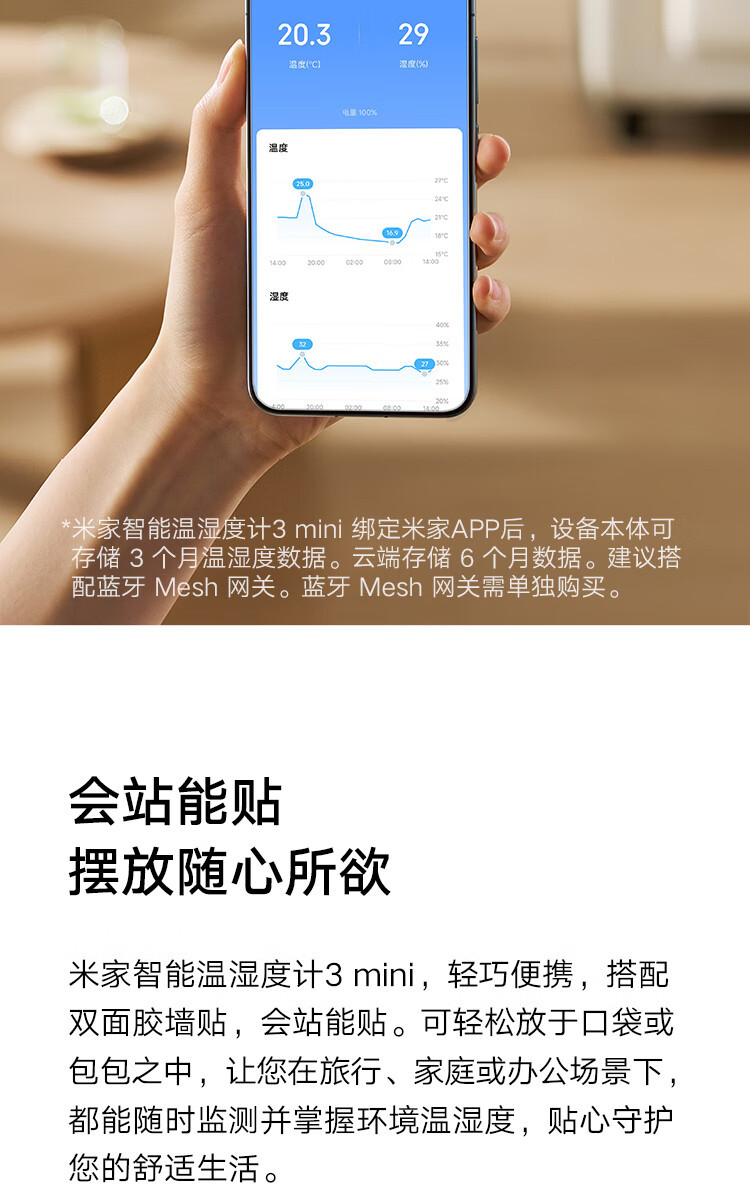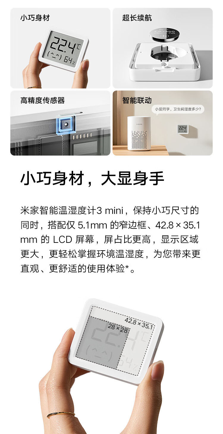 Xiao Mijia 지능형 온도 및 습도 측정기 3 미니 홈 고정밀 온도 디스플레이 지능형 연계 높은 내구성