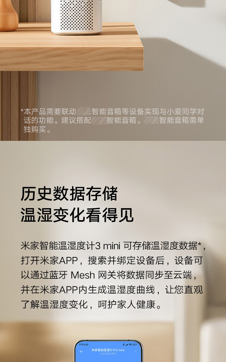 Xiao Mijia 지능형 온도 및 습도 측정기 3 미니 홈 고정밀 온도 디스플레이 지능형 연계 높은 내구성스토어 가기