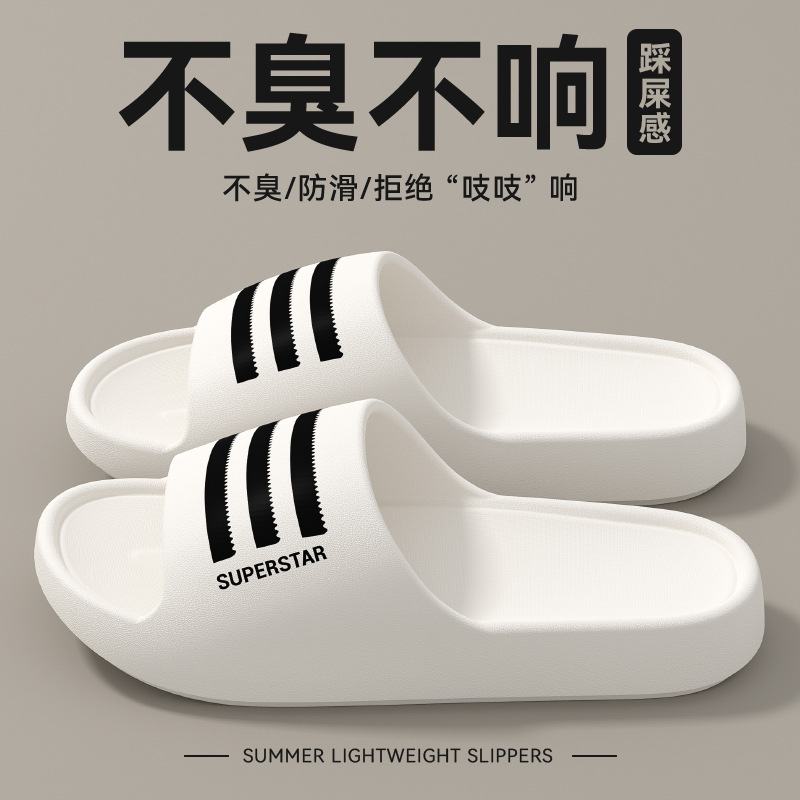 여성용 3줄 샌들, 두꺼운 밑창, 실내 가정용, 무소음, 부드러운 밑창, 미끄럼 방지, 냄새 방지, 욕실 목욕용 남성용 여름 슬리퍼스토어 가기