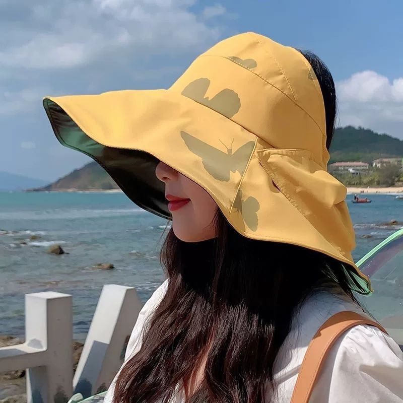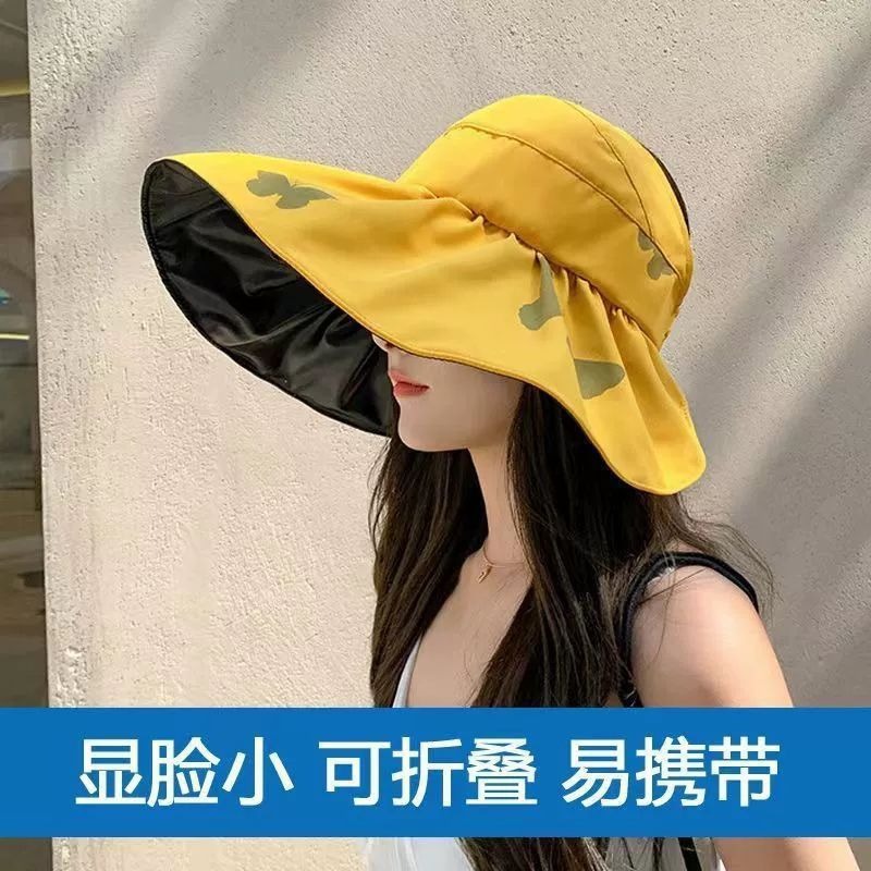 여름 비닐 태양 보호 모자 접이식 빈 탑 태양 모자 여성 얼굴 커버 새로운 나비 인쇄 인터넷 연예인 어부 모자스토어 가기