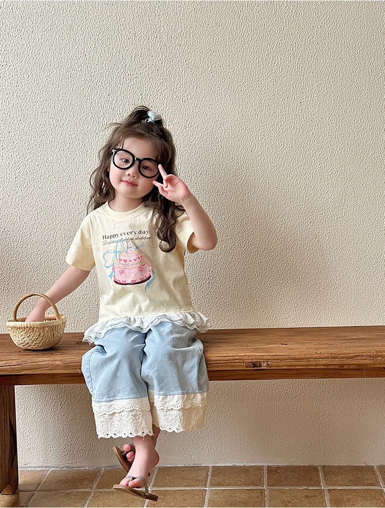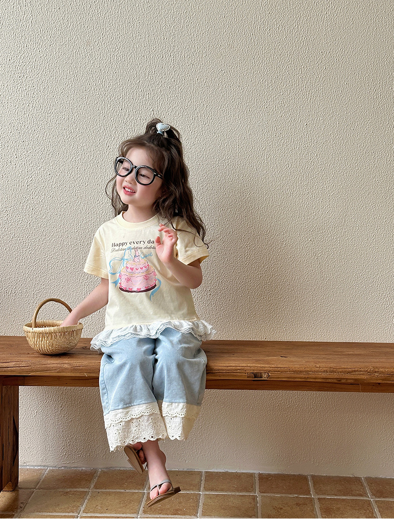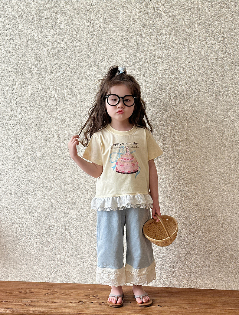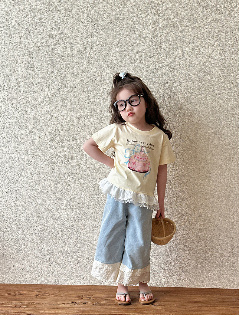 여아 데님 팬츠 여름 얇은 스타일 2026 신상 아동용 스트레이트 와이드 팬츠 유아 여름 바지 중소형 아동용