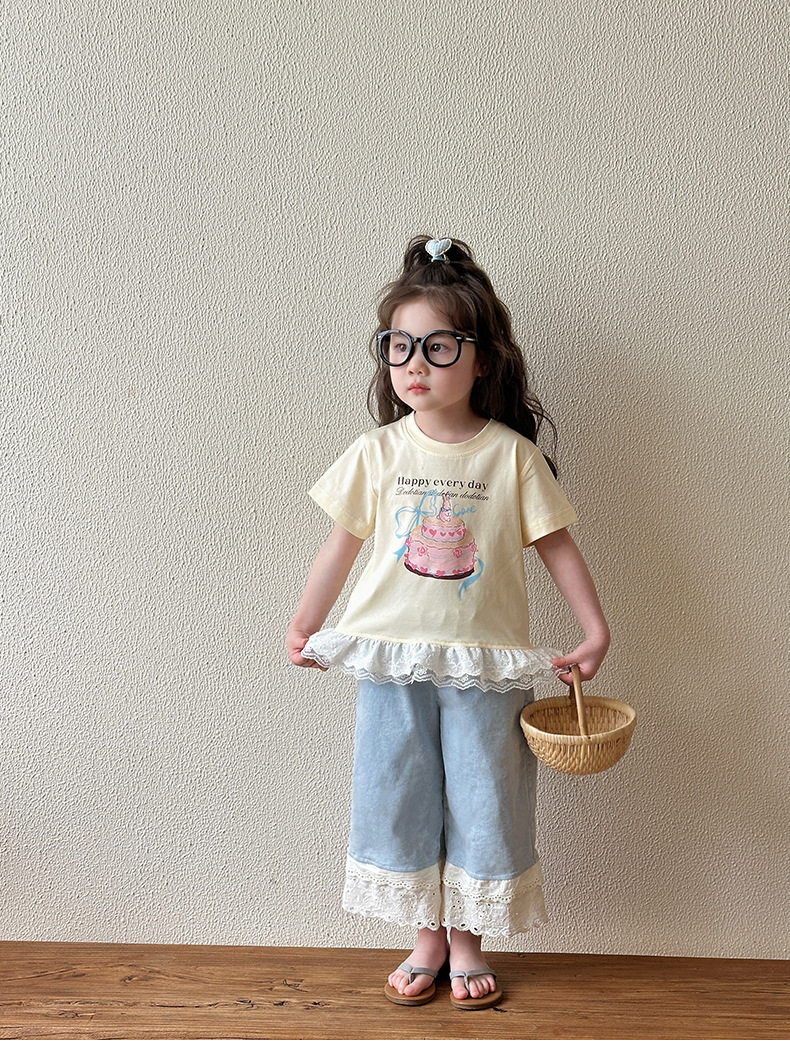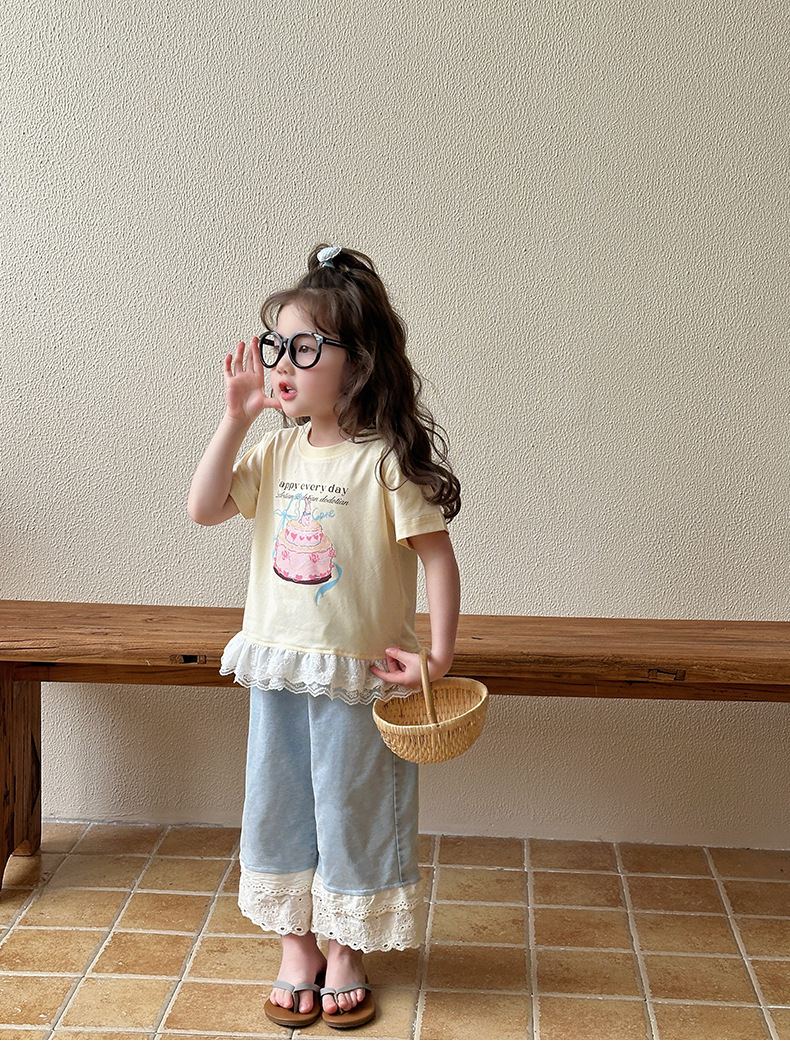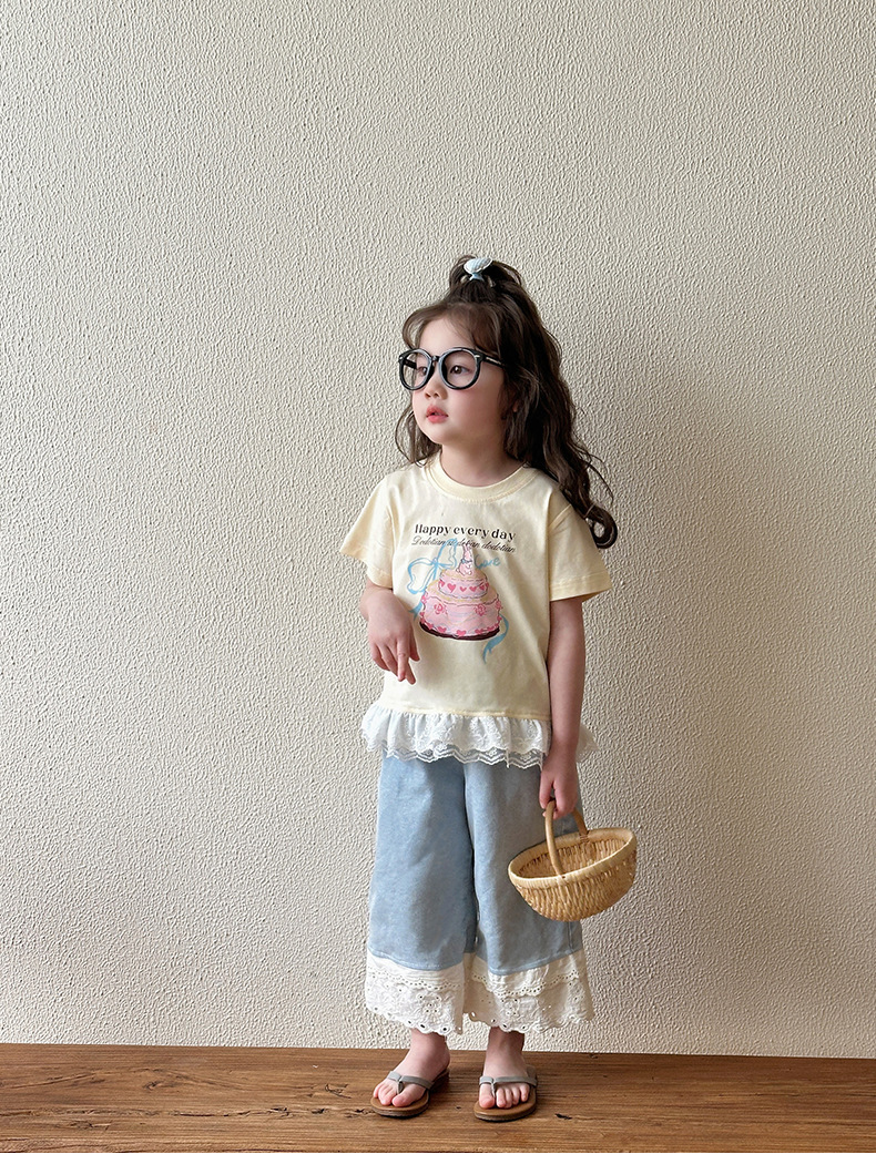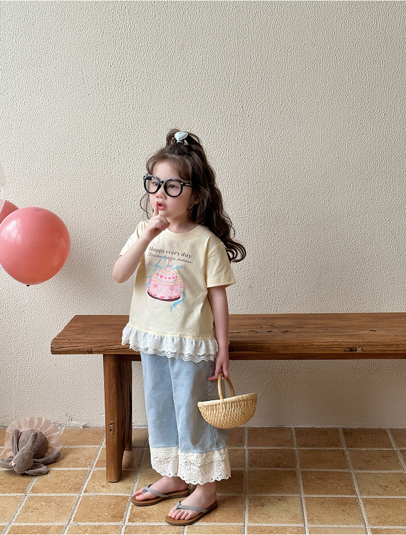 여아 데님 팬츠 여름 얇은 스타일 2026 신상 아동용 스트레이트 와이드 팬츠 유아 여름 바지 중소형 아동용
