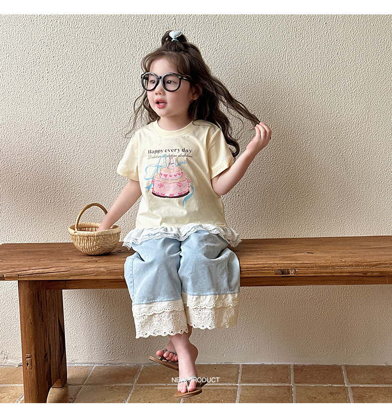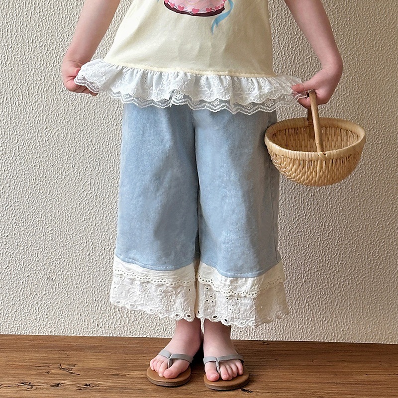 여아 데님 팬츠 여름 얇은 스타일 2026 신상 아동용 스트레이트 와이드 팬츠 유아 여름 바지 중소형 아동용스토어 가기