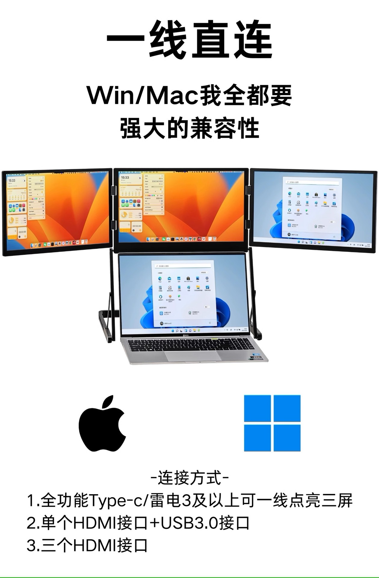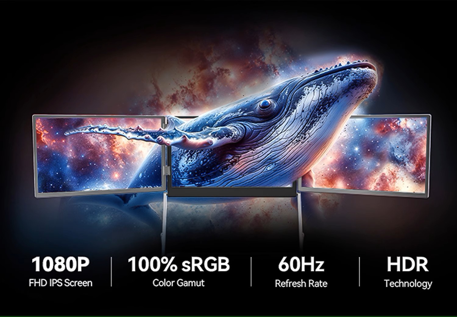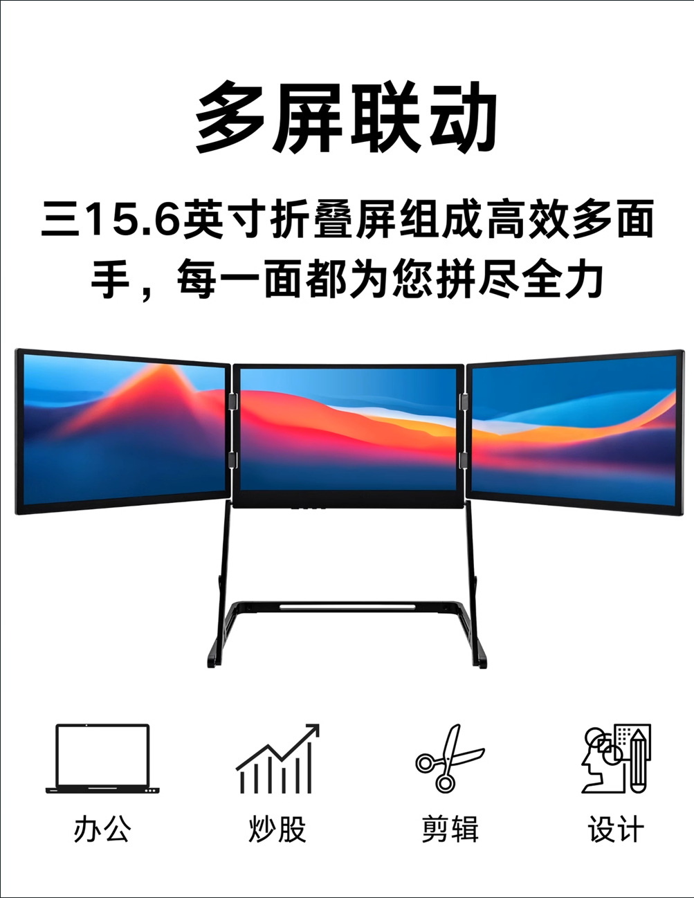 확장형 휴대용 3화면 모니터, 접이식 컴퓨터 멀티스크린, 주식 거래용 보조 화면, 듀얼 스크린, 분할 화면, 휴대용 모니터