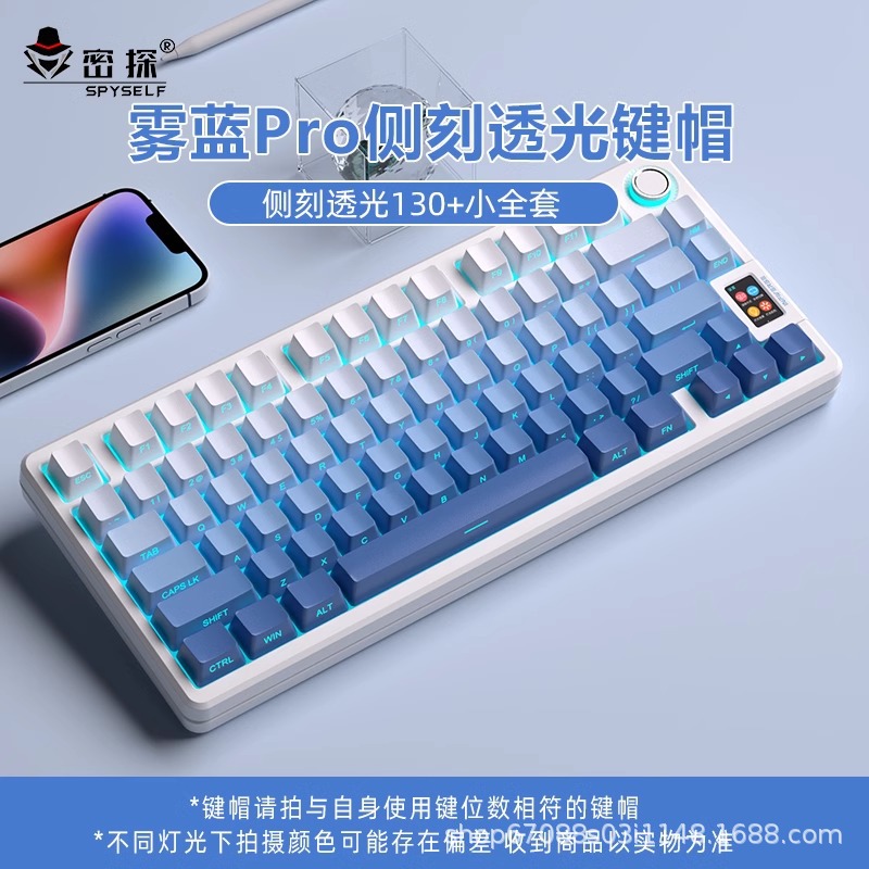 • 미스트 블루 각인된 4면 반투명 키캡 - 소형 전체 세트 [120개 이상의 키]