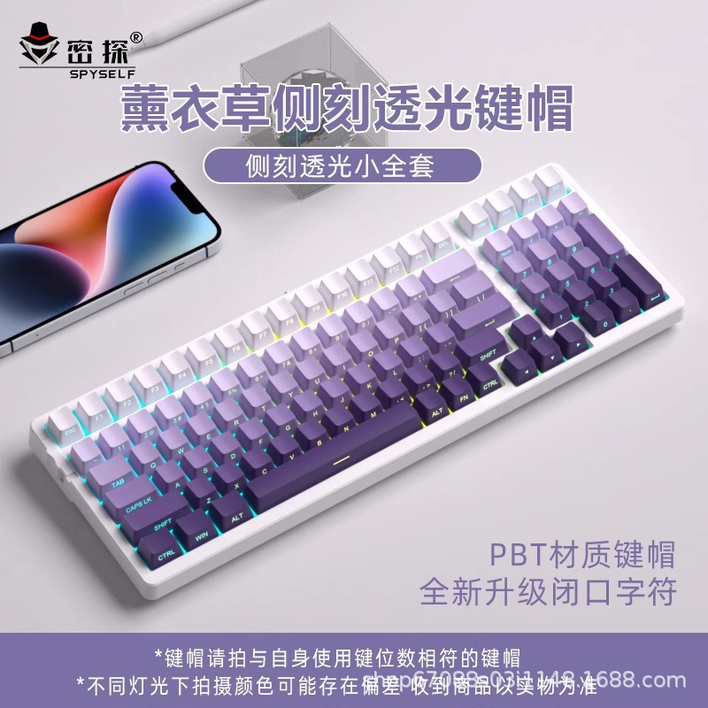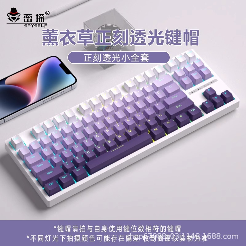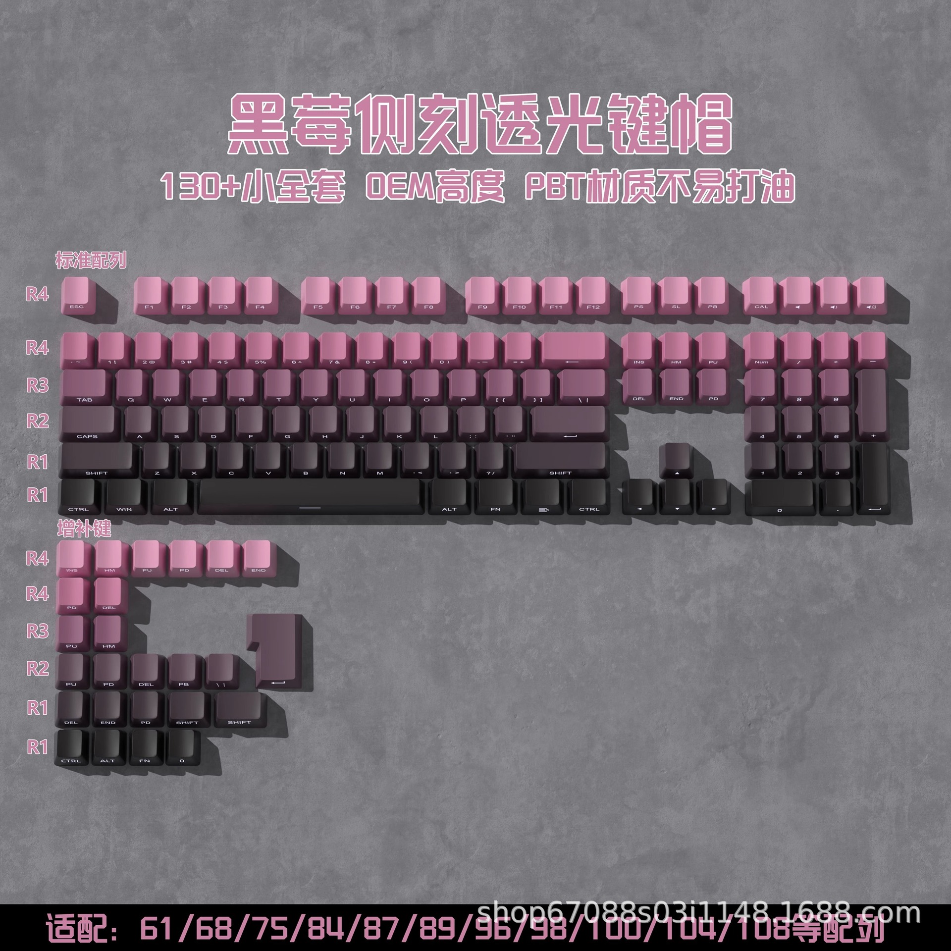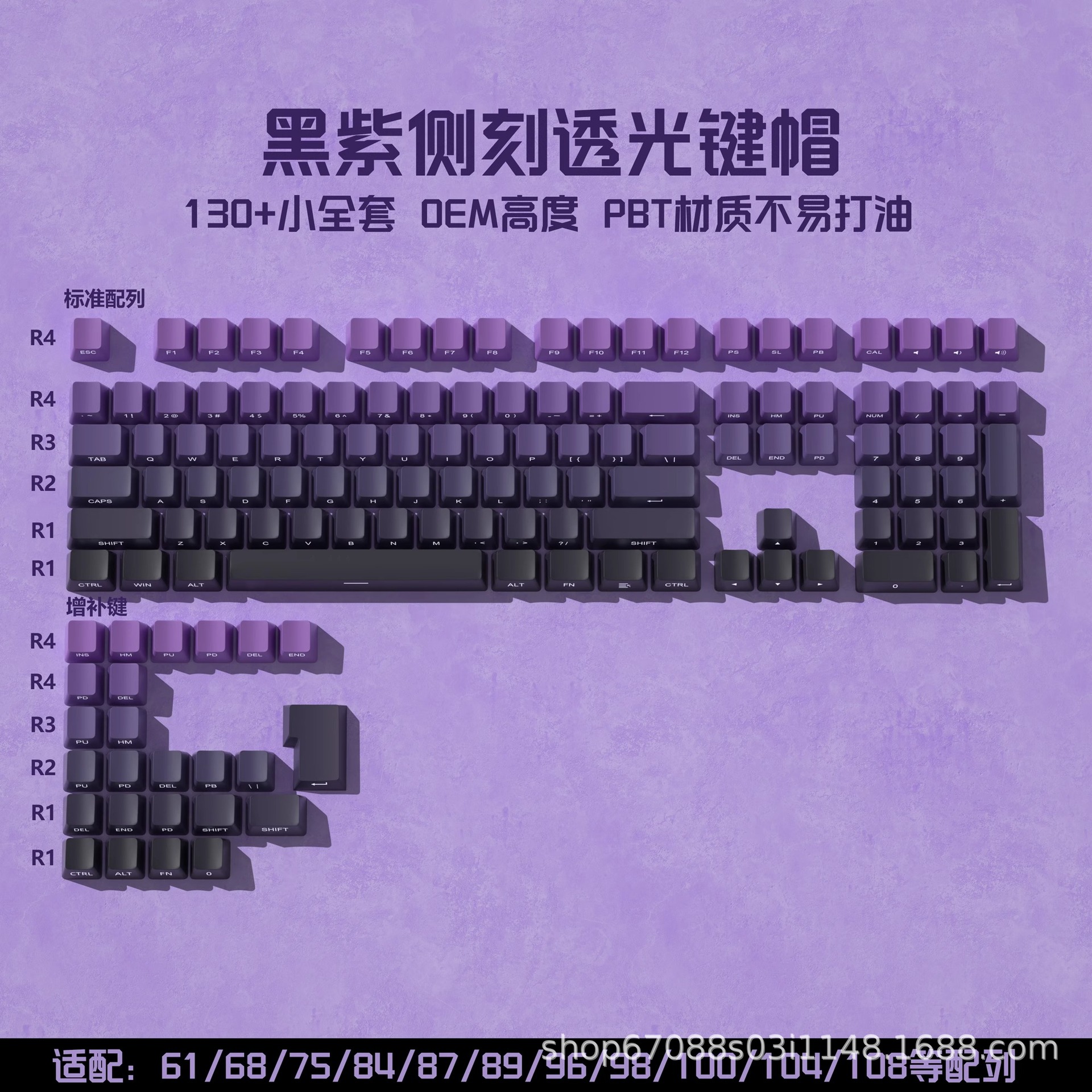 • 검정색 및 보라색 측면 각인 반투명 키캡 130개 이상의 키 소형 전체 세트