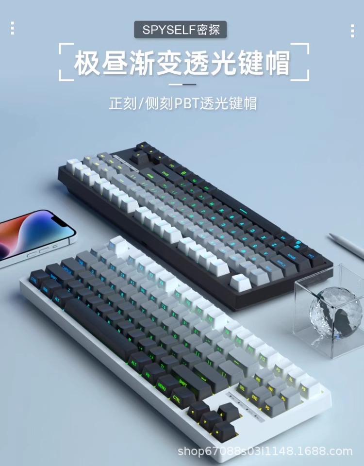 극광 프로 키캡 반투명 PBT87/75/98/68 배열 키보드 캡 맞춤형 양면 각인 키캡