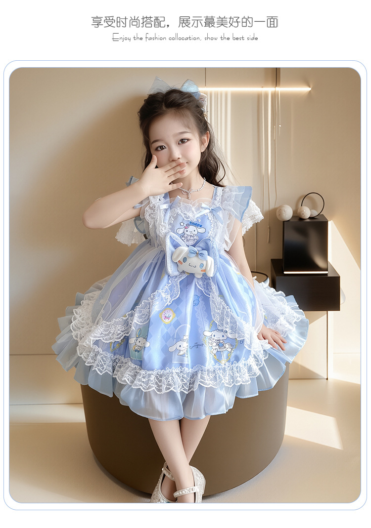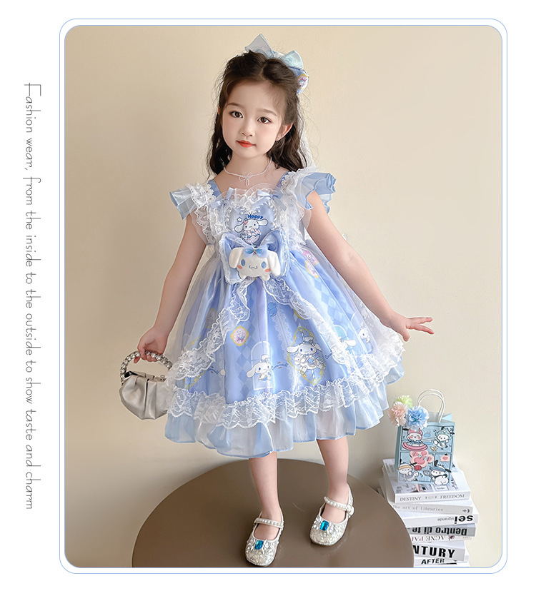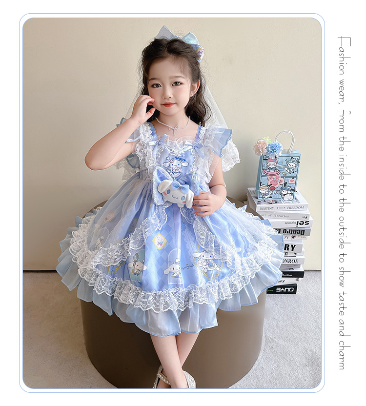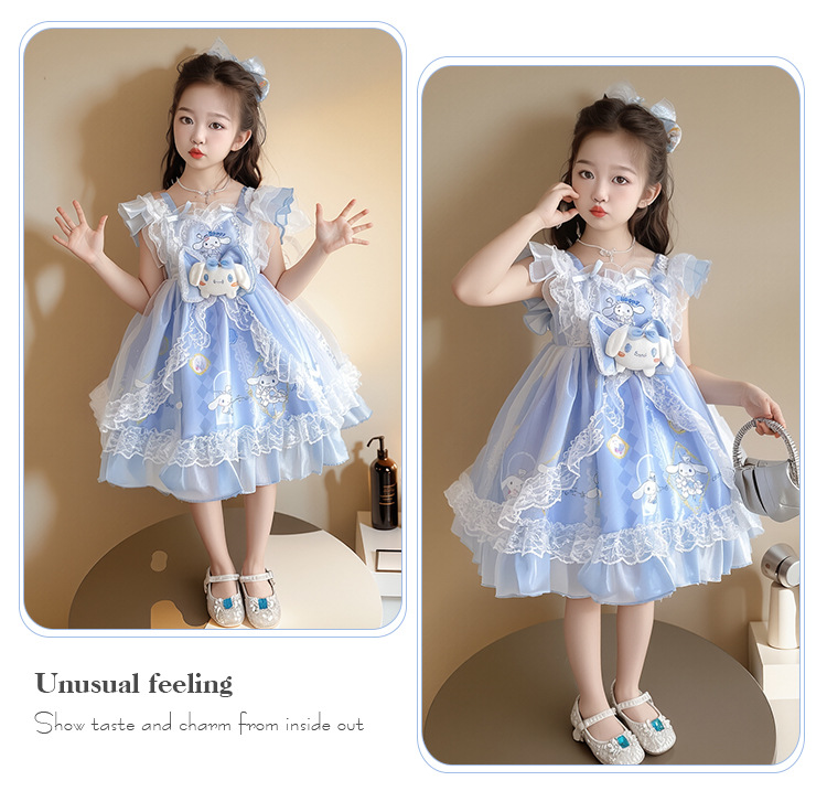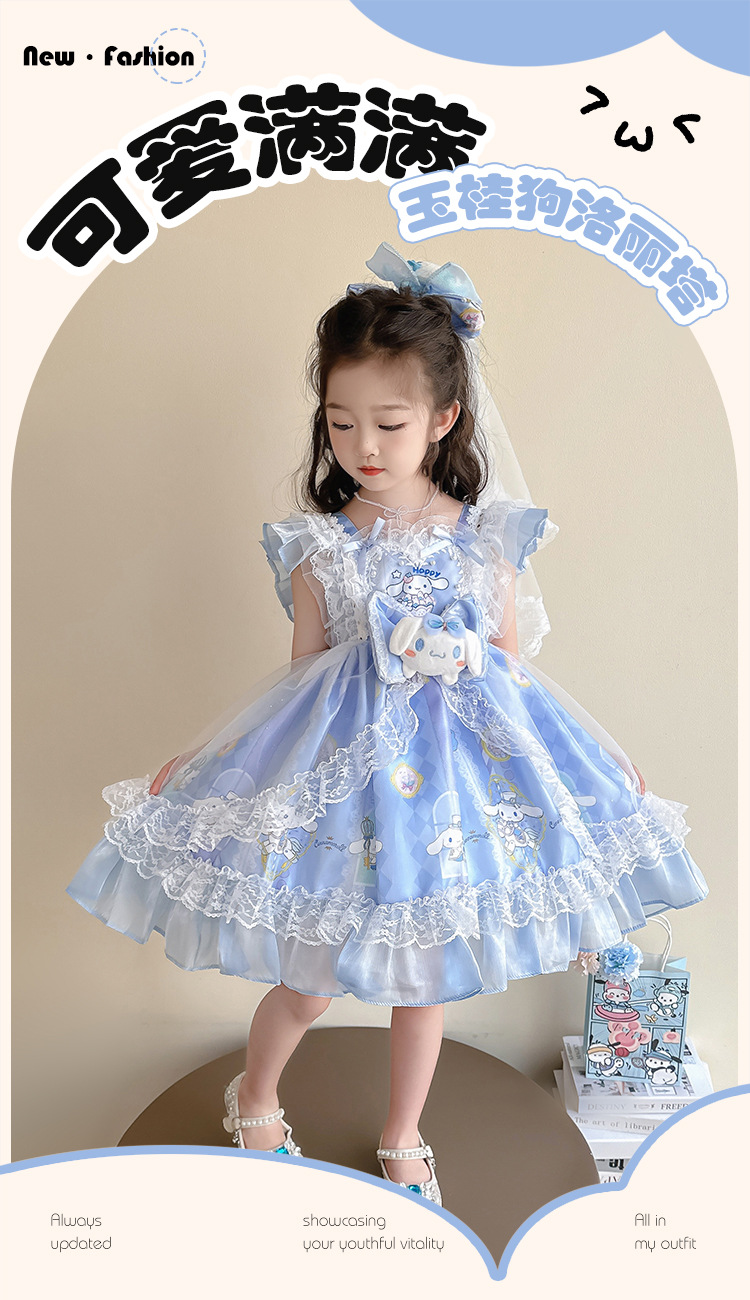 여자 계피 개 공주 드레스 2025 여름 새로운 어린이 스타일 생일 드레스 아기 로리타 드레스스토어 가기