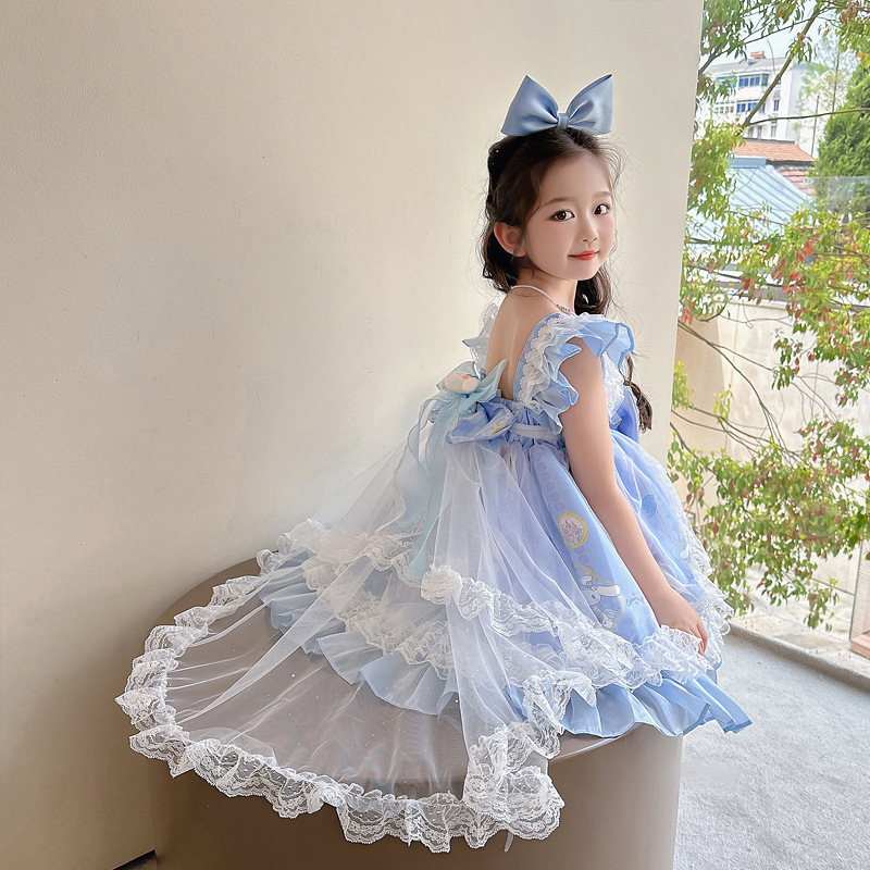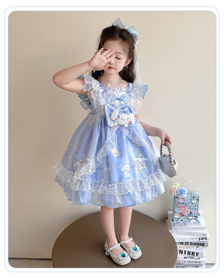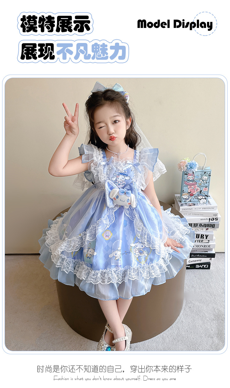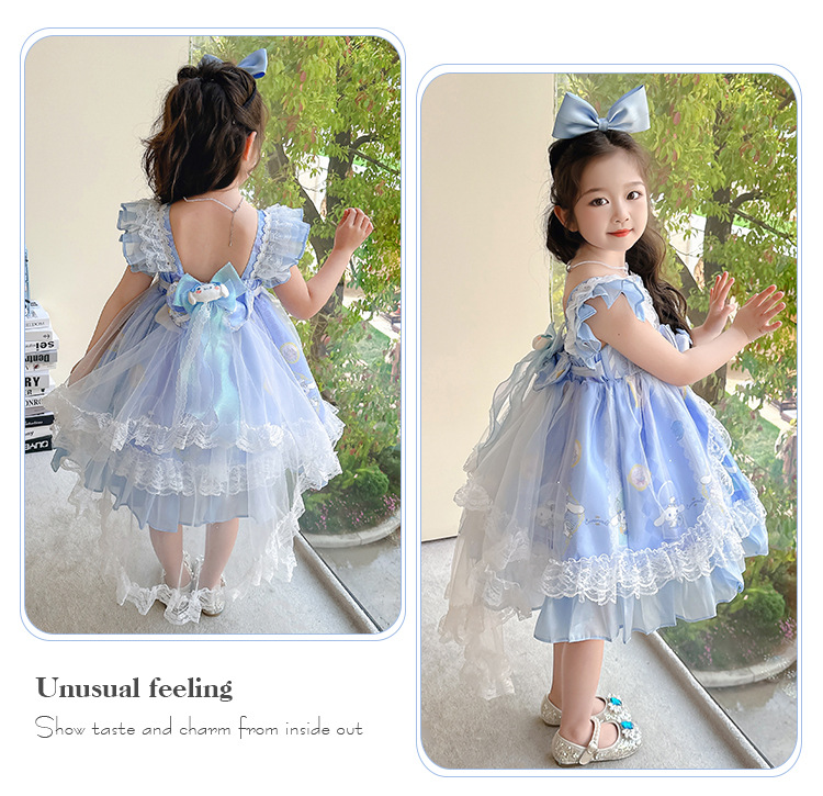 여자 계피 개 공주 드레스 2025 여름 새로운 어린이 스타일 생일 드레스 아기 로리타 드레스스토어 가기