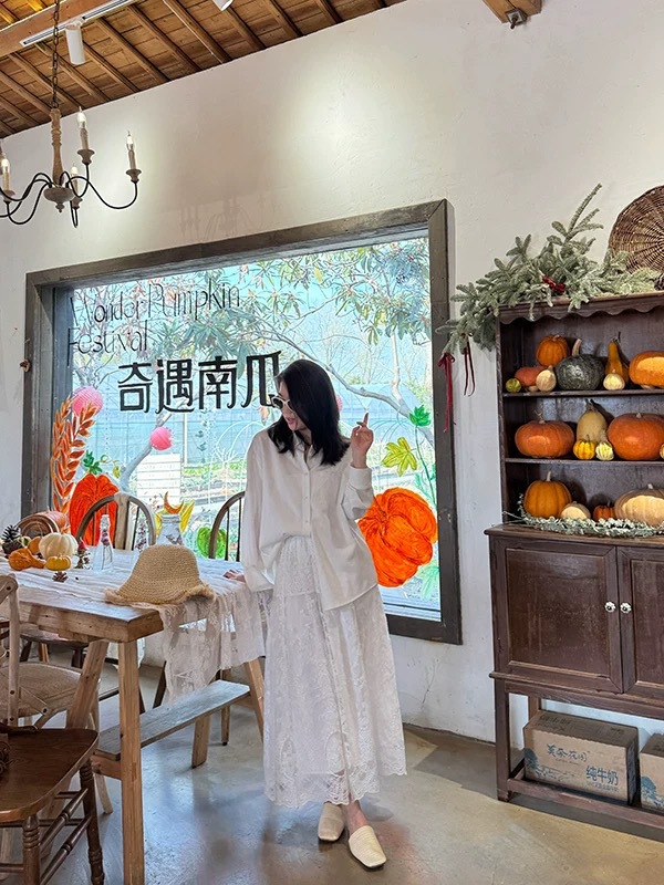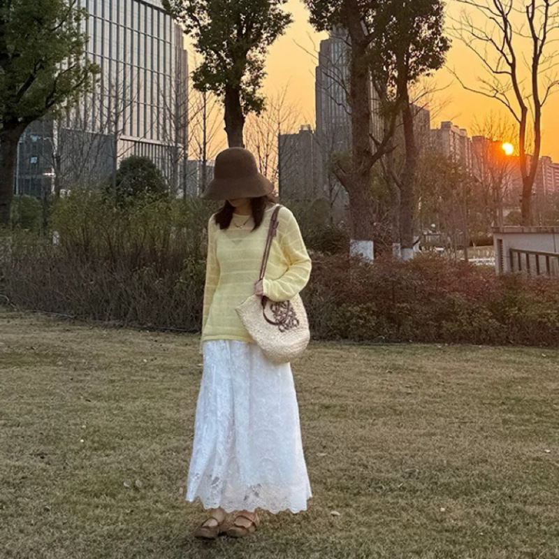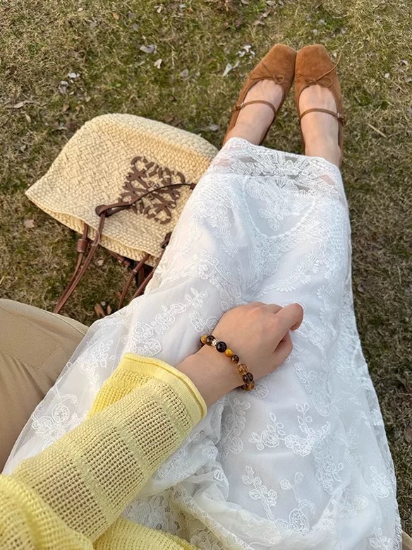 Huazongya 첫사랑 스커트 2025 초봄 신상 한국식 완전 신축성 레이스 자카드 스커트스토어 가기