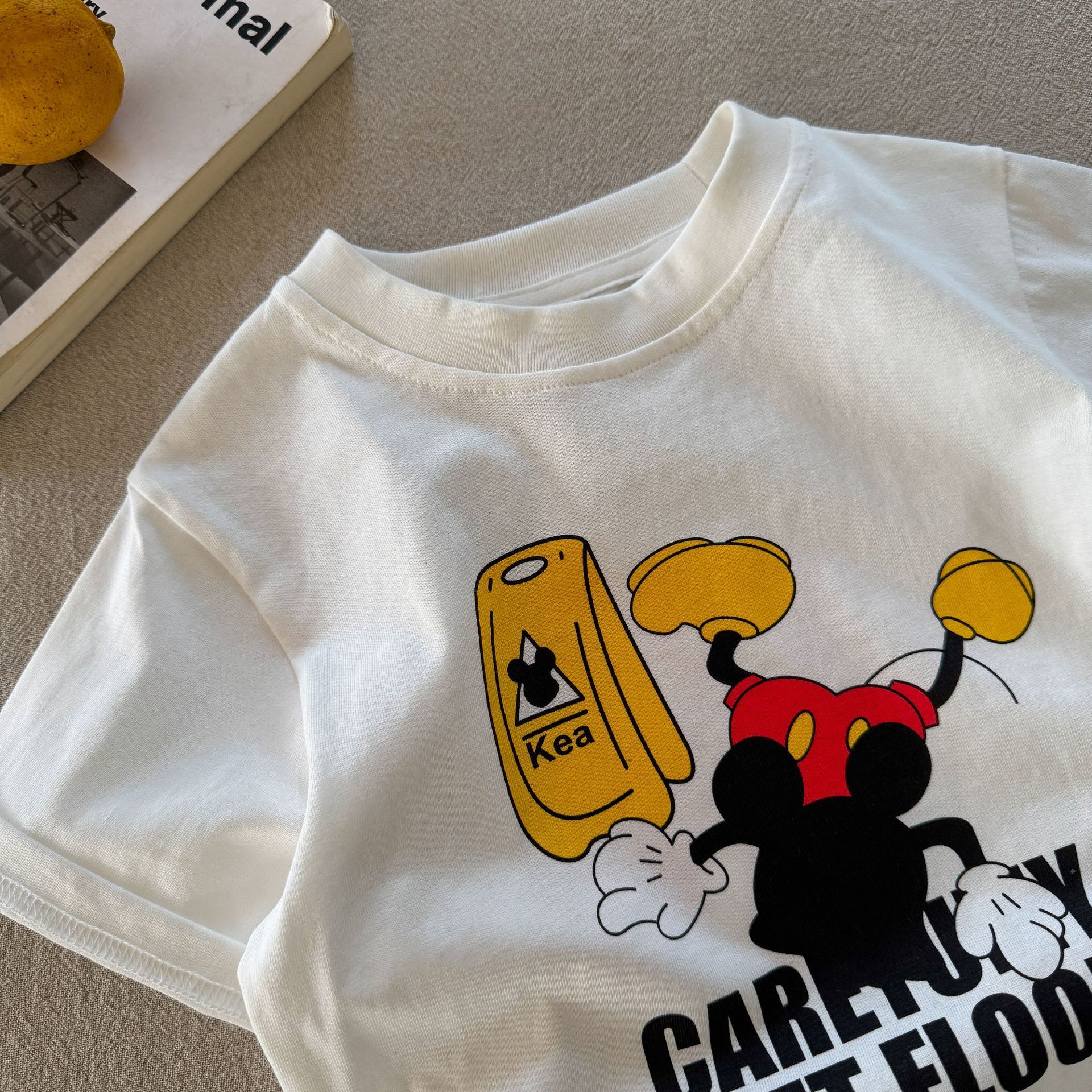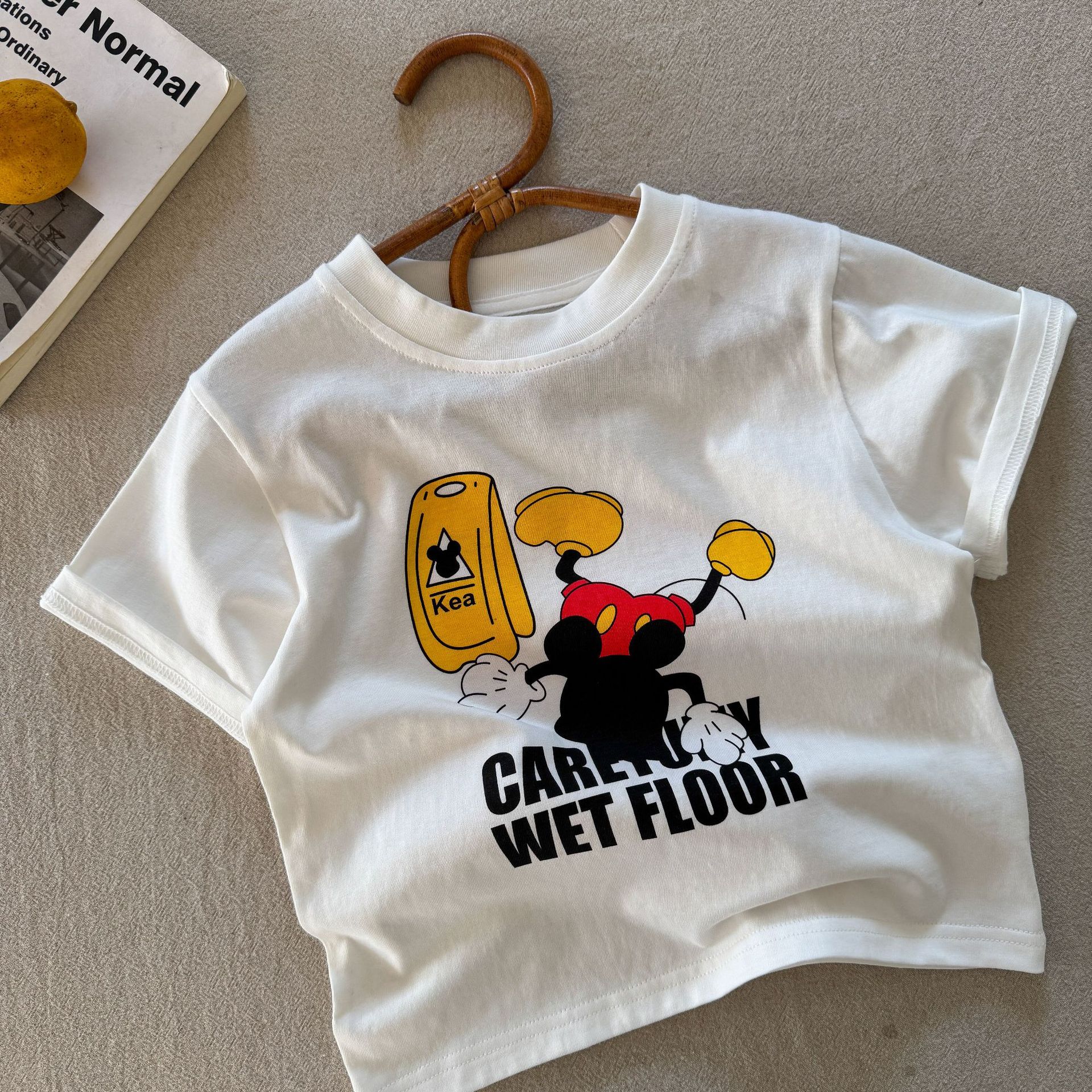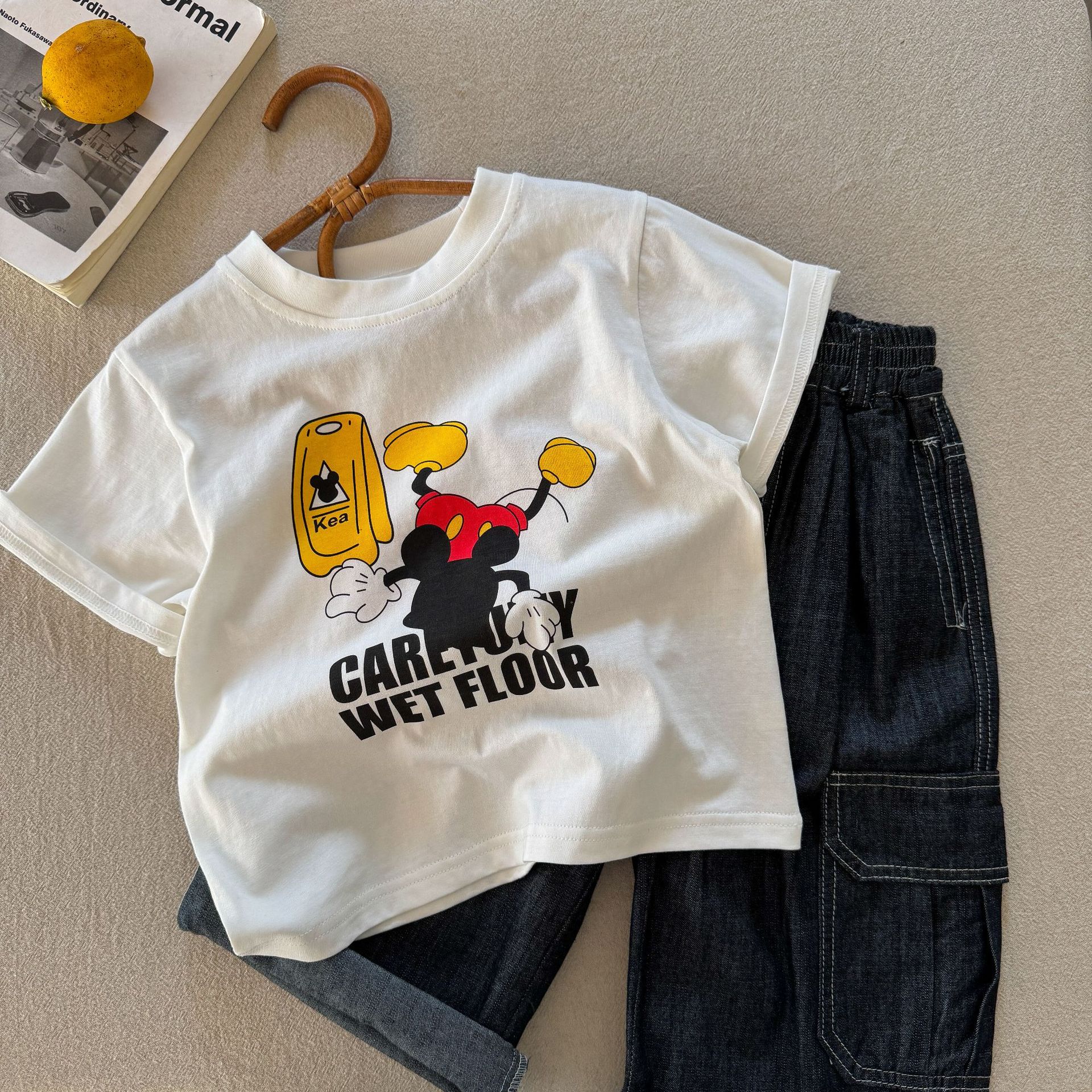 어린이 반팔 2025 여름 새로운 아동복 소년과 소녀 만화 인쇄 흰색 티셔츠 아기의 트렌디 쿨 탑스토어 가기