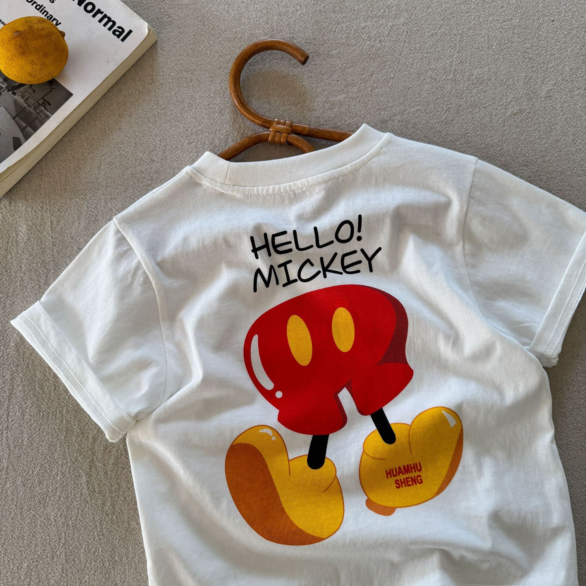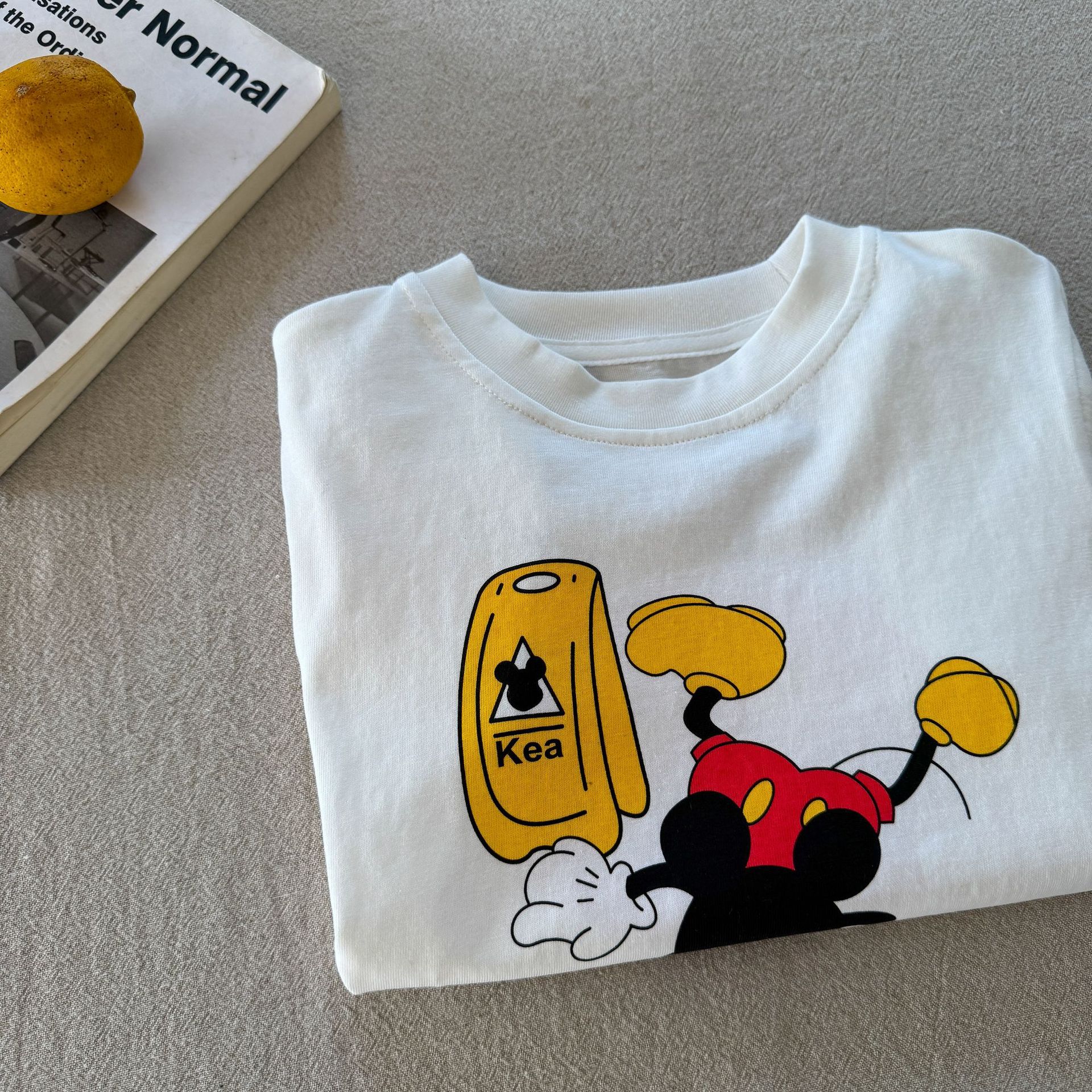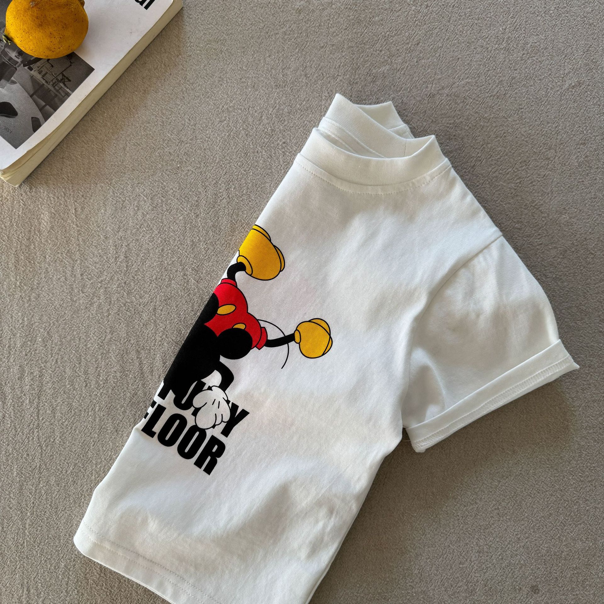 어린이 반팔 2025 여름 새로운 아동복 소년과 소녀 만화 인쇄 흰색 티셔츠 아기의 트렌디 쿨 탑스토어 가기