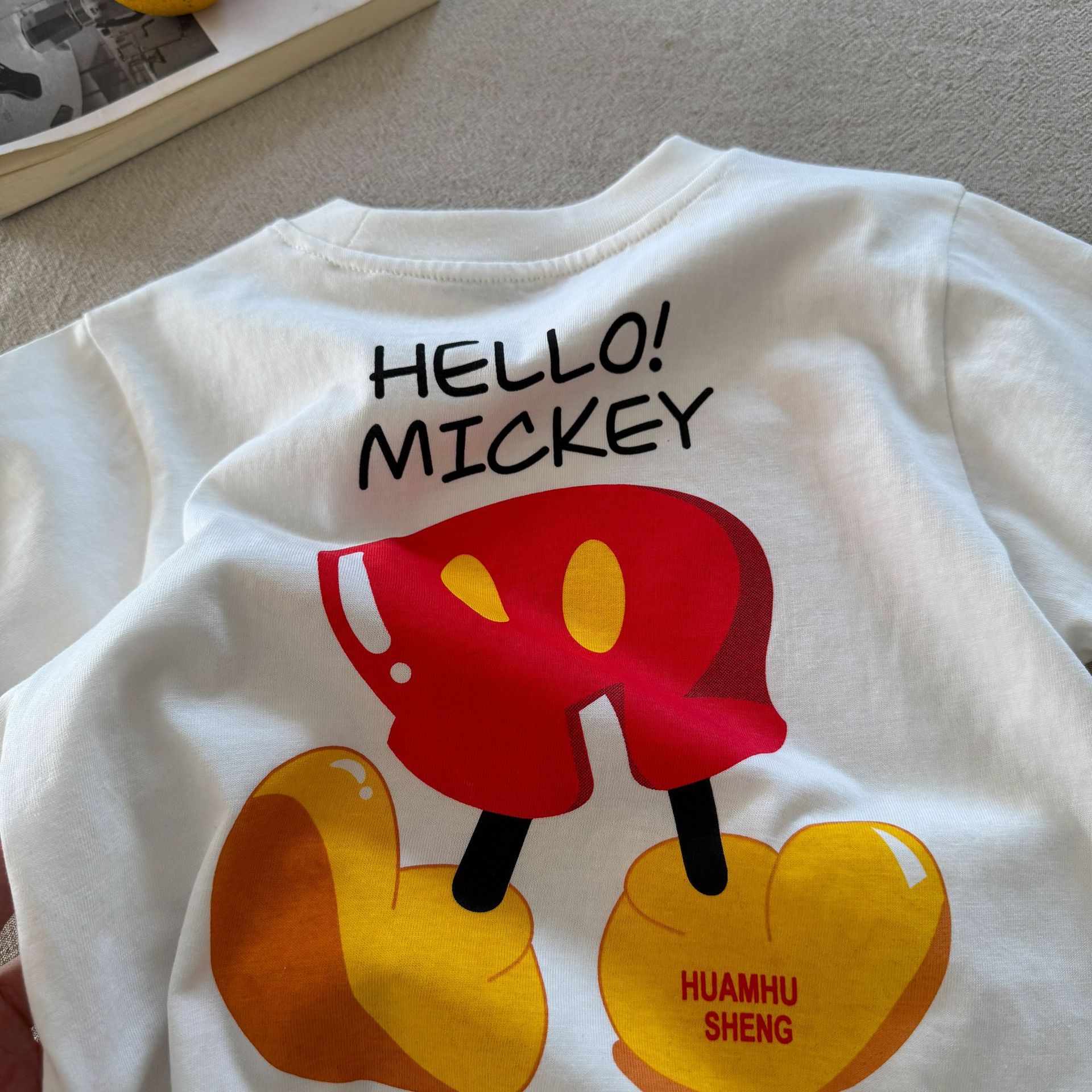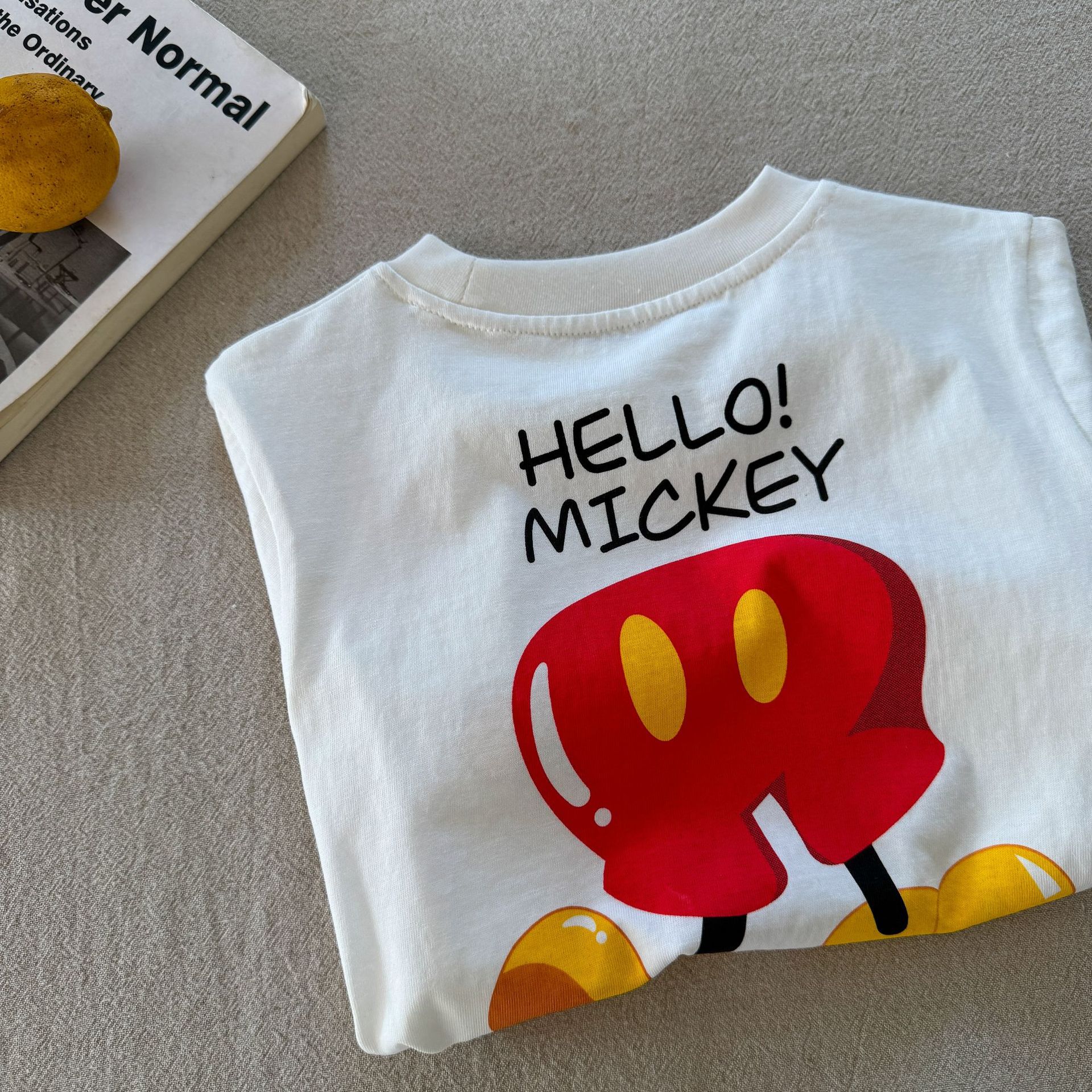 어린이 반팔 2025 여름 새로운 아동복 소년과 소녀 만화 인쇄 흰색 티셔츠 아기의 트렌디 쿨 탑