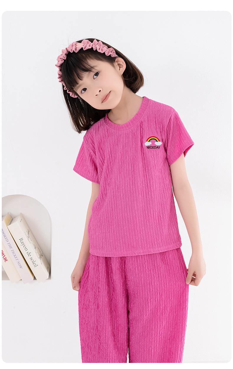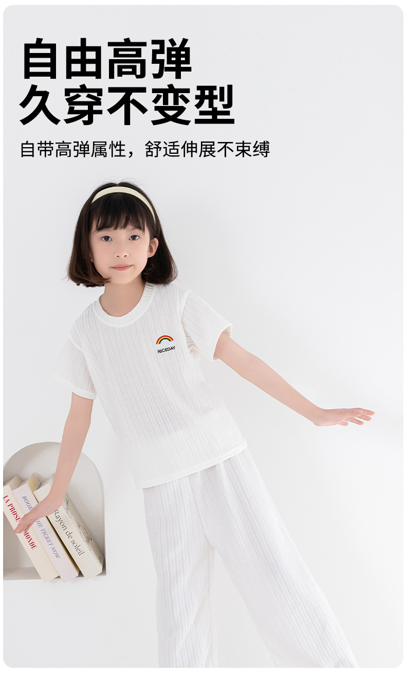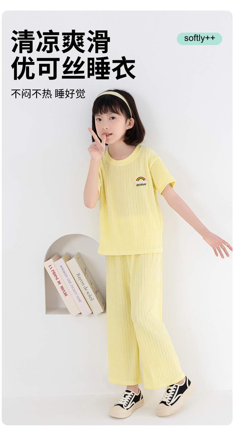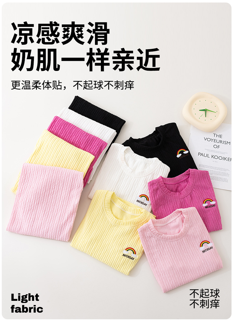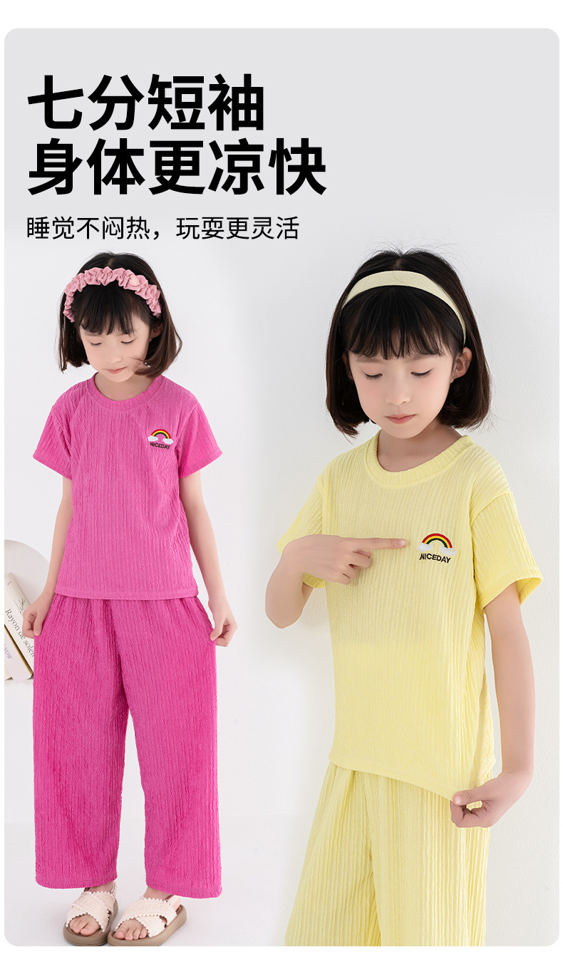 남아 및 여아용 아동용 잠옷, 모달 얇은 반팔 바지, 가정복, 소형, 중형 및 대형 아동용 남아 및 여아용 에어컨 의류스토어 가기