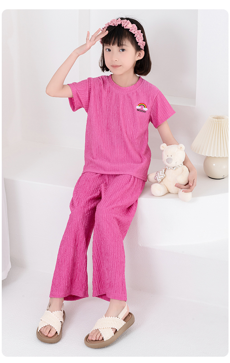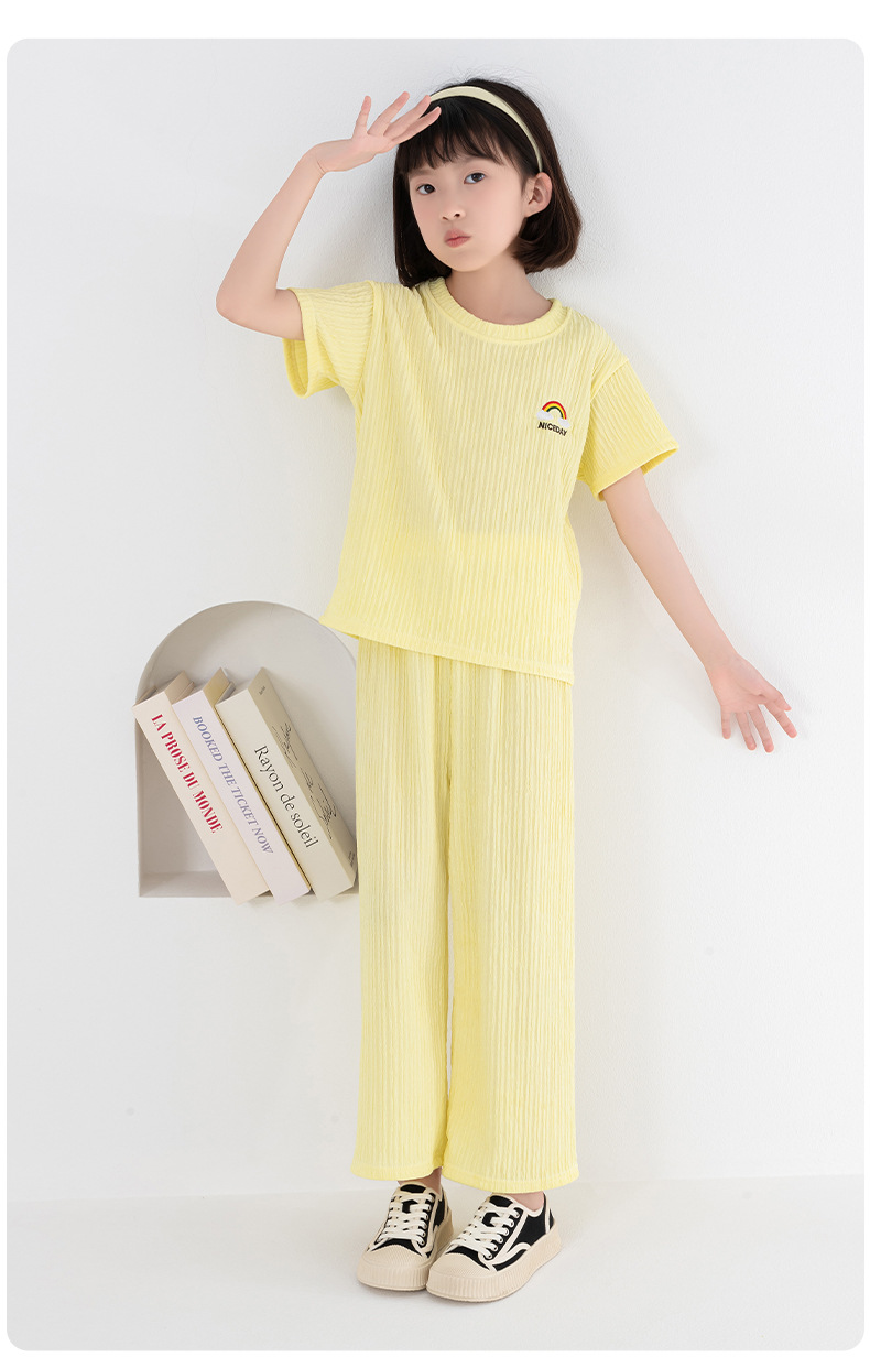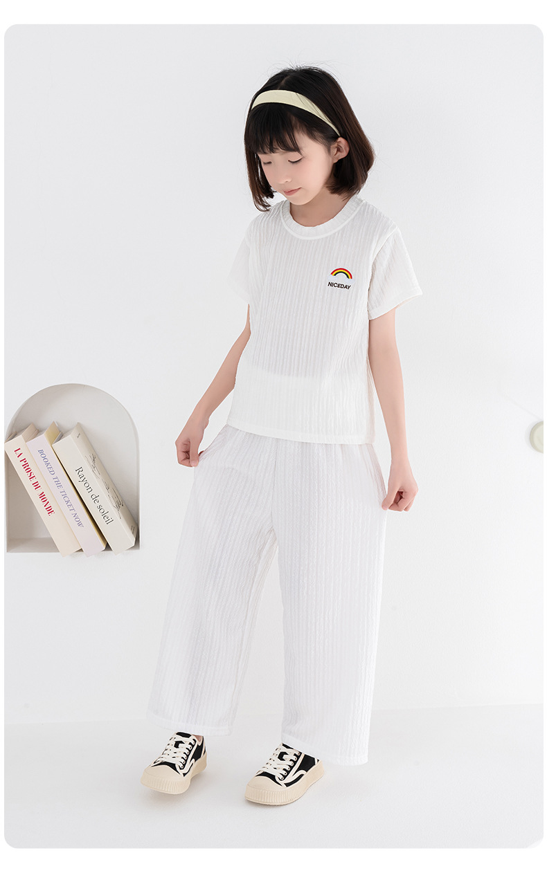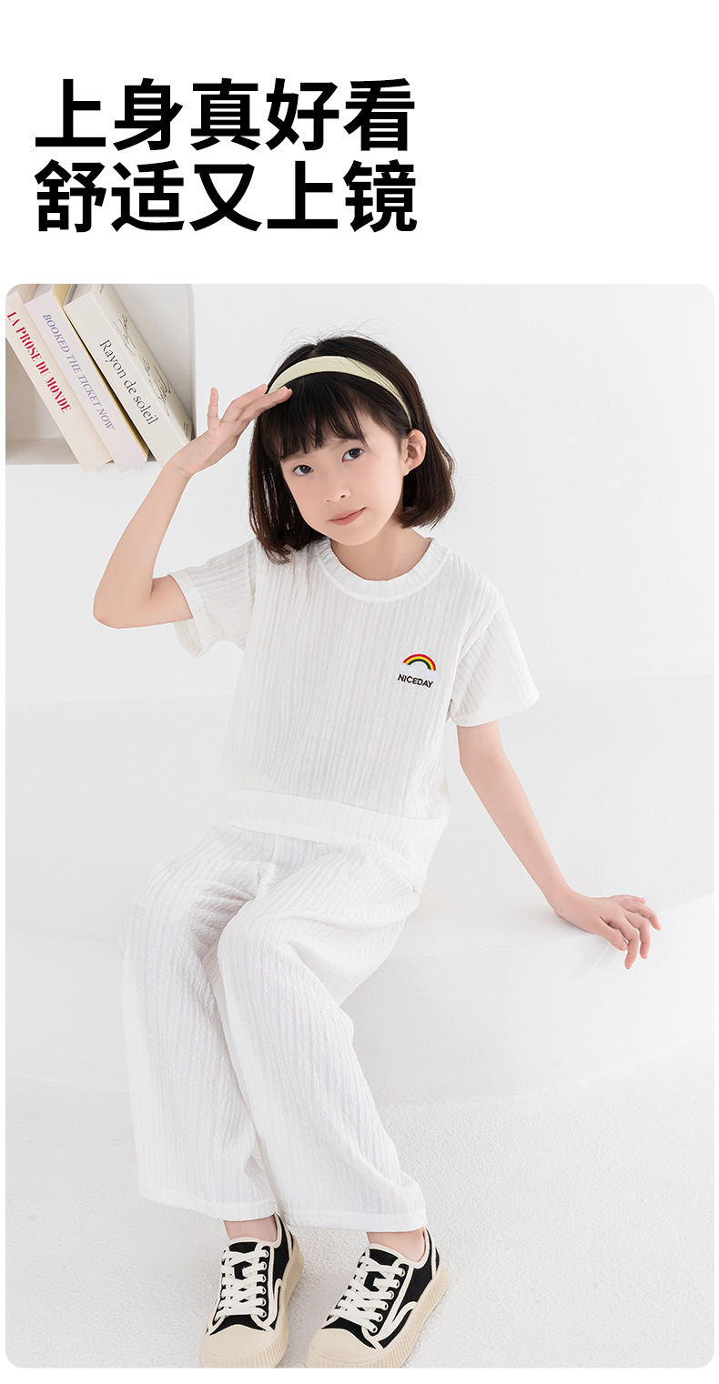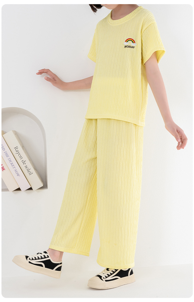 남아 및 여아용 아동용 잠옷, 모달 얇은 반팔 바지, 가정복, 소형, 중형 및 대형 아동용 남아 및 여아용 에어컨 의류스토어 가기