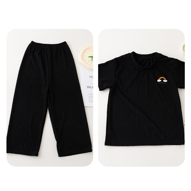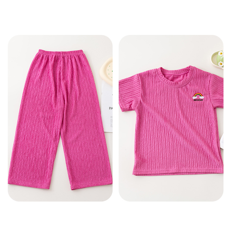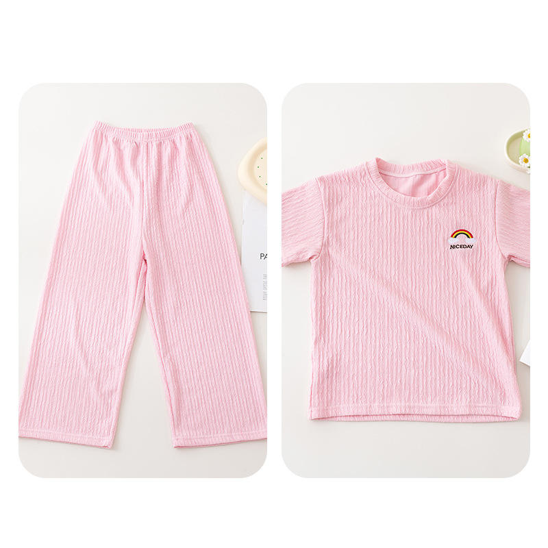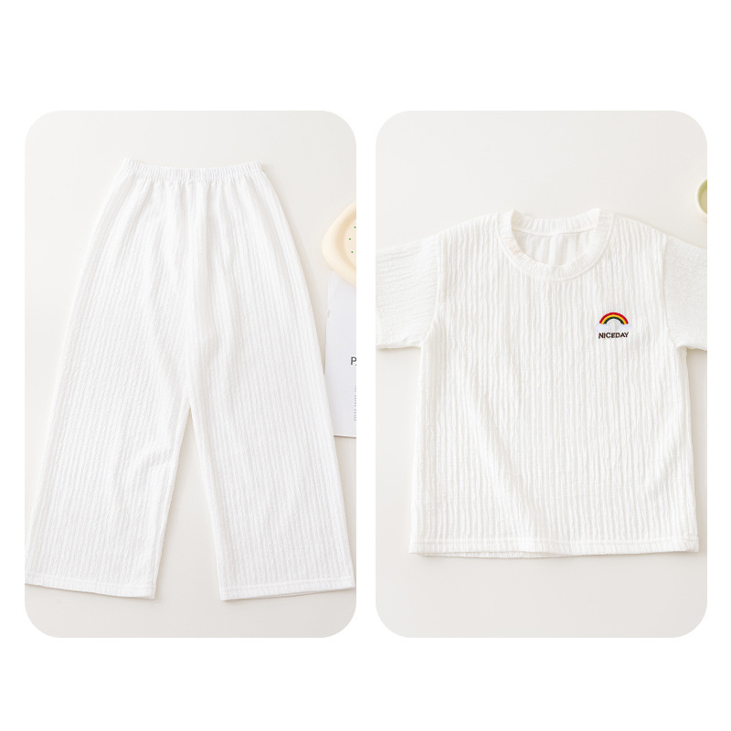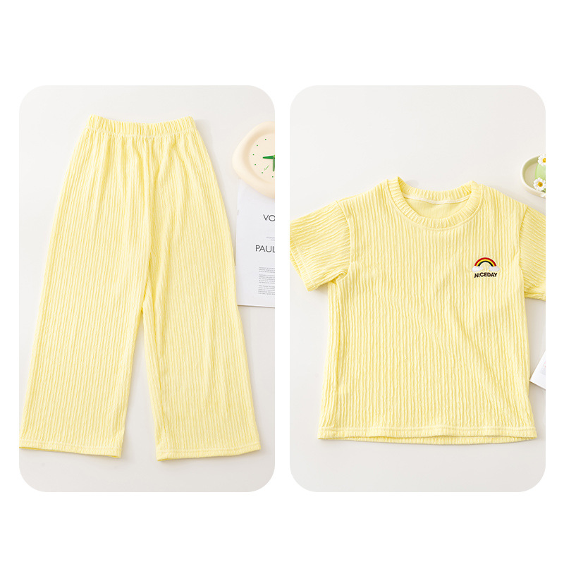 남아 및 여아용 아동용 잠옷, 모달 얇은 반팔 바지, 가정복, 소형, 중형 및 대형 아동용 남아 및 여아용 에어컨 의류