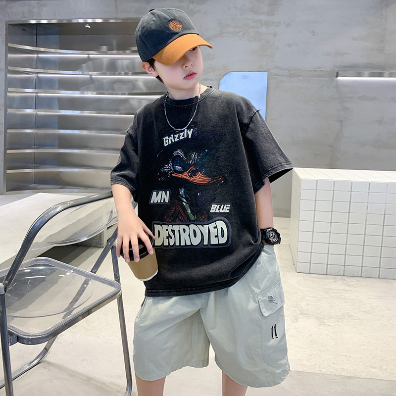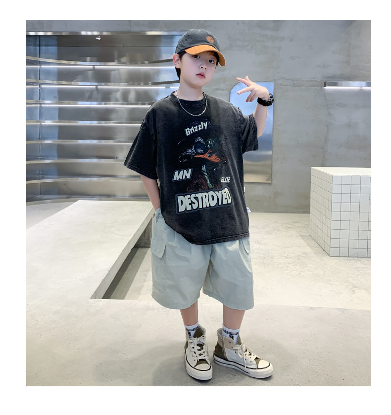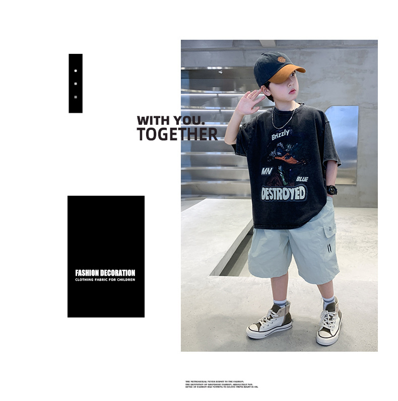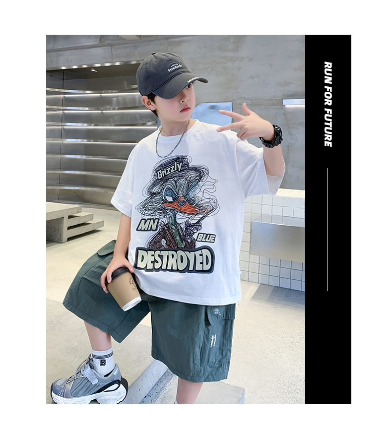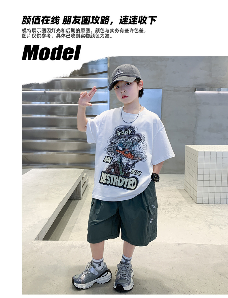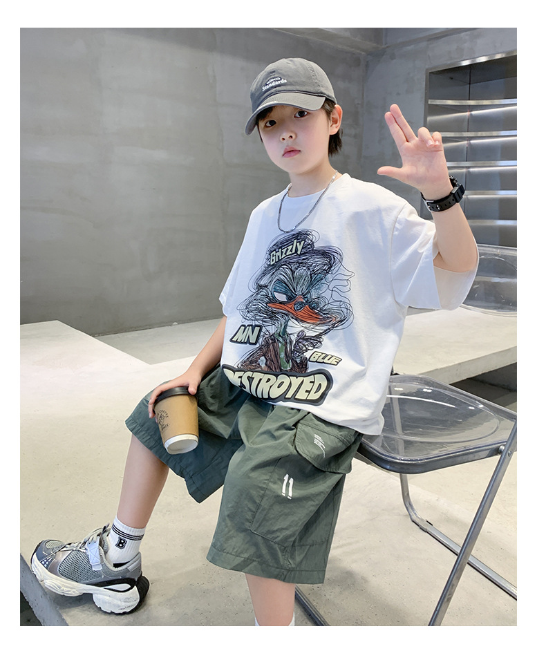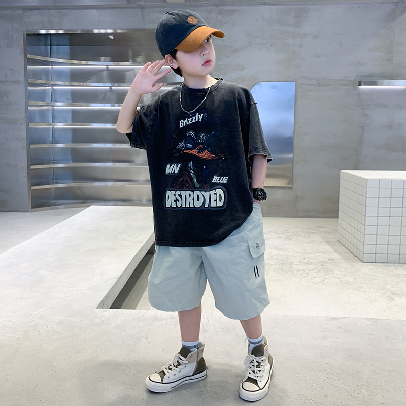 소년 만화 인쇄 반팔 세트 2025 새로운 여름 새로운 캐주얼 스포츠 소년 투피스 세트스토어 가기