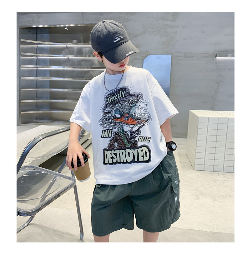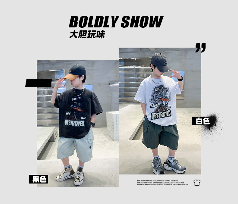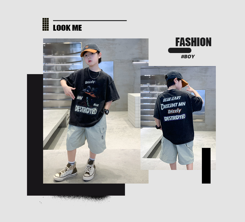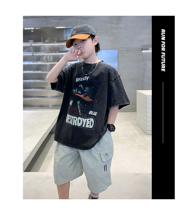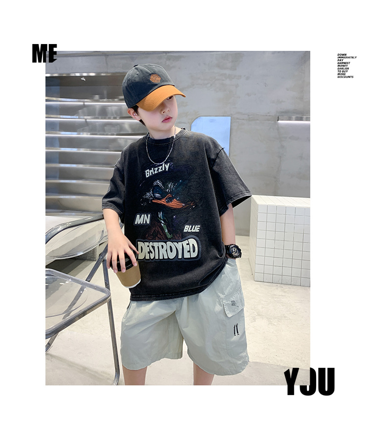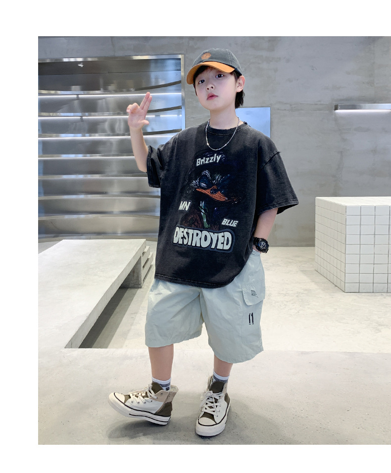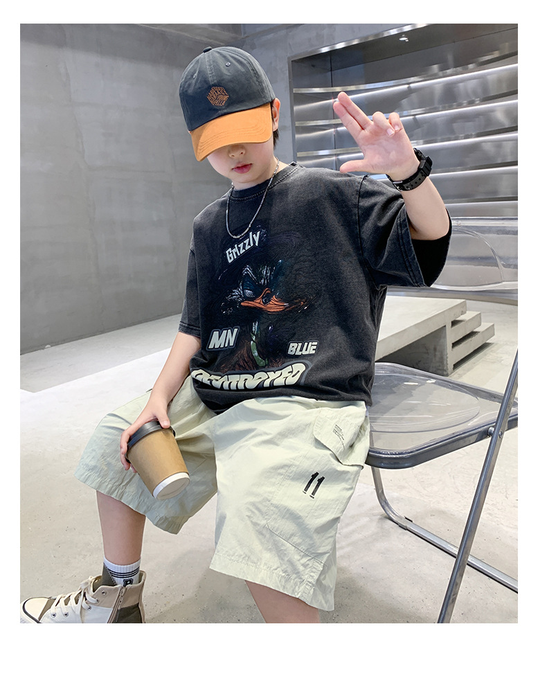 소년 만화 인쇄 반팔 세트 2025 새로운 여름 새로운 캐주얼 스포츠 소년 투피스 세트스토어 가기