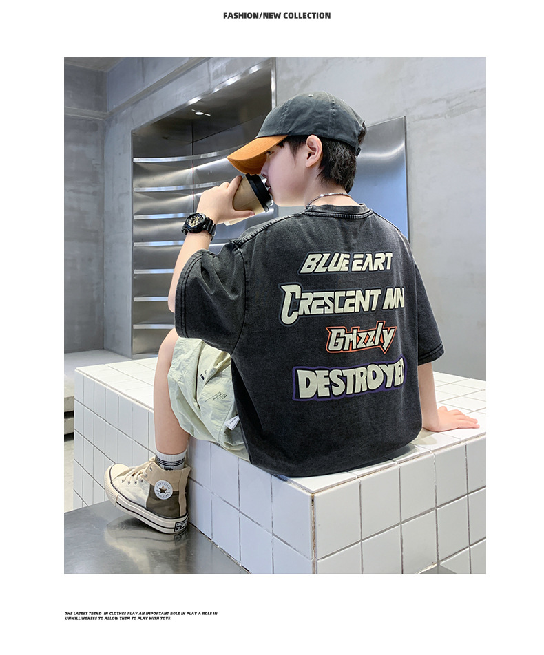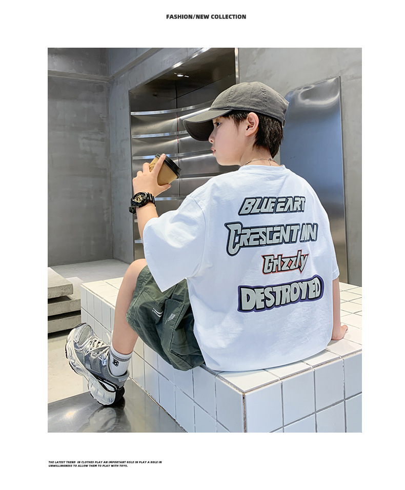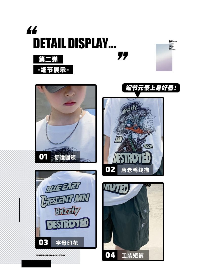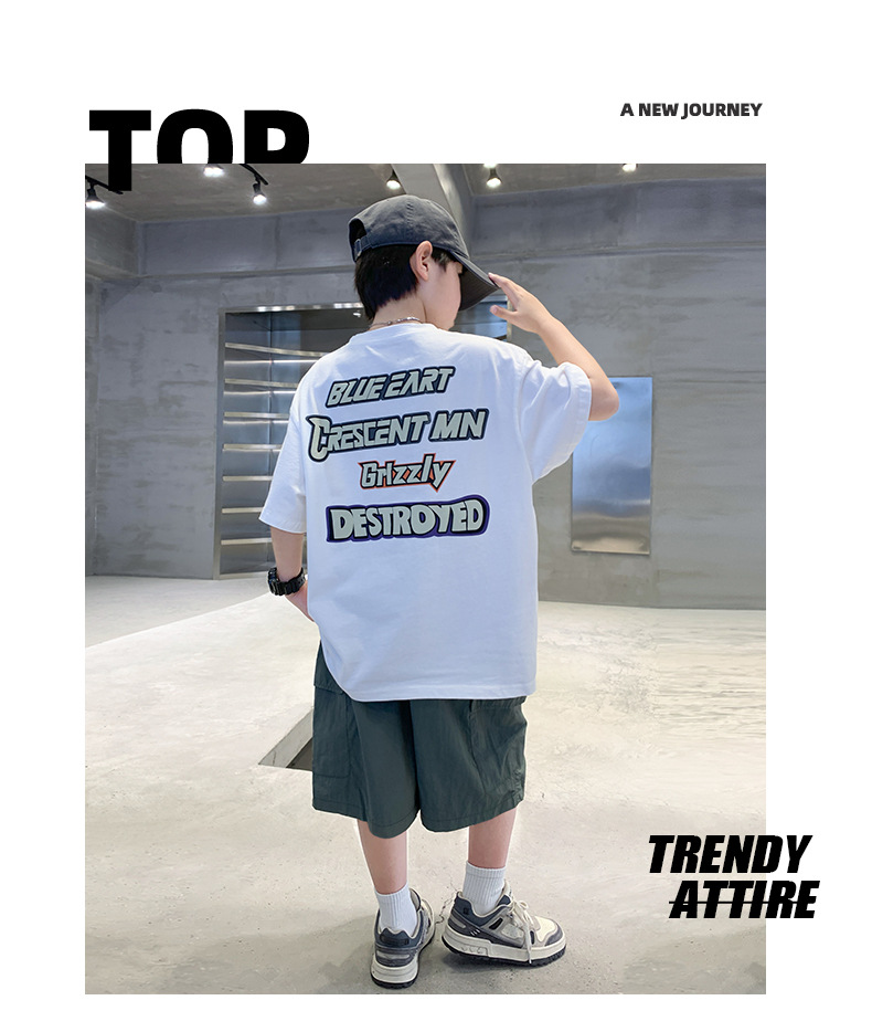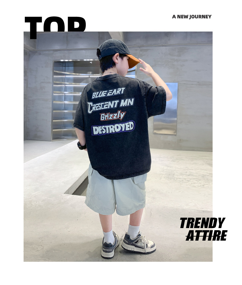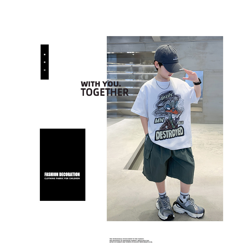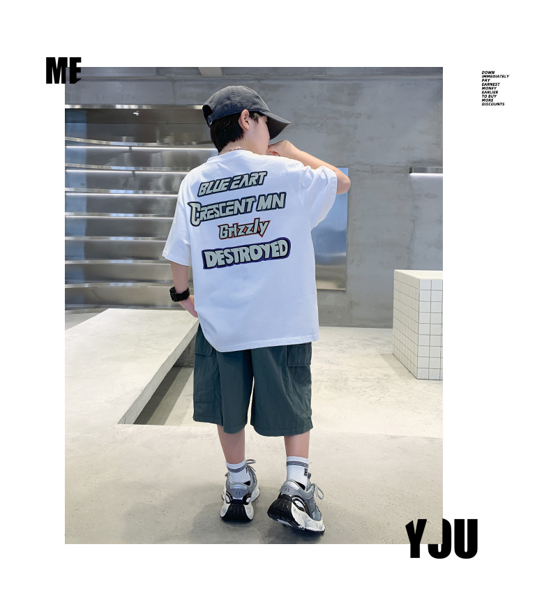 소년 만화 인쇄 반팔 세트 2025 새로운 여름 새로운 캐주얼 스포츠 소년 투피스 세트스토어 가기