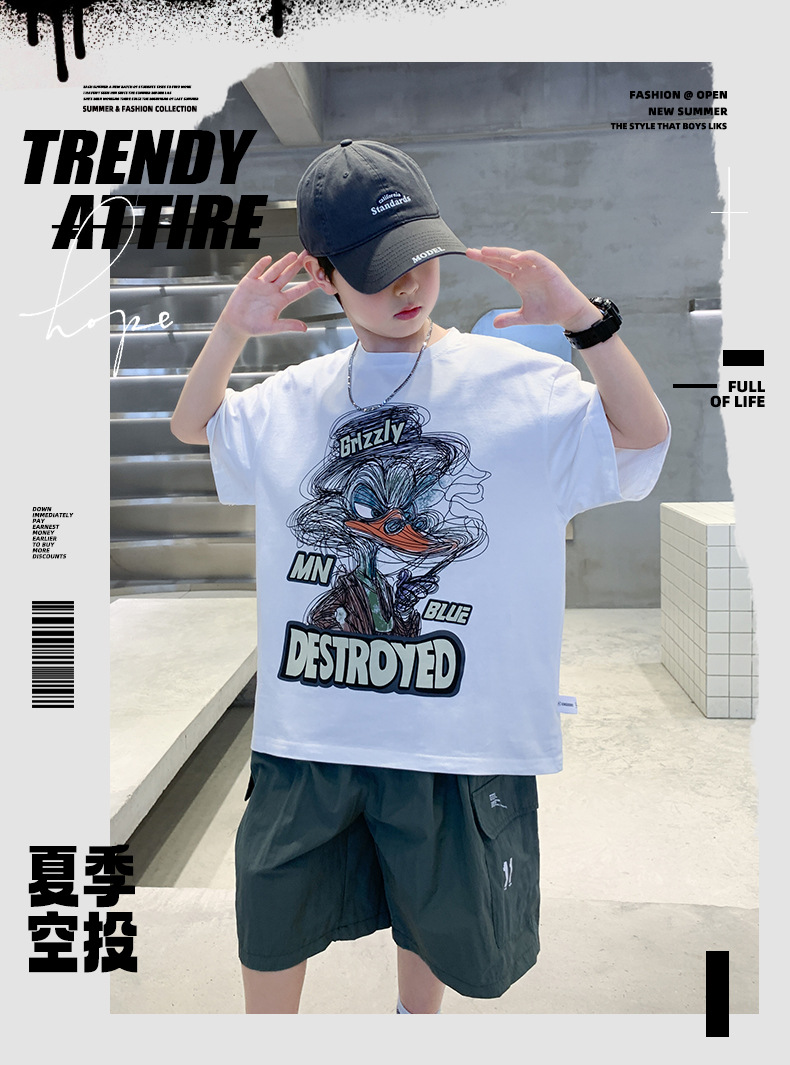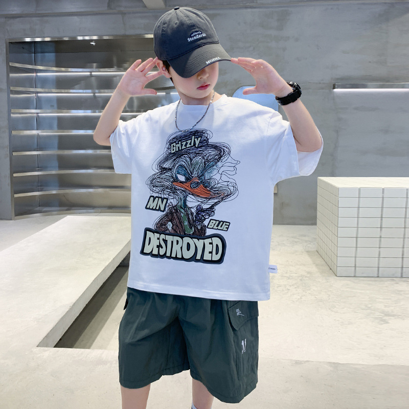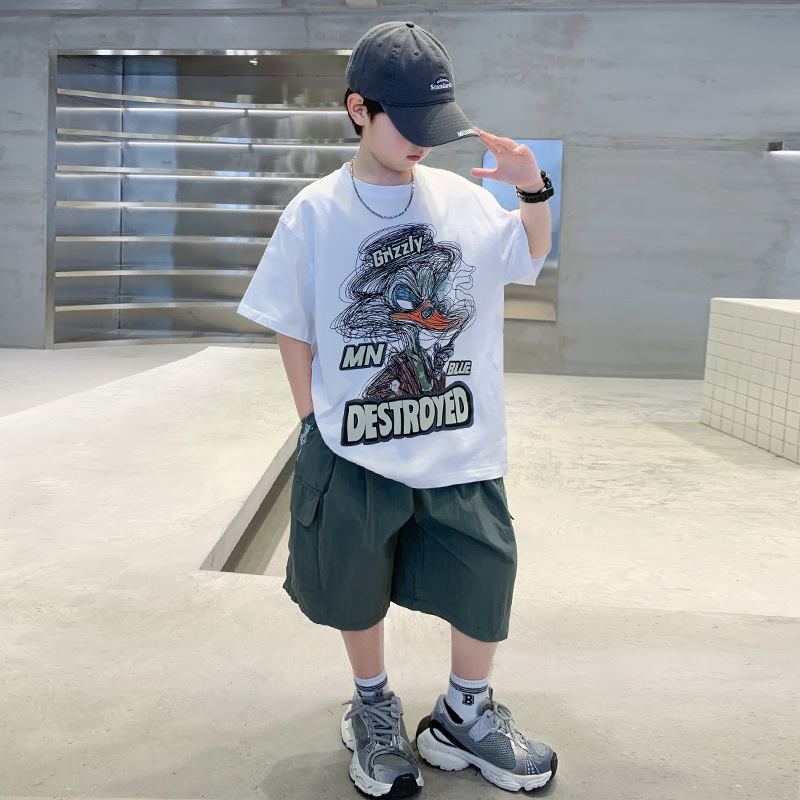 소년 만화 인쇄 반팔 세트 2025 새로운 여름 새로운 캐주얼 스포츠 소년 투피스 세트