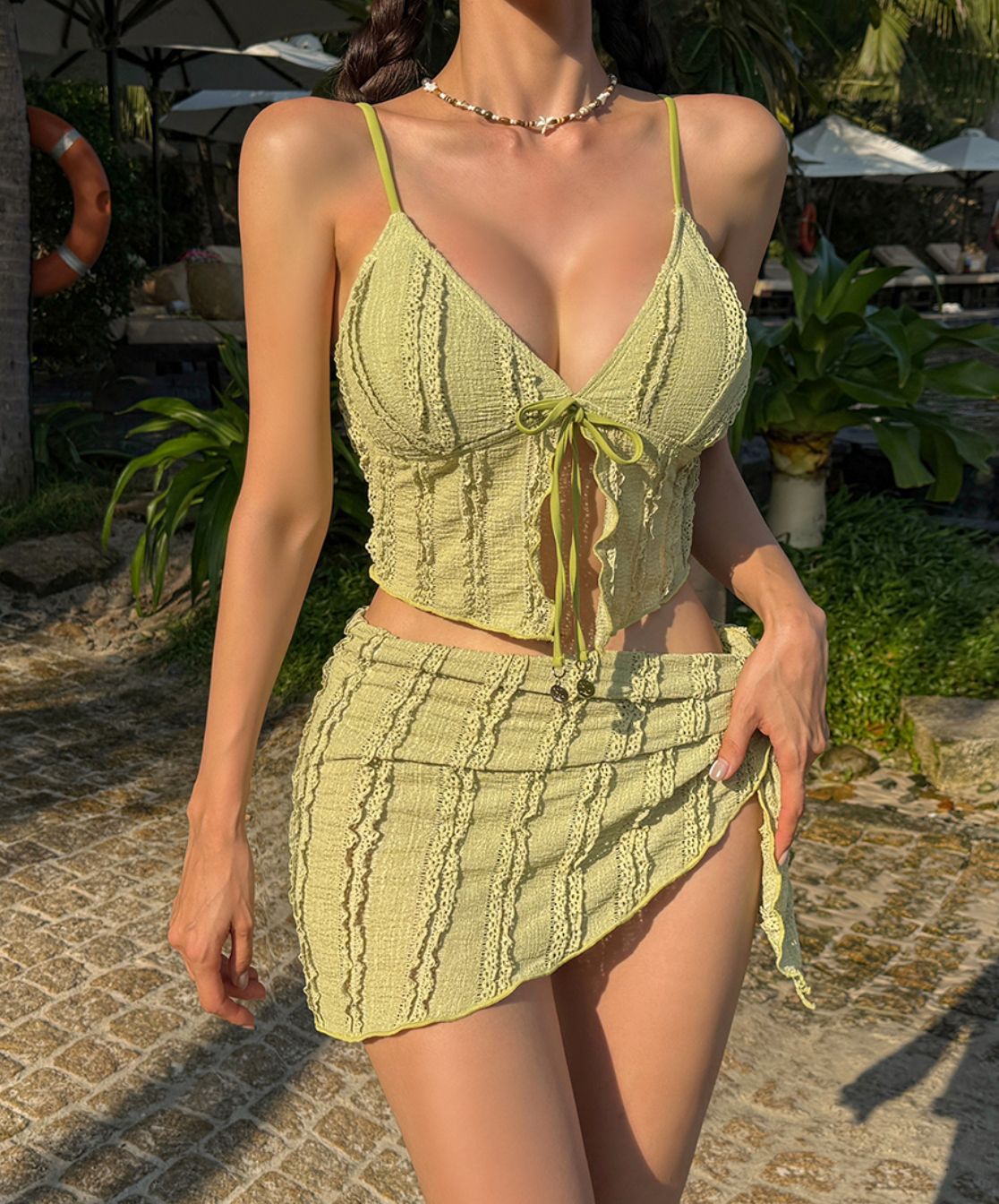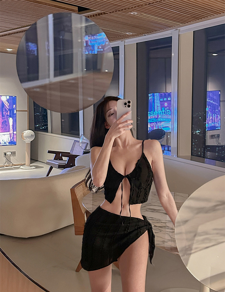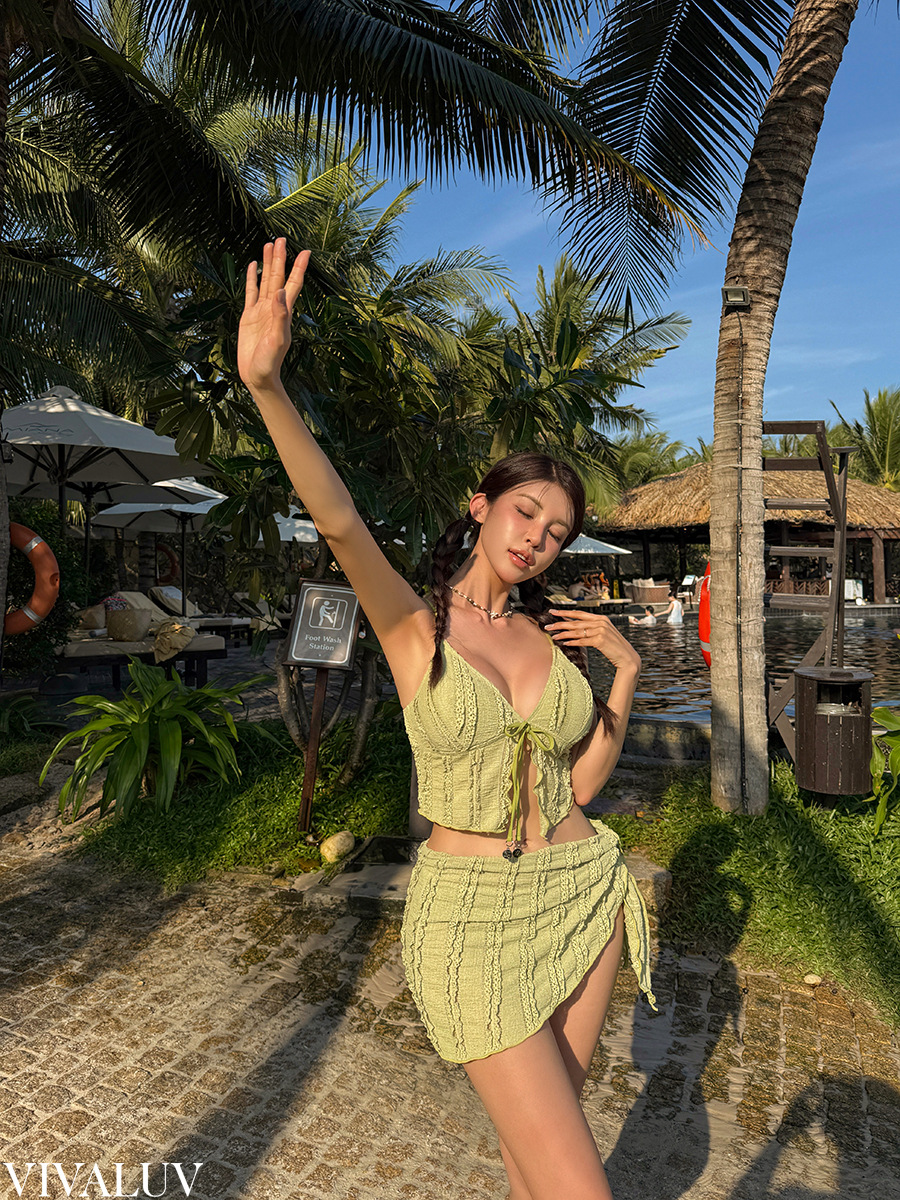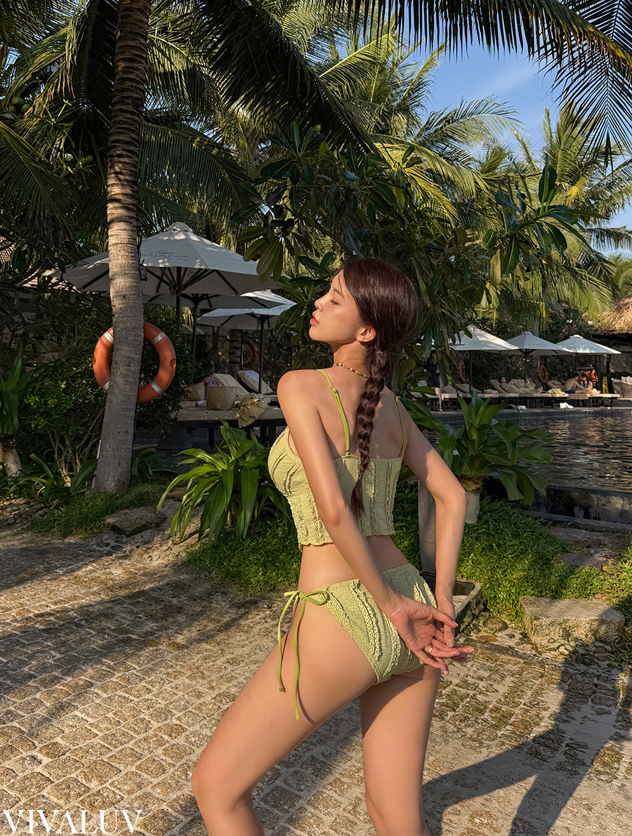 새로운 한국어 ins 작은 가슴 수영복 여성 비키니 3 피스 세트 순수한 욕망 스타일 온천 버섯 서스펜더 수영복