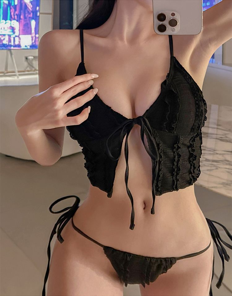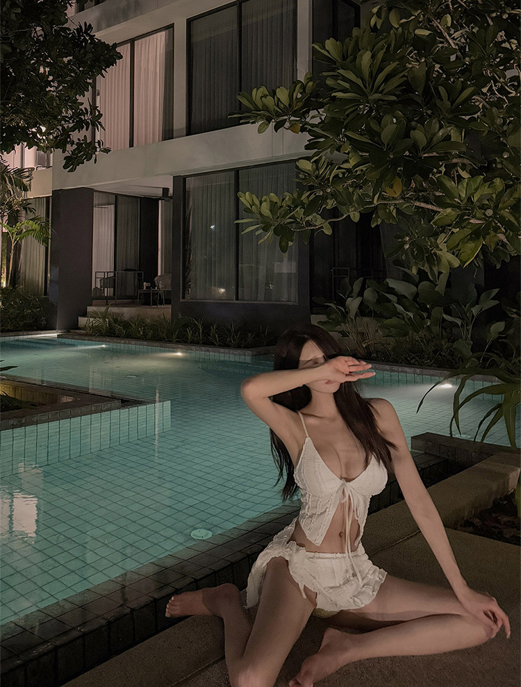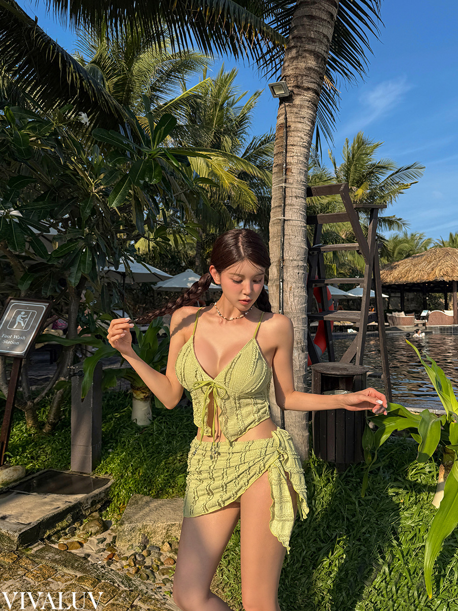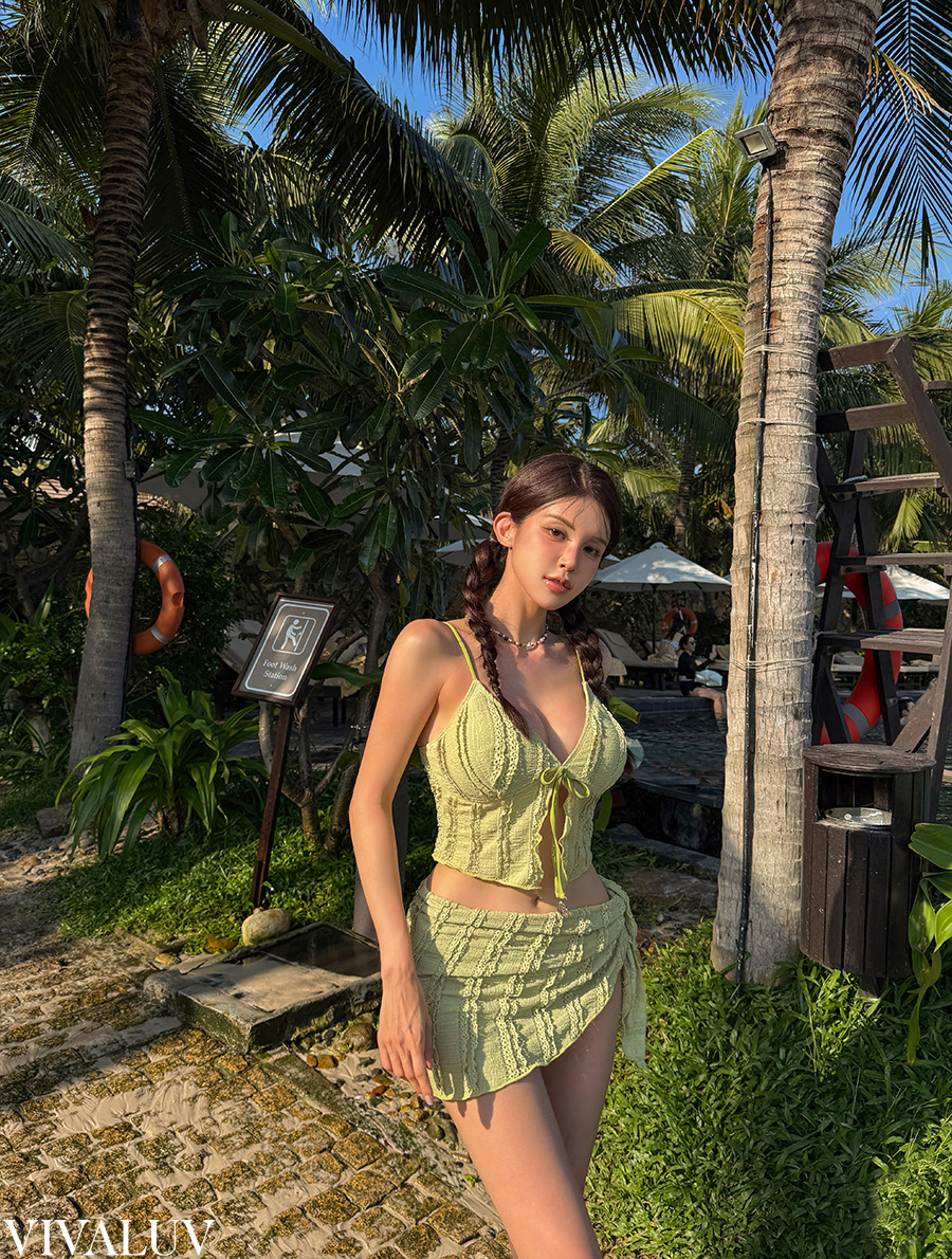 새로운 한국어 ins 작은 가슴 수영복 여성 비키니 3 피스 세트 순수한 욕망 스타일 온천 버섯 서스펜더 수영복
