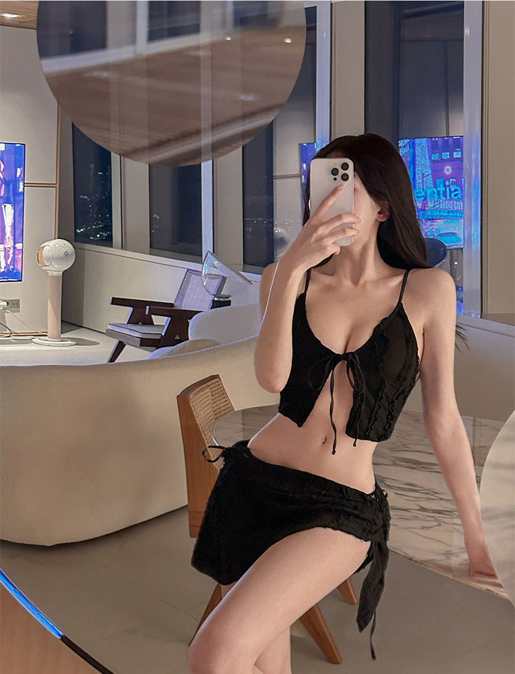 새로운 한국어 ins 작은 가슴 수영복 여성 비키니 3 피스 세트 순수한 욕망 스타일 온천 버섯 서스펜더 수영복스토어 가기
