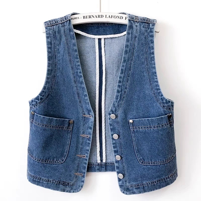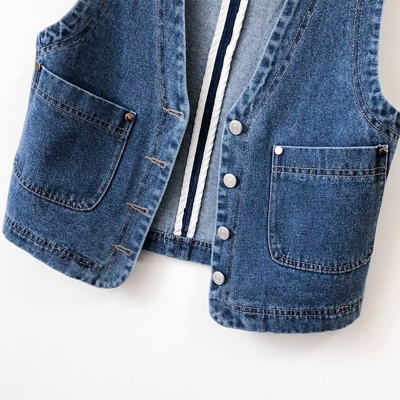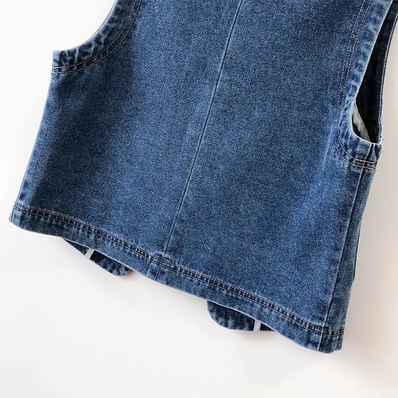 홍콩 스타일의 빈티지 데님 조끼 짧은 여성 슬림 핏 조끼 봄과 여름 새로운 캐주얼 콜라리스 조끼스토어 가기