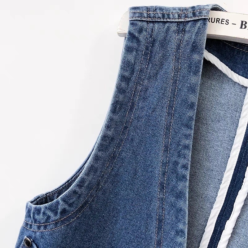 홍콩 스타일의 빈티지 데님 조끼 짧은 여성 슬림 핏 조끼 봄과 여름 새로운 캐주얼 콜라리스 조끼