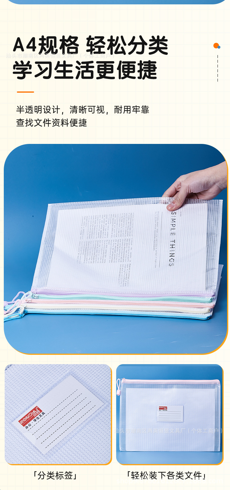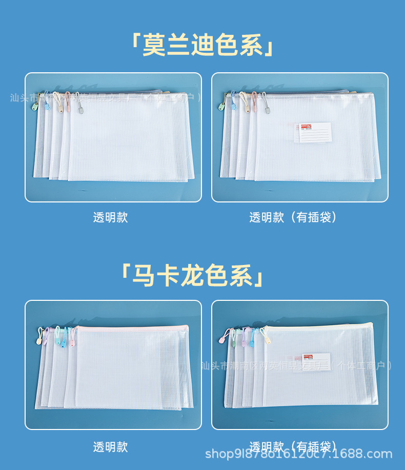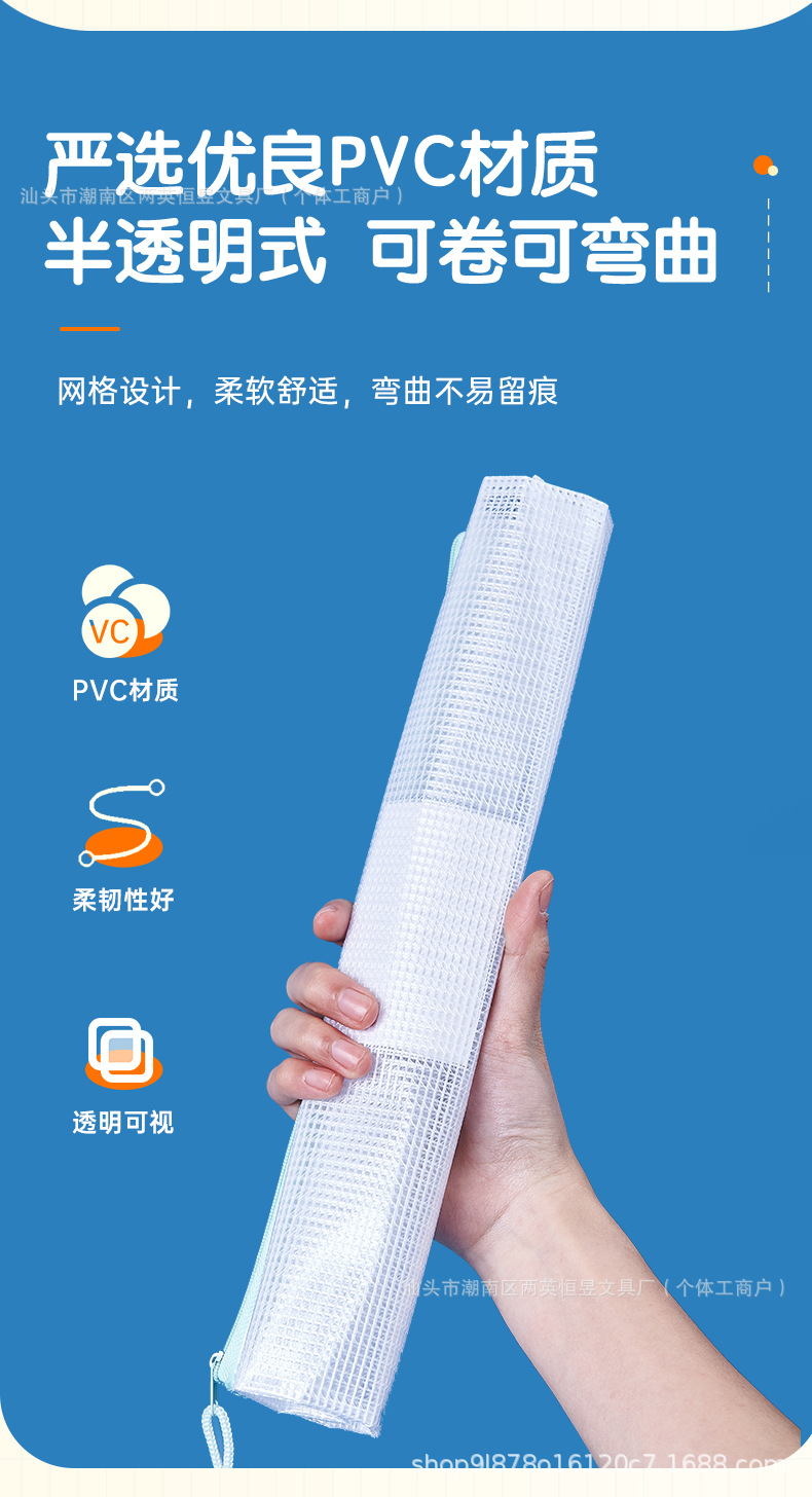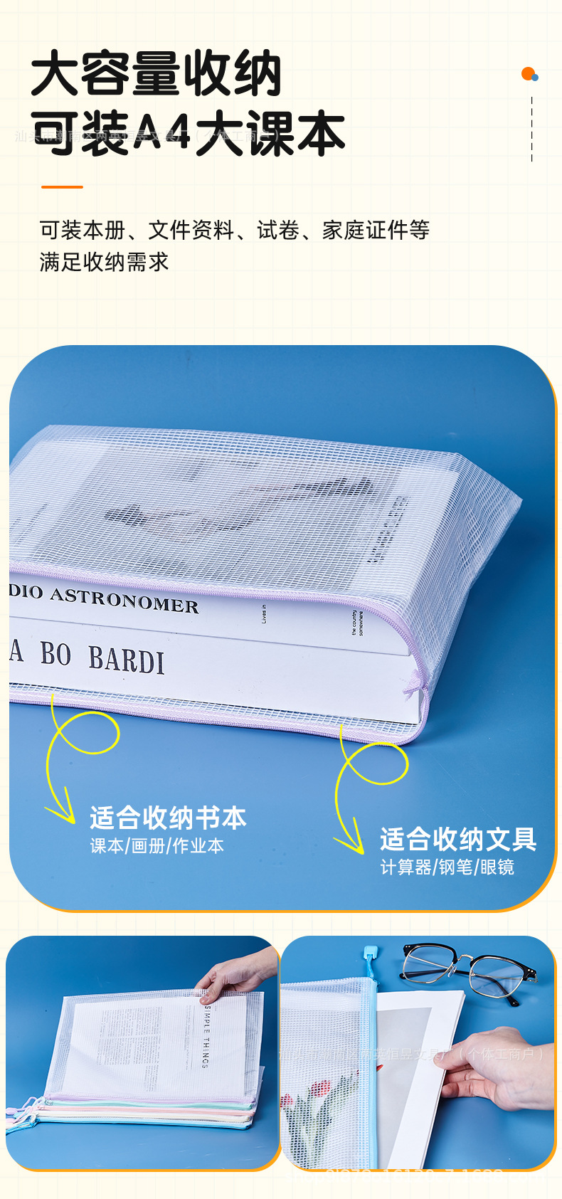 두꺼운 투명 파일 가방 A4 그리드 지퍼 가방 파일 가방 데이터 가방 테스트 종이 저장 가방 주제 가방 문구 가방
