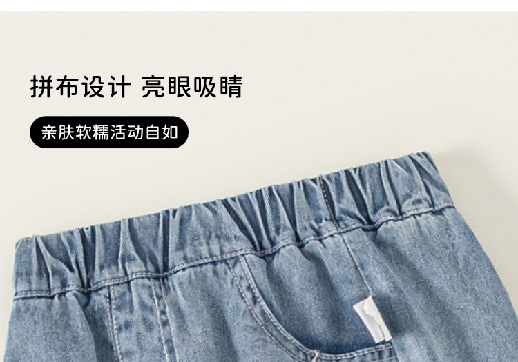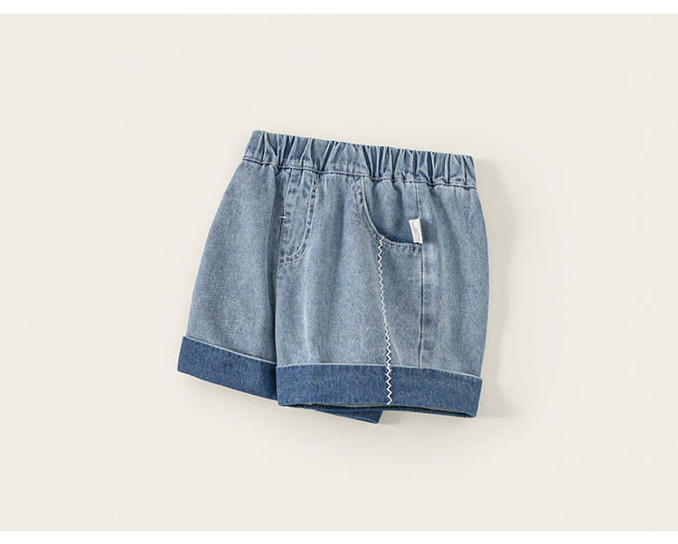 유바오 아동복 2025 여름 새 소녀 컬러 매칭 캐주얼 얇은 바지 어린이 느슨한 데님 반바지스토어 가기